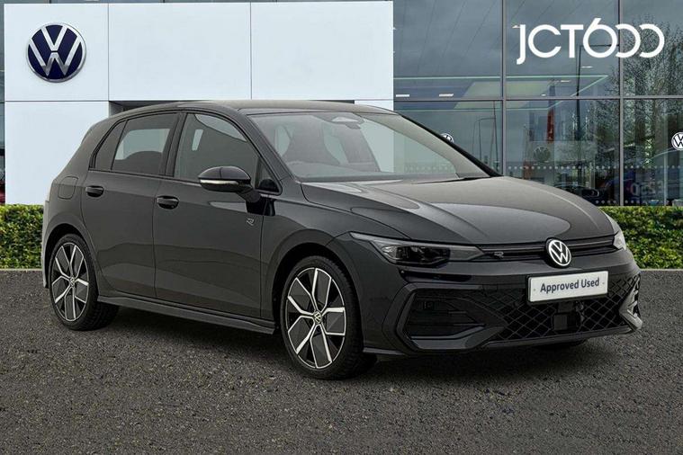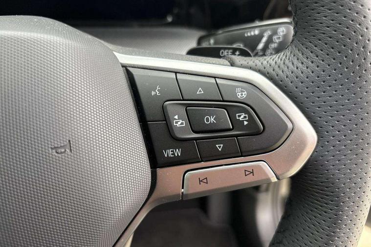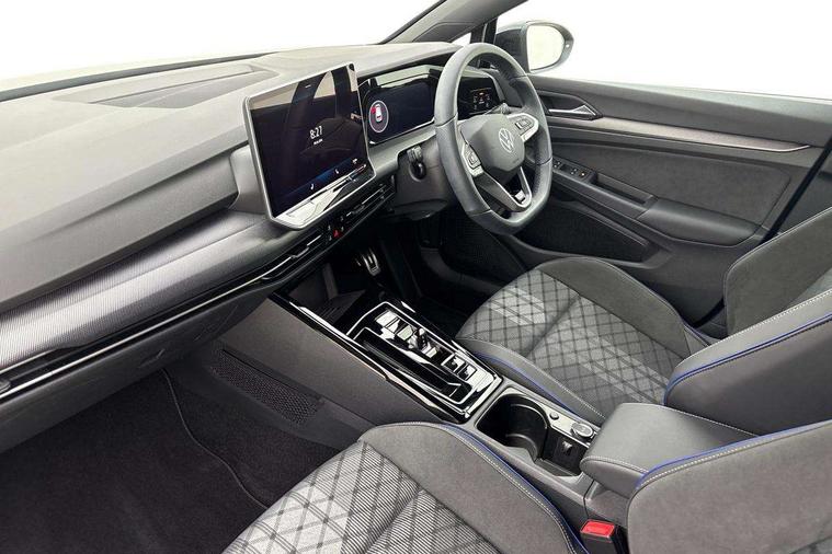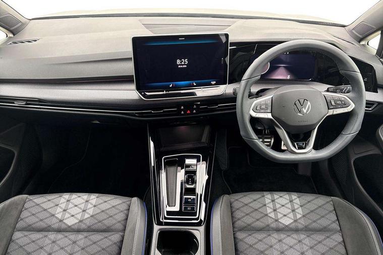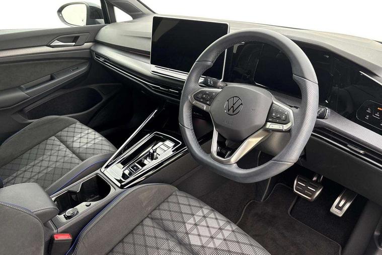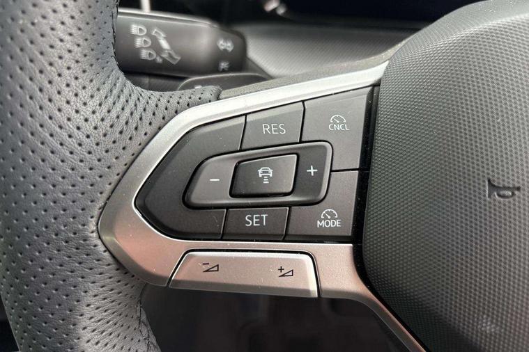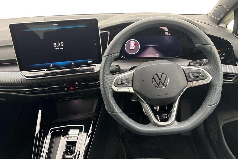 Activated carbon canister, Adaptive cruise control (ACC), Advanced driver attention and drowsiness monitor, Dynamic road sign display, Dynamic steering, E-Sim card for online connectivity, eCall emergency call system, Multi-color Digital cockpit pro, selection of different info profile possible, Multifunction front facing camera for distance control, Navigation system, Oncoming vehicle braking when turning including swerve support, Speed limiter, Speedo, rev counter, electronic odometer, trip, service interval display, exterior temperature and fuel gauge, Traffic jam assist, Voice enhancer and voice control, Warning signal and warning light for front and rear seatbelts not fastened, We connect plus preparation, We connect preparation, Wireless app connect, Hybrid propulsion system, Petrol Particulate Filter, Start-stop system with battery regeneration (recuperation - energy recovery during braking), XDS electronic differential lock for improved traction and handling, 2 USB C ports in front, 2 USB charging sockets on the centre console in the rear charging capacity upto 45W, Digital radio reception (DAB), Diversity antenna for FM reception, Gaming platform via car app, Infotainment system with 12.9" display, Mobile phone interface with inductive charging feature, 3rd brake light, Auto dimming rear view mirror, Automatic headlamp activation with Coming home and Leaving home feature, Body colored bumpers in R-Line style, Body colour door handles, Exterior ambient lighting, Exterior mirrors convex on the left and aspherical on the right, Front and rear electric windows, Heat insulating windshield made of laminated glass, LED separate daytime running light, Rain sensor, Rear exhaust tailpipe, Rear fog light on one side and reversing lights on both sides, Rear side wing doors, Rear windscreen washer and wiper with interval delay, Remote electrically foldable door mirrors, puddle lights and reverse activated passenger's door mirror, Volkswagen logo in front, illuminated lighting animation with wake up/goodbye scenario and illuminated door handles, Welcome light with surround lighting, 12V socket in front centre console, 12V socket in luggage compartment, 3 rear head restraints, 3 seat bench in 2nd row, Ambient lighting with 30 colour including LED light unit in front footwell with selectable light colour, Black roof lining, Brushed stainless steel pedals, Chrome plated radiator grille inserts, air vent surrounds and light switch surrounds, Door insert, side trim panel and arm support in leatherette, Front + rear black carpet mats, Front centre armrest, Front seat lumbar support adjuster, Integrated front head restraints, ISOFIX anchors for child seats on outer rear bench seats and on front passanger seat compatible for i-Size, Luggage compartment lighting, Manual height adjustable front passenger seat, Manually height adjustable driver seat, Plastic gear knob, Premium sports seats in front, Rear cupholder and loadthough, Sardegna cloth upholstery with front and outer rear seats Art Velour inner sides of bolsters, Single front passenger seat, Split folding backrest with centre armrest and unsplit rear seat bench, Sun visors with illuminated vanity mirrors, Titanium black instrument panel, Black exterior Styling package with Matrix LED headlights - Golf, Winter package - Golf DSG Estate/Hatchback, 3 point height adj front seatbelts + pretensioners, 3 rear three point seatbelts, ABS, Autonomous emergency braking front assist with pedestrian and cyclist monitoring, Child locks on rear doors, Driver and front passenger airbag with front passenger airbag deactivation, Electronic parking brake with auto hold, ESC (Electronic Stability Control), Extended pedestrian protection measures, Hill start assist, Rear disc brakes, Two tone horn, Tyre pressure loss indicator, Volkswagen roadside assistance, Anti theft wheel bolts, Preparation for alcohol interlock, Decorative inserts carbon grey for dashboard and front door trim panels, 18" Leeds alloy wheels, Tool kit for tyre mobility set, Tyre mobility kit Includes 12V compressor and tyre sealant,