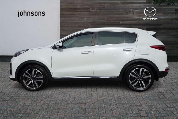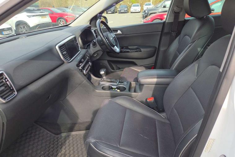 360 degree surround camera, 4.2" supervision colour cluster display, 8" touchscreen satellite navigation with European mapping and traffic messaging channel, Android auto with voice control, Apple car play with voice control, Blind spot collision warning, Bluetooth connectivity with voice control, Cruise control + speed limiter, Digital clock, Drive mode selector, Driver attention warning, Emergency stop signalling system, Forward collision avoidance assist, Front parking sensor, Kia connected services featuring TomTom live, Lane keep assist, Rear parking sensor, Speed limit information, Speed sensitive power steering, Trip computer, Windscreen washer level indicator, Intelligent Stop and Go, Bluetooth audio streaming, DAB Radio with MP3, JBL Premium sound system with 8 speakers, external amp, subwoofer and front centre speaker, Rear USB port, Steering wheel mounted audio controls, USB/iPod/auxiliary input connections, All round electric windows with drivers auto up/down function, Auto dimming rear view mirror, Automatic defog system, Automatic headlights, Black wheel arch body mouldings and side sills with chrome insert, Body colour door handles with chrome inserts, Body colour door mirrors, Chrome front bumper insert, Chrome grille surround, Chrome window surround, Cornering light, Electric panoramic glass sunroof, Electrically adjustable/heated/folding door mirrors with LED indicators, Front fog lights, High beam assist, High gloss black diamond mesh radiator grille, LED Bi-Function headlights, LED daytime running lights, LED rear lights, Privacy glass (rear side windows and rear screen), Rain sensing front wipers, Rear spoiler, Rear wiper, Roof rails, Shark fin antenna, Silver painted front and rear skid plates, Speed sensitive front wipers, Tinted glass, Trailer stability assist, Welcome and follow-me home light functionality, Wide view drivers door mirror, Windscreen wiper de-icer, 10 way driver/8 way passenger electrically power adjustable seats, 12V power in front and rear centre console, 3 x passenger assist grips, 60/40 split folding rear seat, Air filter, All-round height adjustable headrests, Centre console storage box, Door armrest in leather, Driver and front passenger side sunvisors with illuminated vanity mirrors, Drivers seat power lumbar support, Dual zone automatic air conditioning, Front and rear door storage, Front cabin LED map light with sunglasses case, Front door courtesy reflectors, Front seat and rear pockets, Front/rear centre armrests, Gear shift indicator, Glovebox illumination, Heated front and outer rear seats, Heated steering wheel, Illuminated glovebox, Interior door lock/unlock function, ISOFIX Child seat top tethers and anchor fixings, Leather steering wheel, Leather trimmed gearshift, Leather upholstery, Light grey headlining, Luggage area LED light, Luggage area load cover, Luggage net with hooks, Rear centre armrest with cupholder, Rear coat hooks, Rear headrests, Satin chrome interior door handles, Side cabin LED lights, Stainless Steel Scuff Plates, Tilt/telescopic adjustable steering wheel, Ventilation ducts to rear compartment, 3x3 point rear seatbelts, Active front headrests, All round 3-point seatbelts, Anti-lock braking system with electronic brakeforce distribution, Dual front side airbags, Electronic parking brake, Electronic stability control with downhill brake control, ESP + traction control, Front passenger airbag cut-off switch, Front seatbelt pretensioners + load limiters, Height adjustable front seatbelts, Hill start assist control (HAC), Impact sensing auto door unlocking, Rear door child safety locks, Twin curtain airbags with roll over sensor, Twin front airbags, Tyre pressure monitoring system, Advanced anti-theft system including immobiliser and alarm, Door deadlocks, Engine Start/Stop Button with Smart Entry System, Locking wheel nuts, Speed sensitive auto door locking, Visible vehicle identification number, High gloss black centre fascia, 19" Alloy wheels, Temporary spare wheel,