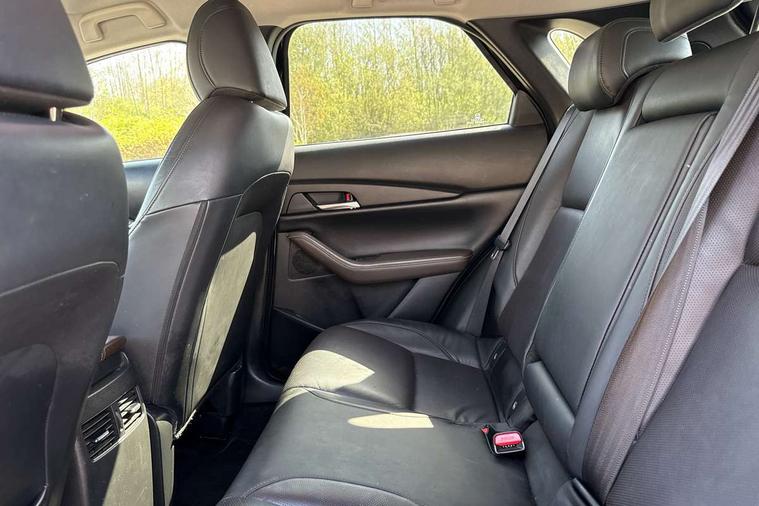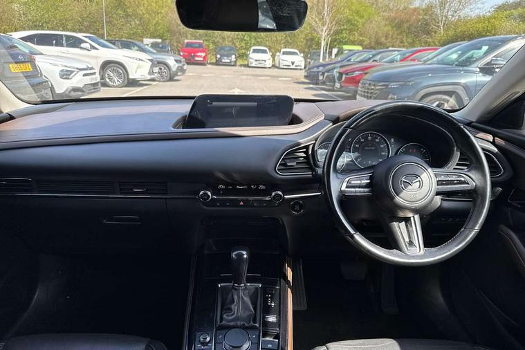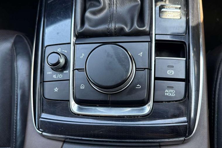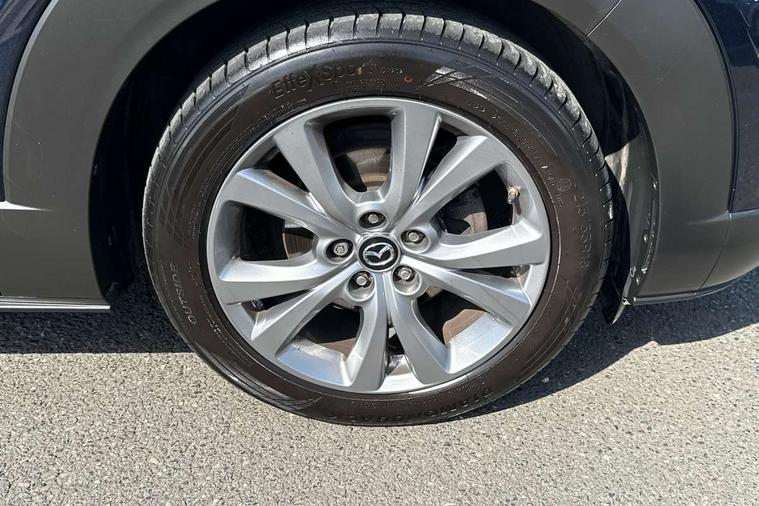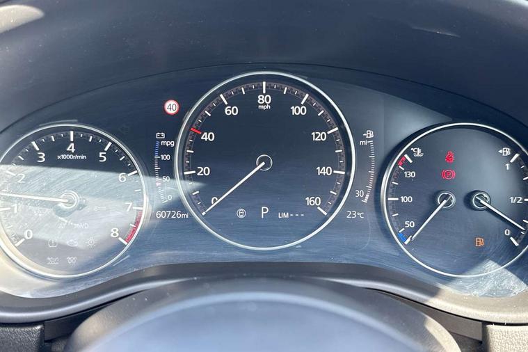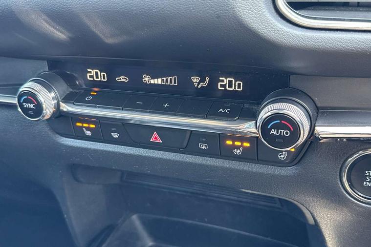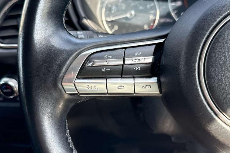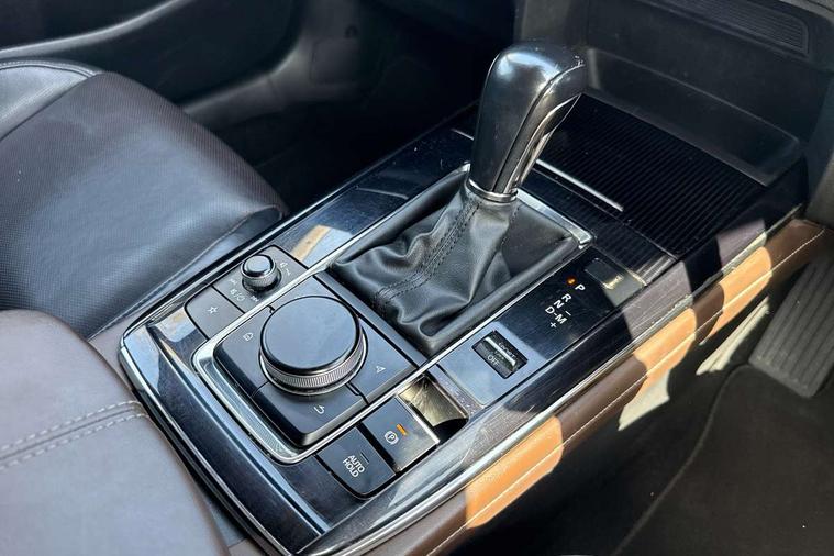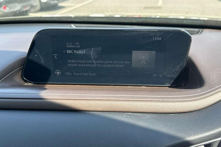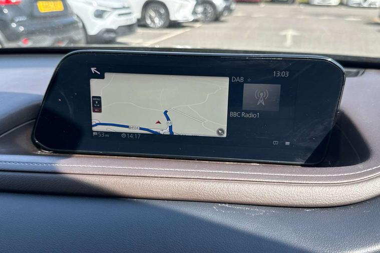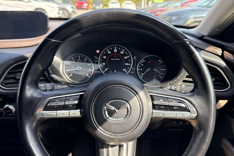 7" TFT Colour driver instrument panel display, 8.8" Colour centre touch screen display with Mazda Connect infotainment, Adaptive cruise control (Mazda radar cruise control) features stop and go, Apple car play/Android Auto, Blind spot monitoring with rear cross traffic alert, Drive mode selector, Driver attention alert system, E-call with GPS, Emergency stop signalling system, Engine start/stop button, Front and rear parking sensors, Integrated bluetooth, Integrated Mazda navigation system, Intelligent speed assist, Lane keep assist system (LAS) with Lane departure warning system (LDWS), Mazda connected services, PAS, Power lift gate, Reversing camera, Service indicator, Tailgate, Traffic sign recognition, Trip computer, Windscreen projected colour active driving display (HUD), Cylinder Deactivation, i-stop, 2 USB charging ports in front inner central armrest, AM/FM and DAB radio, Bose surround sound system with 12 Speaker, Bose center point, Bass match and audio pilot technology, Multimedia Commander including separate volume dial, Steering wheel mounted audio/bluetooth controls, Adaptive LED Headlights, Auto dimming driver's door mirror, Auto headlight levelling, B-pillar and C-pillar garnishes in piano black finish, Body coloured, electrically adjustable, heated auto power folding door mirrors with integrated indicators, Chrome finish signature wing in front grille, Coming/leaving home lighting function, Door mirrors with adjustable memory and tilt-down function when reversing, Dual chrome exhaust, Dusk sensing headlights, Electric front/rear windows with one touch auto up/down, Frameless auto dimming interior rear view mirror, Front kodo turn signal, Gloss black front grille, Gloss black rear roof spoiler, High beam assist, LED signature daytime running lights, Privacy glass (rear side windows and rear screen), Rain sensing front wipers with adjustable speed and intermittent wipe, Rear fog lights, Rear side wing doors, Rear wiper, Signature LED rear combination lights, Third brake light, 12V power outlet in centre console, 3 seat bench in 2nd row, 60/40 split fold down rear seats, Chrome horn pad ring, Chrome interior trim accents with steering wheel centre bezel, surround of engine start / stop button and glove box handle, Dashboard, door cards and front centre armrest in rich brown leather, Driver and front passenger visors with covered vanity mirror and driver ticket holder, Driver's seat, power tilt, slide, recline, height and lumbar adjustment, Driver, front passenger and two rear door storage, Driver, Front passenger and two rear grab handles with coathooks, Dual zone climate control air conditioning with rear air vents, Folding rear centre armrest with two cup holders, Front and rear (x3) head restraints, Front and rear LED lighting, Front armrest, Front centre storage with two cupholders with lid, Front passenger seatback pockets, Front passengers seat manual slide, recline and height adjustment, Glovebox illumination, Heated front seats with 3 stage setting, Heated steering wheel, ISOFIX child seat anchorage points attached on outer rear seats, Leather upholstery with interior accents, Leather wrapped gear shift knob, Leather wrapped steering wheel with telescopic and tilt adjustment, LED luggage compartment lighting, Light roof headlining and pillars, Paddle shift controls, Rear armrest inner material in cloth, Roof mounted sunglasses holder, Single front passenger seat, 3 point ELR front seat belts x2 with pretensioners, 3 point ELR rear seat belts, Anti-lock braking system (ABS), Drivers knee airbag, DSC - Dynamic Stability Control, Electronic parking brake with auto disengage function and auto hold function, Front and rear curtain airbags, Front dual stage driver and single stage front passenger airbags, Front passenger airbag cut-off switch, Front side airbags, Front smart city brake support, G-Vectoring control plus, Hill launch assist, Manual child lock in rear doors, Mild Hybrid system with regenerative braking, Seatbelt reminder for driver/front passenger and rear seats, Traction control system (TCS), Tyre pressure monitoring system (TPMS), Remote central locking with deadlocking and automatic door lock when driving, Smart keyless entry, Thatcham accredited alarm and immobiliser, Dark vinyl door panel inserts, 18" Silver alloy wheels, Emergency tyre repair kit,