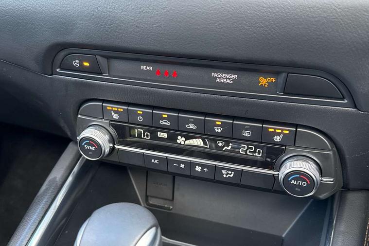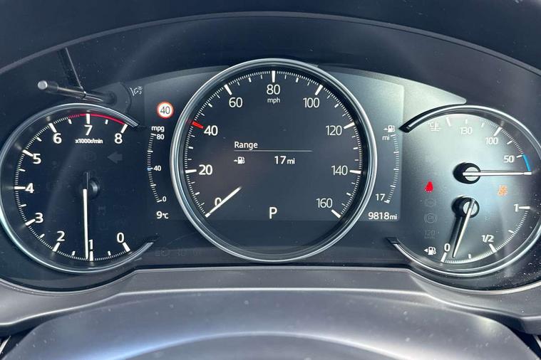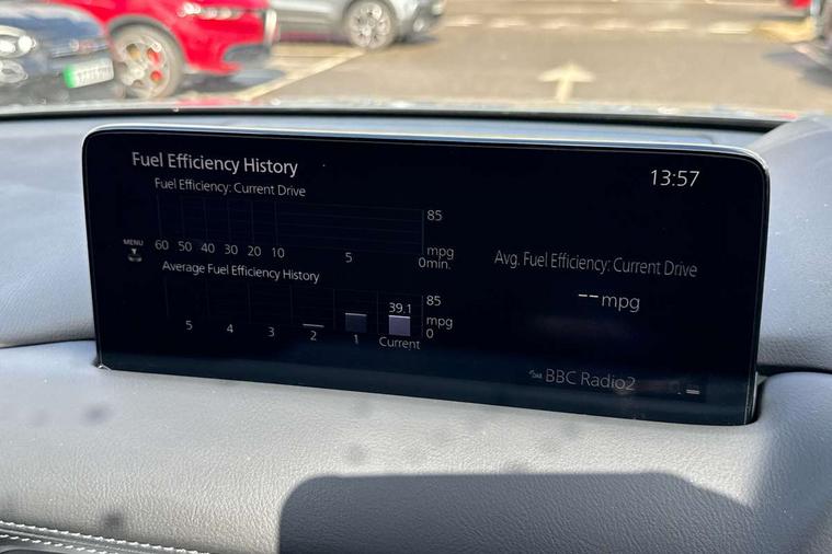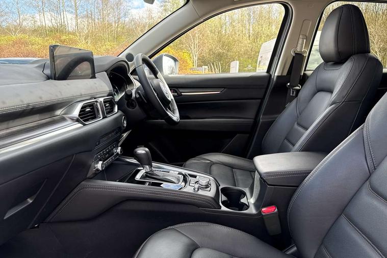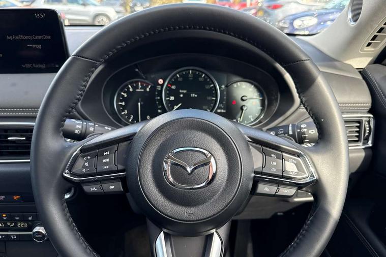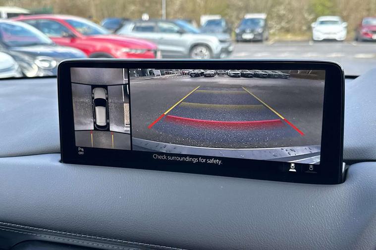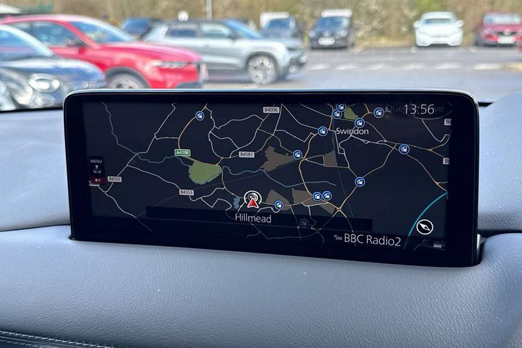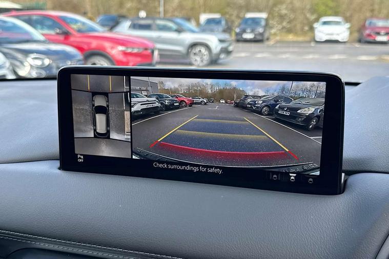 10.25" display with Mazda Connect infotainment, 7" colour TFT display, Advanced blind spot monitoring, Bluetooth connectivity with voice control, Collision prevention assist, Connected services, Cruising Traffic Support, Drive mode selector, Electric power steering, Emergency stop signalling system, Engine start/stop button, Forward collision warning, Front and rear parking sensors, Integrated navigation system, Intelligent speed assist, Lane departure warning system, Lane keep assist, Power liftgate, Qi wireless phone charging, Radar cruise control with Stop and Go, Rear cross traffic alert, Reversing camera, Service indicator, Traffic sign recognition (TSR), Trip computer, Windscreen projected colour active driving display (HUD) with memory, Wireless apple car play/android Auto, Cylinder Deactivation, i-stop, AM/FM radio, Bluetooth audio streaming, Bose premium sound system with 10 speakers, DAB Digital radio, Multimedia Commander including separate volume dial, Steering wheel mounted audio controls, Adaptive front lighting system, Auto dimming rear view mirror, Automatic headlights, Black inlay dashboard panel, Body colour door mirrors, Body colour roof spoiler, Body coloured front and rear black lower bumper mouldings, Coming/leaving home lighting function, Door mirror integrated indicators, Dual chrome tailpipes, Dusk sensitive headlamps, Electric front/rear windows with one touch auto up/down, Front grille in gloss black finish, Front grille in gloss black finish with chrome signature wing, Gloss black B and C pillars garnish, High beam assist, Intermittent rear wash/wipe, LED auto levelling, LED daytime running lights, LED front fog lights, LED Headlights, LED third brake light, Power folding and heated door mirrors, Power tilt/slide sunroof, Privacy glass (rear side windows only), Rain sensing front wipers, Rear side wing doors, Satin black side mouldings, Scuff plates, Shark fin antenna, Signature LED rear combination lights, Variable intermittent front wash/wipe, Vinyl with wood grain metal inlay door trim panel, Windscreen wiper de-icer, 12v electrical power outlet, 3 seat bench in 2nd row, 3 stage heated front seats, 40:20:40 Karakuri fold-flat seat system, 6 way electric adjustable passenger seat, 8 way electric driver seat with lumbar support + memory, Cargo room flat floor board with waterproof undertray, Driver seat power slide, recline and height adjustment, Driver, Front passenger and two rear grab handles with coat hooks, Driver/passenger front seatback pockets, Driver/passenger sunvisors + illuminated vanity mirrors (drivers with ticket holder), Dual zone climate control, Folding centre armrest with 2 cup holders, Front and rear door pockets, Front centre storage with two cupholders, Front passenger seat power slide, recline and height adjustment, Heated steering wheel, Humidity sensor, Illuminated glovebox, Interior dome light with integral spotlight, ISOFIX child seat anchorage points attached on outer rear seats, Karakuri tonneau cover, Leather upholstery, Leather wrapped steering wheel and gear knob, Light roof lining, Luggage compartment LED lighting, Luggage compartment power outlet, Paddle shifts, Rear air vents, Rear headrests, Rear seat recline, Roof mounted sunglasses holder, Single front passenger seat, Three height adjustable head restraints, Tilt/height adjustable steering wheel, USB Connectivity (2x front Type-C, 2x rear Type-B), White interior LED illumination lighting, 3 point front seatbelts with pre-tensioners, 3 rear 3 point seatbelts, ABS, Advanced Smart City Brake Support - SCBS, Child locks on rear doors, Driver and front passenger side airbags, DSTC-Dynamic Stability and Traction Control, Dual front airbags, Electronic brake force distribution, Electronic parking brake with auto hold, ESP, Front and rear curtain airbags, Front passenger airbag deactivation, G-Vectoring control, Hill hold assist, Seatbelt reminder front and rear, Single stage passenger airbags, Smart brake support with forward obstruction warning, Tyre pressure monitoring system, Automatic door locking when moving off, Deadlock, Immobiliser, Power door locks, Remote central locking, Smart keyless entry, Thatcham Cat.1 alarm, 19" diamond cut black alloy wheels, Tyre repair kit,