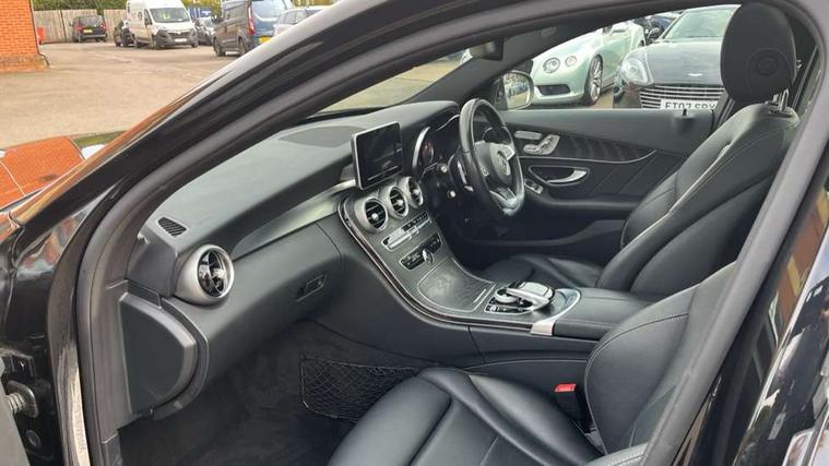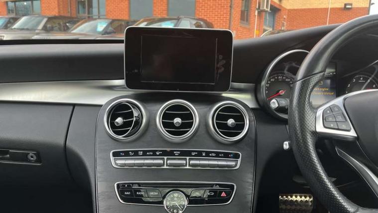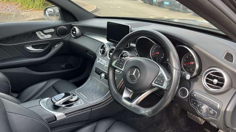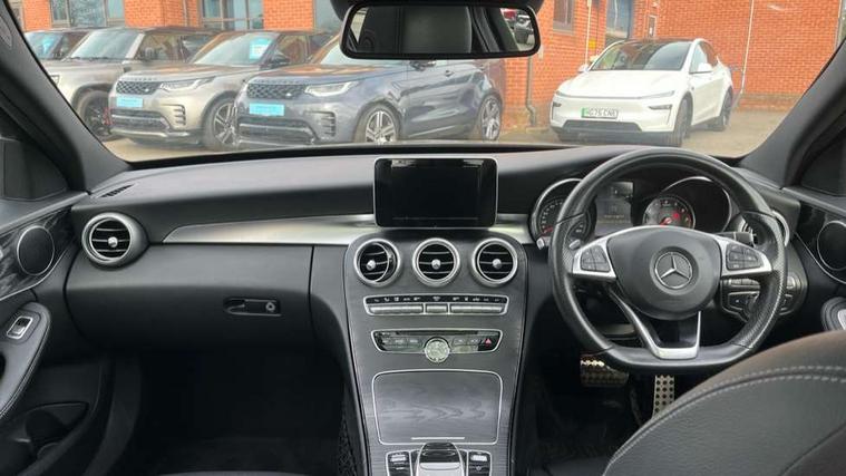Active park assist with parktronic system, Analogue clock, Attention assist, Bluetooth interface for hands free telephone, Collision prevention assist, DYNAMIC SELECT with a choice of driving modes (ECO, Comfort, Sport, Sport+ and Individual), Garmin Map Pilot navigation system with SD card, touchpad and voice control, Multi function trip computer, Outside temperature gauge, Power opening/closing tailgate, Remote boot release, Service indicator (ASSYST PLUS), Speed sensitive steering, DAB Digital radio, Frontbass loudspeakers, Mercedes Audio 20 radio/single CD + telephone keypad, USB connection, Adaptive brake lights, AMG body styling, Body coloured bumpers, Electric front sliding and fixed rear panoramic glass sunroof, Electric windows one touch open/close, Electrically adjustable and heated door mirrors, Green tinted glass, Heated windscreen washers, LED daytime running lights, LED tail lights, Radiator grille with integral star and 2 louvres in matt iridium silver with chrome trim, Rain sensor windscreen wipers, Rear wiper, Twin exhaust pipes, 12V power socket in centre console, 2 cupholders in front centre console, 2 way rear head restraints, 3 spoke AMG steering wheel in Nappa leather, 4 way adjustable front head restraints, 40:20:40 split folding rear seats, Advanced multicolour ambient light and LED interior light, Aluminium door trim, AMG floormats, AMG sports seats, Auto Mercedes-Benz child seat recognition sensor, Dual zone automatic climate control, Front centre armrest with storage compartment, Gearshift paddles, Heated front seats, Illuminated glovebox, Load compartment cover, Lumbar support, Multifunction steering wheel, Rear top tether child seat ISOFIX attachment, Sports pedals with stainless steel surfaces and rubber studs, Sunvisors with illuminated vanity mirrors, Airmatic Dynamic handling pack - C Class, Lighting pack - C class, Memory pack - C Class, Mirror pack - C Class, Seat comfort pack - C Class, 3 rear 3 point seatbelts, ABS with Brake Assist, Active bonnet, Adaptive brake system, Child proof door locks, Drivers knee airbag, Dual stage driver/passenger airbags, Electronic parking brake, ESP with ASR, Front passenger seat occupancy sensor, Front side airbags, Hill start assist, Tyre pressure monitoring system, Warning triangle and first aid kit, Window airbags, Alarm system/interior protection/immobiliser, Chrome surround in electric key, Keyless entry and keyless start, Remote central locking,