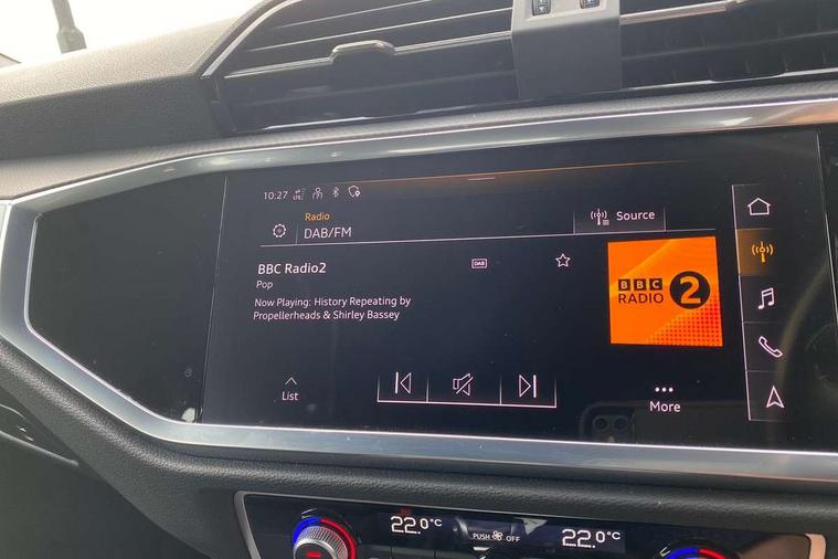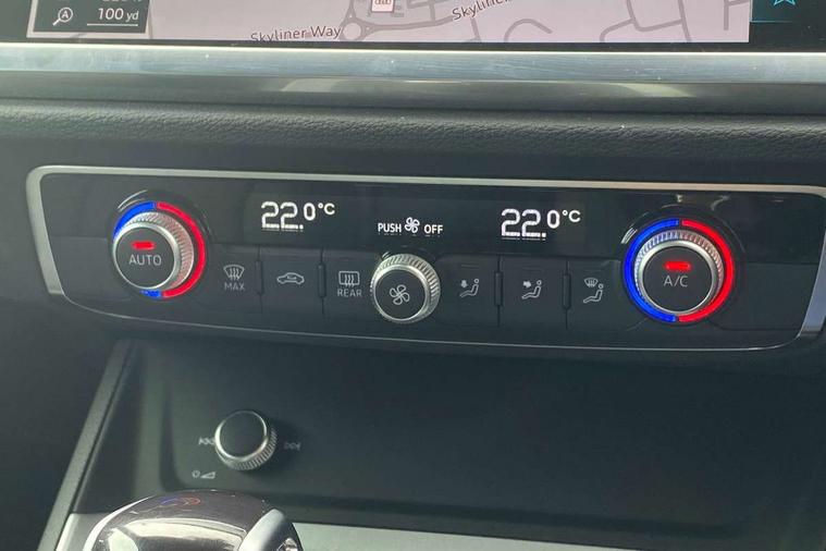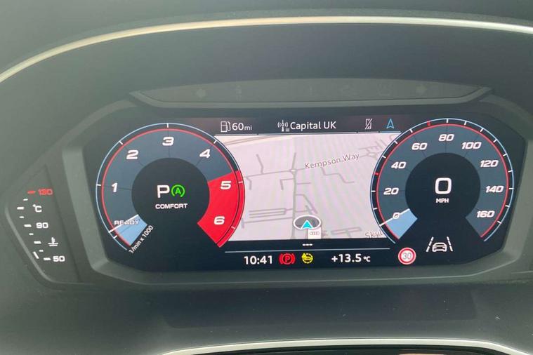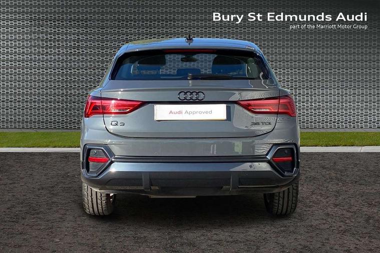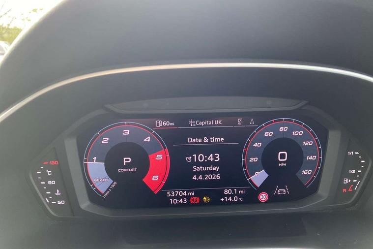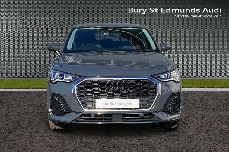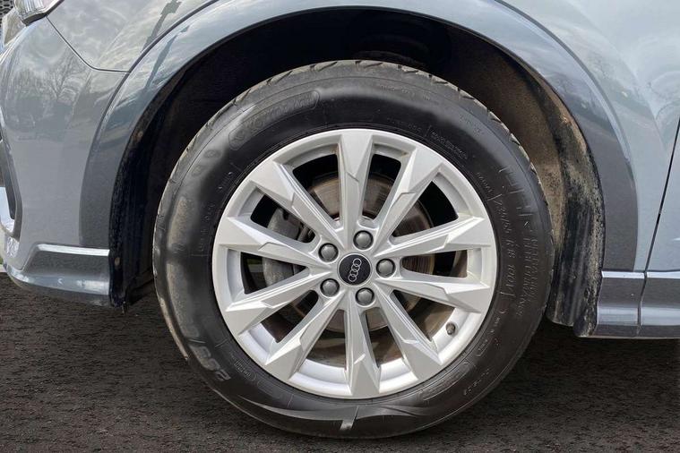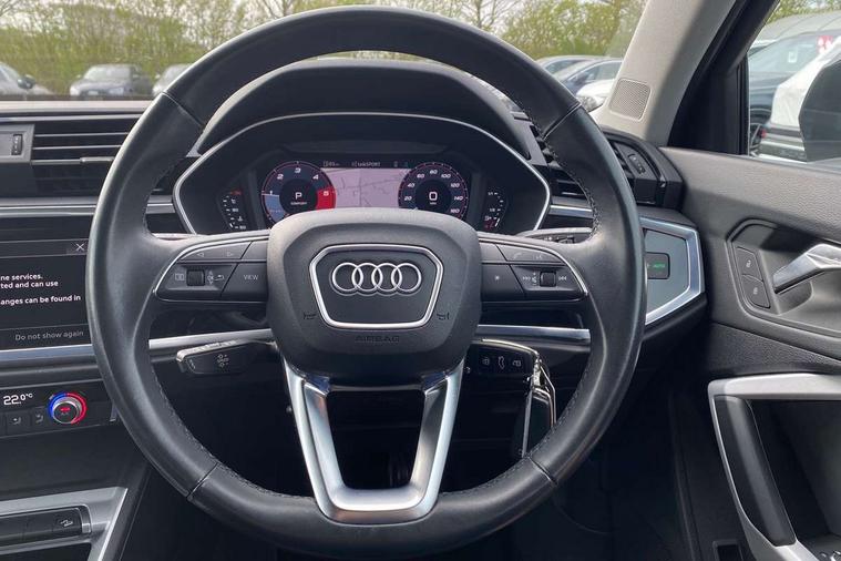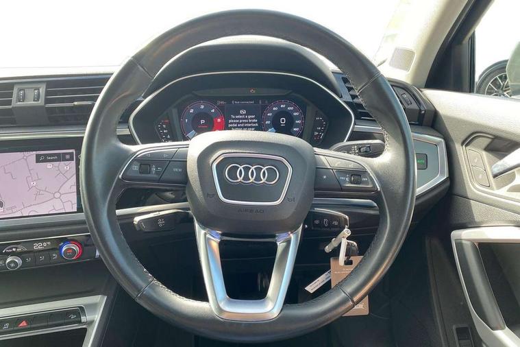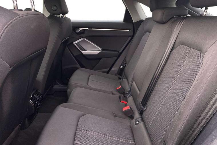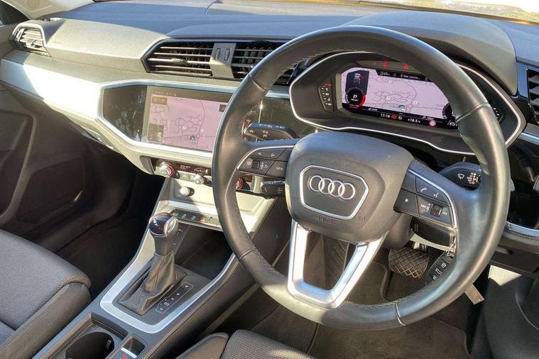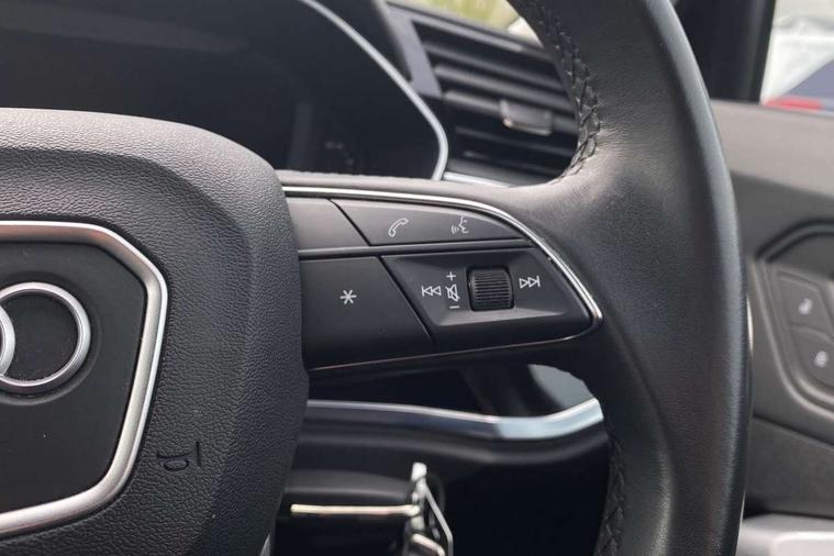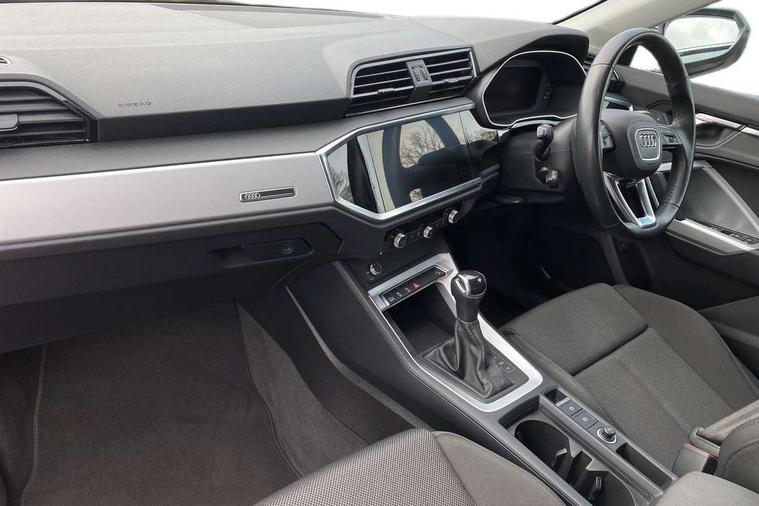 Audi drive select, Audi lane departure warning, Audi Virtual Cockpit - 10.25" display, Bluetooth interface, Camera based traffic sign recognition, Legal emergency call, MMI Navigation Plus with high resolution 10.1 inch touchscreen colour display, Power operated tailgate, Progressive steering, Service interval indicator, Smartphone interface includes wireless Apple carplay/Android Auto, Start stop system with recuperation, Voice control system with natural language interaction, Diesel particulate filter, Sports suspension, 2 USB-C ports with charge and data functions, 6 passive loudspeakers, DAB digital radio module, Acoustic windscreen, Aluminium window trim, Auto dimming frameless rear view mirror, Bumpers and underbody protection in contrasting manhattan grey paint finish, Diffuser grille in grained matt black, Diffuser trim in manhattan grey metallic, Door sill trims with illuminated aluminium inlay, Electrically folding, adjustable and heated door mirrors with integrated LED side indicators and kerb view function for passenger side, Front and rear electric windows, Front fog lights, Front side air inlets in Manhattan grey metallic, Grille surround in aluminium silver matt, High gloss black finish B and C pillars, Honeycomb design radiator grille in matt anthracite black, LED Dynamic rear indicators, LED headlights with LED daytime running lights, LED rear lights, LED third brake light, Rain and light sensors, Rear side wing doors, Rear wiper, Variable front intermittent wipers, 12V socket in rear centre console, 3 seat bench in 2nd row, 3 spoke multi-function leather steering wheel, 40:20:40 folding with manual adjustment for 60:40 forwards/backwards position and backrest angle, Dual zone electronic climate control, Front and rear floor mats, Front and rear headrests, Front and rear roof module including reading lights, Front centre armrest, Glove compartment lighting, Height and reach adjustable steering wheel, ISOFIX child seat mounting for front passenger with airbag deactivation and outer rear seat including top tether attachment point for outer rear seats, Luggage compartment light right in white, Luggage compartment sill protection in stainless steel, Lunar silver cloth headlining, Manual front seats with height adjustment, Single front passenger seat, Non smoking pack - Q3, 3x3 point rear seatbelts, 6 airbags - Driver, front passenger, curtain and side windows, Audi pre-sense front with pedestrain and cyclist recognition, Electrically operated child locks on rear doors, Electromechanical parking brake, Electronic stabilisation control including ABS, ASR and EDL, Front seatbelt reminder, Hill descent control, Hill hold assist, Pre sense basic, Seatbelt monitoring, Tyre pressure warning, Warning triangle and first aid kit, Anti theft alarm, Anti theft wheel bolts, Immobiliser, Remote central locking, Aluminium look interior elements, Black dashboard, Detail dashboard around MMI touch colour display in glass look, black with surround in aluminium look, Micrometallic silver inlay,