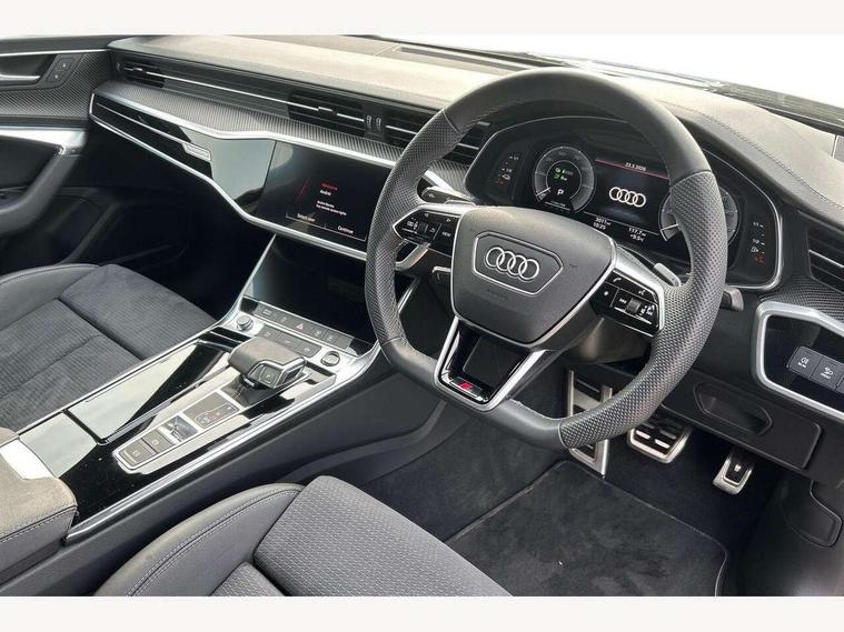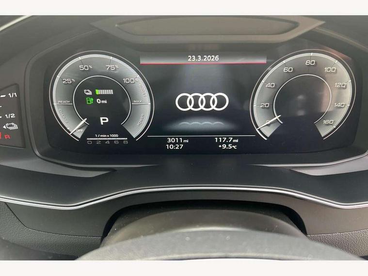 Audi connect safety and service (e-call), Audi connect with Amazon Alexa Integration, Audi drive select, Audi parking system plus - acoustic and visual park assist system for front and rear, Audi virtual cockpit, Automatic start/stop system with coasting functionality, Bluetooth interface, Camera based traffic sign recognition, Electric boot lid release, Lane departure warning system, MMI navigation plus with 10.1" and 8.6" touch screens, Progressive steering, Rear view camera, Service interval indicator, Smartphone interface includes wireless Apple carplay/Android Auto, Voice control system, 3 pin 10 amp domestic charging cable, 52 litre fuel tank, 7.4 kW onboard charger, Compact charging system, Hybrid propulsion system, Industrial connector CEE 32A, 230V, long and straight for the e-tron charging system, Mode 3 charging cable for public charging (AC), Sports suspension, Type 2 socket for AC charging, Audi front music interface, Audi sound system, Auxiliary input socket, DAB Digital radio, USB connection, Audi beam, Electric front/rear windows, Electrically adjustable heated and folding + automatically dimming exterior mirrors with memory function, Frameless auto dimming interior rear view mirror, Front intermittent wipers, Heat insulating darkened glass in side and rear windows, Heat insulating glass in windshield, LED rear lights with dynamic indicators, LED signature front daytime running light, LED third brake light, Matrix LED headlights, Matt black rear diffuser with diffuser strip and tailpipes in chrome, Matt black side air intake grille with inlay in matt aluminium, Omission of output/technology badging, Privacy glass, Radiator grille in anthracite black matt, single frame in chrome and horizontal struts in matt aluminium silver, Rain and light sensors, Rear boot, Rear side wing doors, 4 zone deluxe automatic climate control, 40/20/40 split folding 3 rear seat bench in 3 parts with rear centre armrest, Audi phone box light, Black cloth headlining, Electrically adjustable front seats including seat height, fore/aft position, backrest angle and 4-way lumbar with memory for driver's seat, Front and rear floor mats, Front centre armrest, Front head restraints, Heated front seats, Height/reach adjust steering wheel, Illuminated door sill trims with S logo, Illuminated sun visors with vanity mirrors, Leather gear knob, Rear headrests, Single front passenger seat, Stainless steel pedals and foot rest, Tool kit and car jack, Black styling package plus - A6 Black edition, LED Interior Ambient Lighting Pack - A6, Non smoking pack - A6, S line exterior style pack - A6, 3 point seatbelts on all seats, Airbags - Front side, front and rear including head, Audi pre-sense front, EBD - Electronic brakeforce distribution, Electromechanical parking brake, Electronic Stability Control (ESC) including ABS, ASR and EDL, Extended pedestrian protection measures, ISOFIX child seat mounting for front passenger seat and ISOFIX child seat mounting with Top Tether for outer rear seats, Manual child proof rear door locks, Seatbelt monitoring, Tyre pressure warning light, Warning triangle and first aid kit, Anti theft alarm with tow away protection, Anti-theft wheel bolts and wheel loosening detection, Immobiliser, Keyless Go, Remote central locking, Carbon twill inlays, Tyre repair kit,