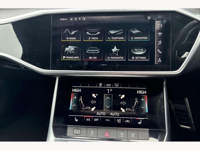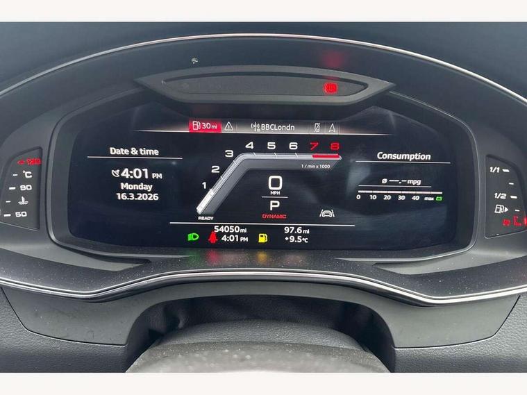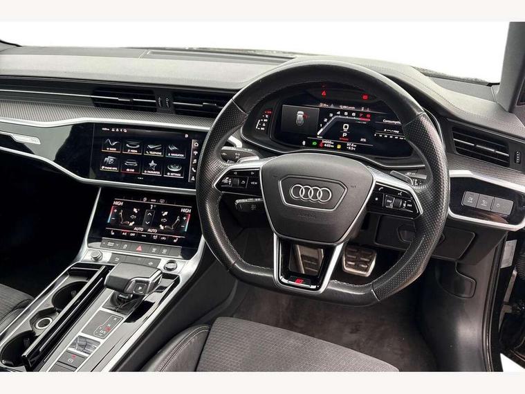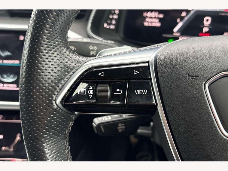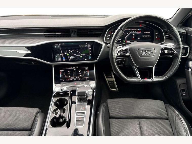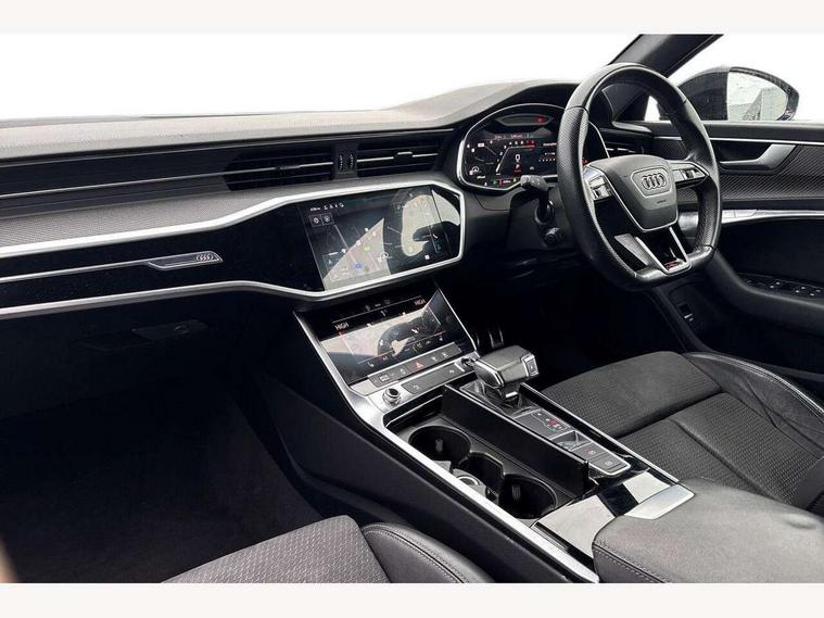 7" high resolution colour driver information display system, Audi connect safety and service (e-call), Audi connect with Amazon Alexa Integration, Audi drive select, Audi parking system plus - acoustic and visual park assist system for front and rear, Automatic start/stop system with coasting functionality, Bluetooth interface, Lane departure warning system, Power operated tailgate, Progressive steering, Rear view camera, Service interval indicator, Smartphone interface includes wireless Apple carplay/Android Auto, Voice control system, Sports suspension, Audi front music interface, Audi sound system, Auxiliary input socket, DAB Digital radio, USB connection, All weather LED headlights, Black roof rails, Electric front/rear windows, Frameless auto dimming interior rear view mirror, Front intermittent wipers, Gloss black highlights on the exterior area of the Audi Single frame, Gloss black highlights on the front and rear bumpers, Gloss black highlights on the radiator grille, Gloss black highlights on the side windows trim strips, Headlight washers, Heat insulating darkened glass in side and rear windows, Heat insulating glass in windshield, LED rear lights, LED signature front daytime running light, LED third brake light, Matt black rear diffuser with diffuser strip and tailpipes in chrome, Matt black side air intake grille with inlay in matt aluminium, Privacy glass, Rain and light sensors, Rear roof spoiler, Rear side wing doors, Rear wiper, 2 zone deluxe electronic climate control, 4 way electric lumbar support for driver and front passenger, 40/20/40 split folding 3 rear seat bench in 3 parts with rear centre armrest, Black cloth headlining, Black front and rear carpet floor mat, Black steering wheel insert, Electrically adjustable front seats with driver memory, Front centre armrest, Front head restraints, Heated front seats, Height/reach adjust steering wheel, Illuminated door sill trims with S logo, Illuminated sun visors with vanity mirrors, ISOFIX child seat mounting and Top Tether with front passenger airbag deactivation, Leather gear knob, Luggage compartment system, Rear headrests, Single front passenger seat, Stainless steel pedals and foot rest, LED Interior Ambient Lighting Pack - A6, Non smoking pack - A6, Technology pack - A6, 3 point seatbelts on all seats, Airbags - Front side, front and rear including head, Audi pre-sense front, EBD - Electronic brakeforce distribution, Electromechanical parking brake, Electronic Stability Control (ESC) including ABS, ASR and EDL, Extended pedestrian protection measures, Manual child proof rear door locks, Seatbelt monitoring, Tyre pressure warning light, Warning triangle and first aid kit, Anti theft alarm with tow away protection, Anti-theft wheel bolts and wheel loosening detection, Immobiliser, Keyless Go, Remote central locking, Black seatbelts, Carbon twill inlays, 20" 5 V spoke star design Audi sport cast aluminium alloy wheels in matt titanium look,