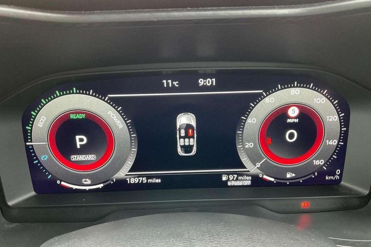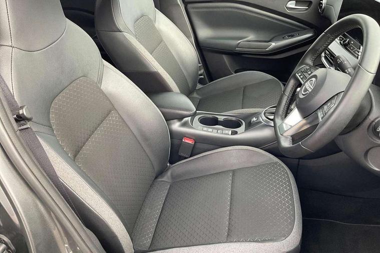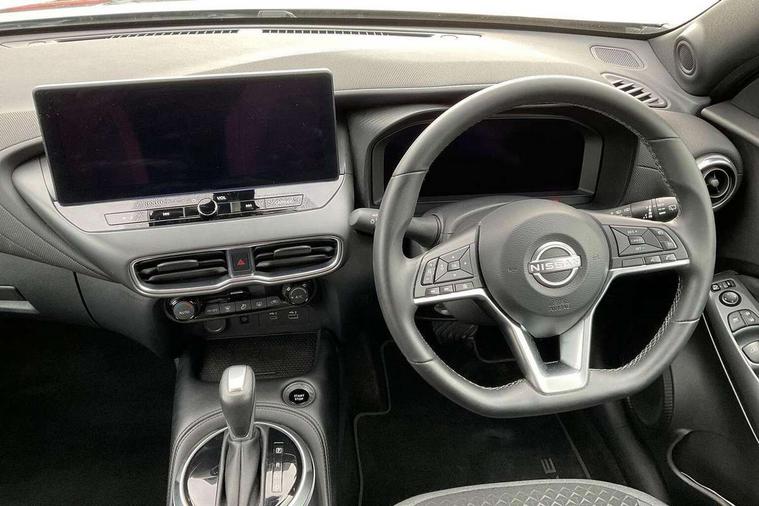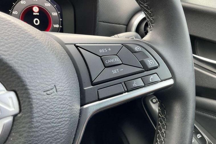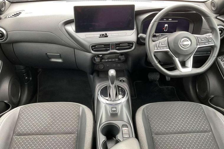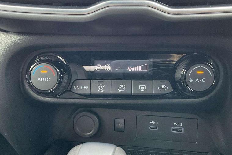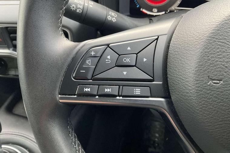 12.3" full colour TFT screen combimeter, Drive modes select (Eco, normal and sport), e-Pedal step, Emergency and breakdown call, EV mode switch, Front parking sensor, Intelligent driver alert system, Intelligent lane intervention, Lane departure warning system, Nissan connect 12.3" touch screen entertainment system, Nissan connect nav with TomTom traffic, Nissan connect services, Outside temperature sensor, Power Steering, Rear parking sensor, Stop/start button, Traffic sign recognition, Trip computer, Voice recognition, WiFi connectivity, Wireless Apple CarPlay and Google Android auto, Wireless Smartphone charger, 2 X Rear console USB port, 6 speakers, Bluetooth system, USB, Aux-in and 12V socket, DAB Digital radio, Auto dimming frameless rear view mirror, Automatic hazard signal with emergency stop signal, Body colour door handles, Electrically adjustable door mirrors with integrated indicators, Follow me home headlights, Front and rear electric window with one touch driver window, Heated and auto folding door mirrors, High beam assist, LED 3rd brake light, LED daytime running lights, LED headlamps, LED rear fog lamp, LED rear lamps, One touch passenger window, Rain sensor windscreen wipers, Rear privacy glass, Rear side wing doors, Rear wiper, Roof spoiler, Shark fin roof antenna in solid Black, Three blink turn signal, 3 height adjustable rear headrests, 3 seat bench in 2nd row, 60/40 split folding rear seat, Automatic climate control, Card holder on driver sunvisor, Cloth/Synthetic leather with melange fabric inserts, Driver side rear coat hanger, Driver/passenger sunvisors and vanity mirrors, Front and rear cabin lights, Front armrest, Front door pockets with bottle holders, Front head restraints, Front/rear passenger grab handles, Height adjustable driver's seat, Internal chrome door handles, Leather gearshift knob, Luggage board, Luggage space lighting, Monoform sporty seats, Multifunction steering wheel, Rear door bottle holders, Single front passenger seat, Smooth synthetic leather steering wheel, Synthetic leather kneepad, Telescopic steering wheel adjustment, Two cupholders in front centre console, Two rear isofix child seat anchorage points with top tether, Welcome light and console tray ambient lighting, ABS with EBD and brake assist, Active ride control, Active Trace Control, Driver and passenger airbags, Driver and passenger side airbags, Electric handbrake with auto hold function, Electronic Stability Programme (ESP), Front and rear curtain airbags, Height adjustable seatbelts, Hill start assist, Intelligent emergency braking with pedestrian and cyclist recognition, Rear door child safety locks, Seatbelt reminder for driver/front passenger and rear seats, Three 3 point rear seatbelts, Traction control, Tyre pressure monitoring system, VDC Dynamic Vehicle Control, Alarm, Immobiliser, Intelligent key and start push button with walk away lock and approach unlock functions, Remote central locking, 17" Alloy wheels, Tyre puncture repair kit,