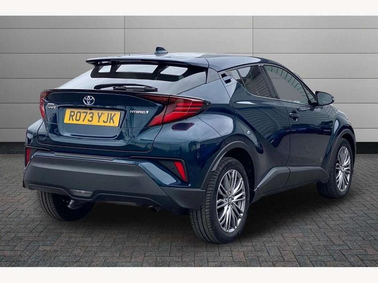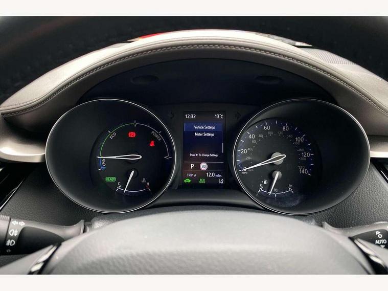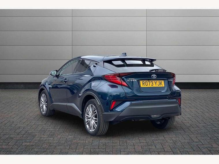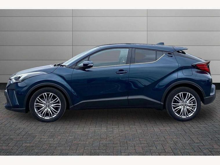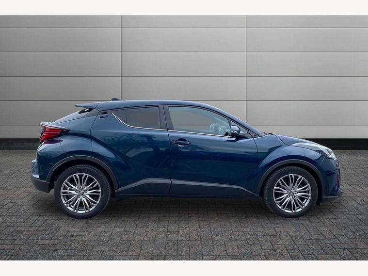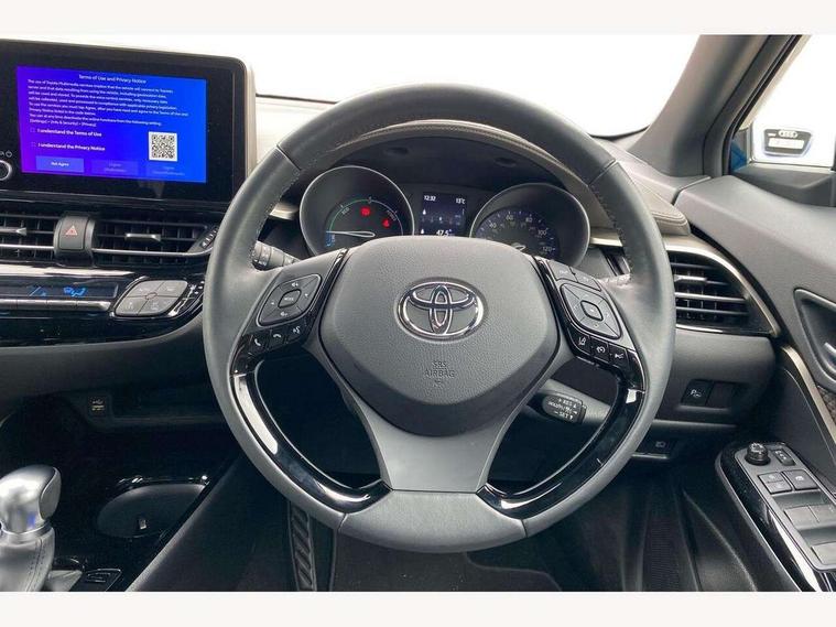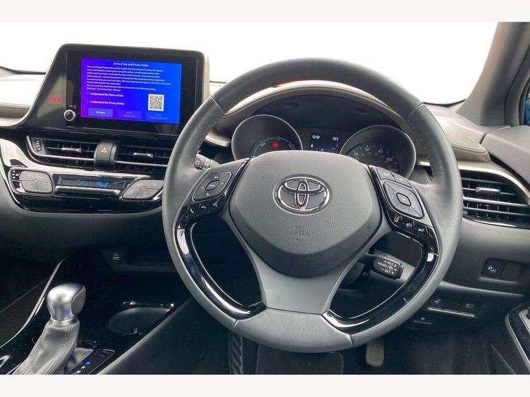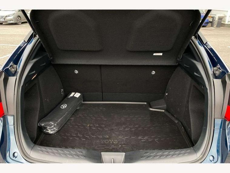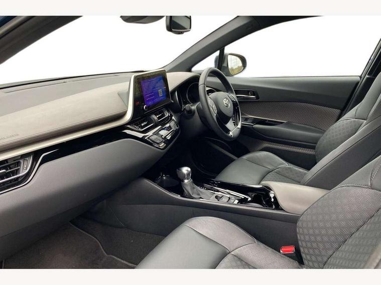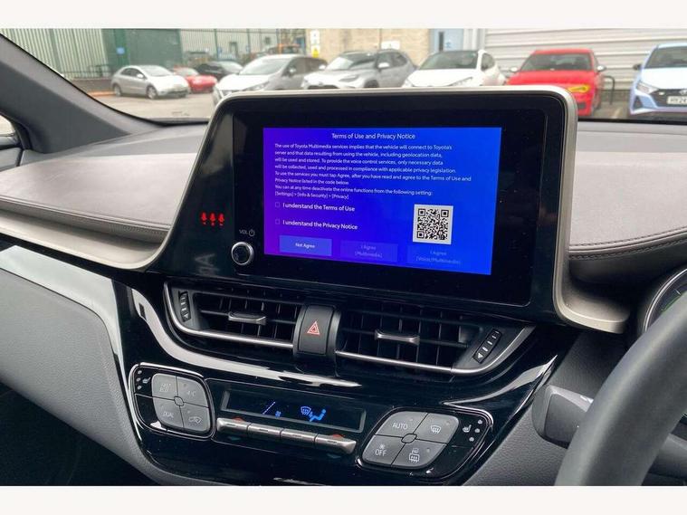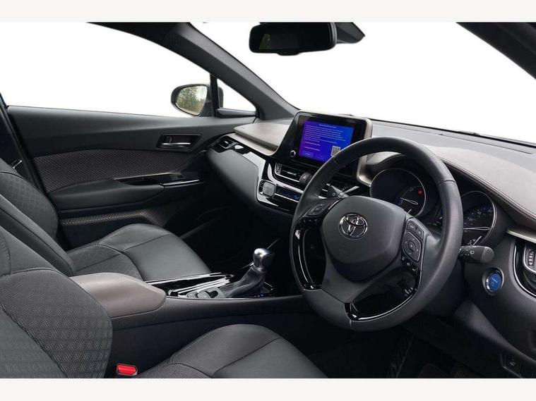 4.2" coloured TFT screen for multi-information display, Adaptive cruise control, Apple car play and Android auto, Bluetooth connectivity, E-call, Electric power steering, Hybrid system indicator, Lane departure alert with steering control, Lane trace assist, Push button tailgate release, Remote boot door release in cabin, Remote boot door release in key, Reversing camera, Road sign assist - RSA, Simple Intelligent parking assist, Smart voice assist, Touch 2 Go navigation system, Trip computer, Voice recognition, Wireless smartphone integration, Vehicle Stability Control (VSC), 6 speakers, AM/FM radio, DAB Radio (Digital Audio Broadcasting), Toyota touch 2 multimedia system with 8" display, USB connector, Wi-fi connectivity, Adaptive front light system, Adaptive LED Headlights, Anti-jam protection on power windows, Auto high beam, Auto up and down function on all power windows, Automatic headlight levelling, Automatic headlights, Automatic headlights cut-off, Black and body coloured rear bumper, Black lower front grille, Black upper front grille, Body colour door handles, Body colour door mirrors, Body colour front spoiler lip, Body coloured front bumper, Boot door release with push button, Electric heated door mirrors, Follow me home headlights, Front and rear power windows, Headlight cut off reminder, Honeycomb lower front grille, LED daytime running lights, LED fog lights, LED front light guide, LED High mounted stop light, LED rear brake lights, LED rear combination lights, Noise reduction layer on front windows and windscreen, Power adjustable door mirrors, Privacy glass, Rain sensor, Rear sequential indicators, Rear side wing doors, Rear spoiler, Rear tailgate, Rear window defogger, Rear window wiper, Shark fin antenna, UV-filter on driver and passenger windows, UV-filter on rear windows, Variable front intermittent wipers, 12v power outlet - front, 3 rear headrests, 3 seat bench in 2nd row, 3 spoke leather steering wheel, 60/40 split folding 2nd row rear seats, Adjustable rear headrests, Adjustable speed limiter switch on steering wheel, Assist grips front and centre pillar, Audio and telephone switches on steering wheel, Black front door assist grips, Blue ambient lighting on front cup holders, Blue ambient lighting on front doors, Boot light, Chrome interior door handles, Driver and front passenger personal light, Driver and front passenger Whiplash Injury Lessening seats, Driver and passenger seatback pockets, Dual zone automatic air conditioning, Floor mats, Front cupholders, Front head restraints, Front sports seats, Glovebox with internal light, Hard tonneau cover, Heated driver and front passenger seats, Heated steering wheel, Hooks for luggage holding net, Humidifying Nanoe air purifier, Illuminated entry system, Isofix attachments on outer rear seats, Leather gearshift, Light on driver sun visor, Light on passenger sun visor, Manual telescopic steering wheel, Manual tilt steering wheel, Microphone on front personal light, Mirror on driver sun visor, Mirror on passenger sun visor, Multimedia switches on steering wheel, Pollen filter, Power adjustable lumbar support on driver seat, Power tilting cushion on driver seat, Shopping bag hooks, Single front passenger seat, Slow opening on lower glovebox, Voice recognition switch on steering wheel, Leather pack - C-HR, Tech with parking sensor pack - C-HR, 16 Disk front wheel brake, 3x3 point rear seatbelts, ABS+EBD+Brake assist, Electronic parking brake, Front and rear seatbelt reminder, Front passenger airbag on/off switch, Hill start assist control (HAC), Pre collision system with pedestrian detection, Pre-tensioners and force limiters, Rear door child safety locks, SRS Airbags - Driver + Front passenger, front side, front and rear curtain and driver's knee airbags, Toyota safety sense, Tyre pressure monitoring system, Tyre pressure warning system, Acoustic vehicle alert system (AVAS), Glass-breaking alarm sensors, Immobiliser, Intrusion alarm, Intrusion sensor, Motion sensor alarm, Power door locks, Power passenger window lock, Remote central locking, Black lower dashboard, Dark brown upper dashboard, Piano black console, Silver deco line on upper dashboard, Tyre repair kit,