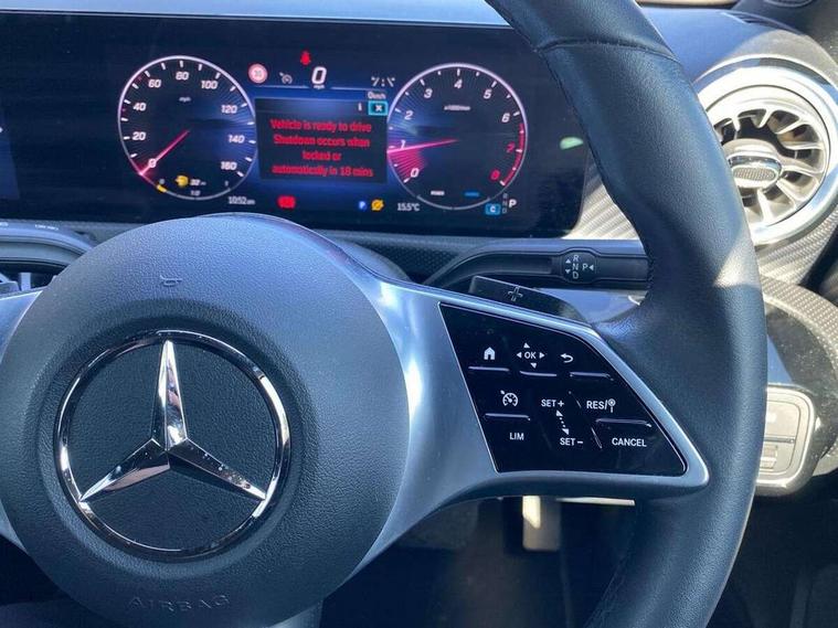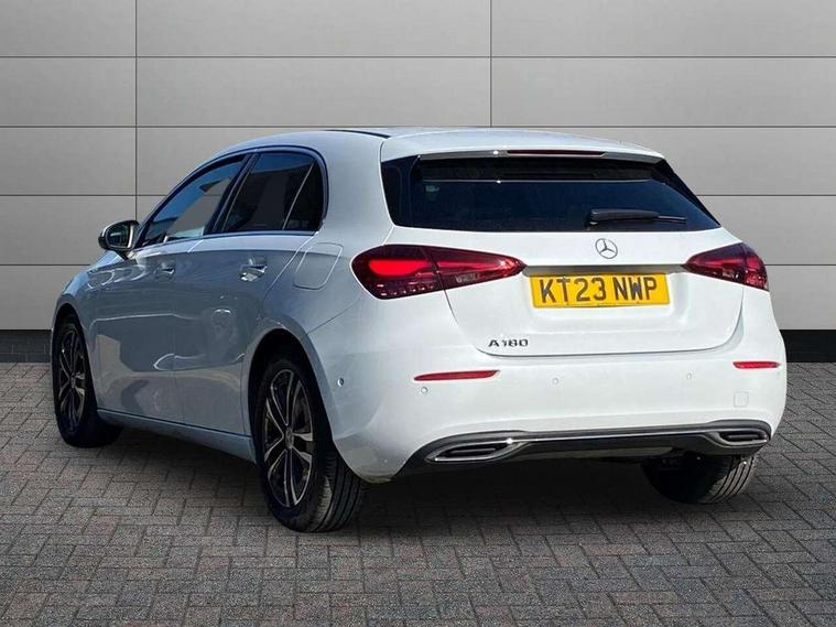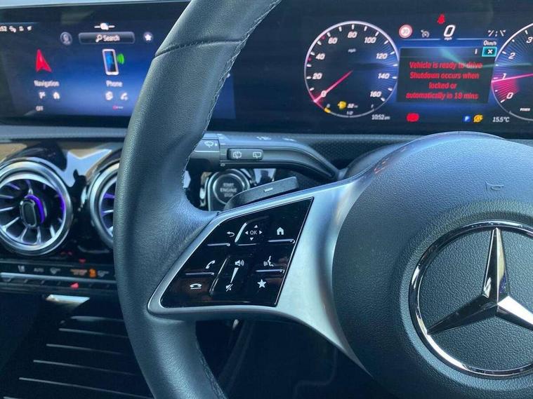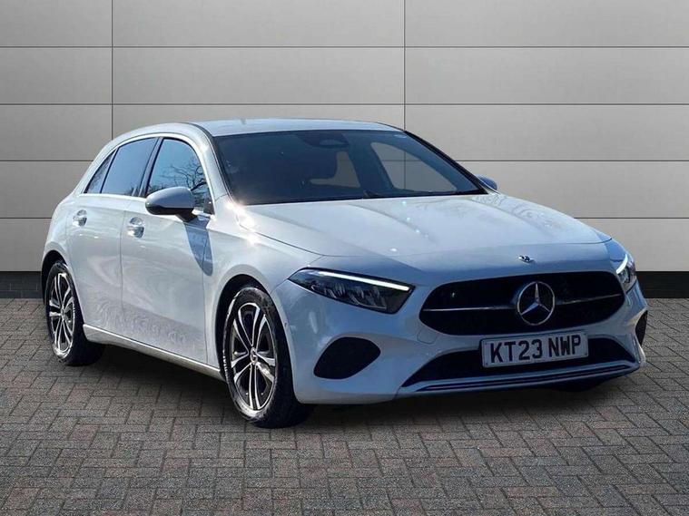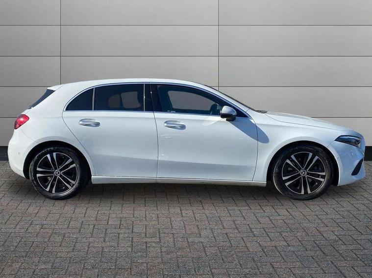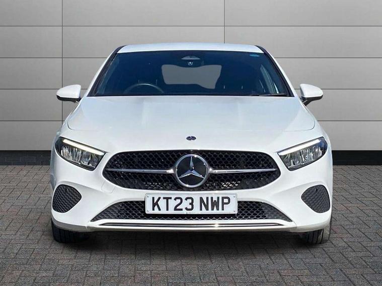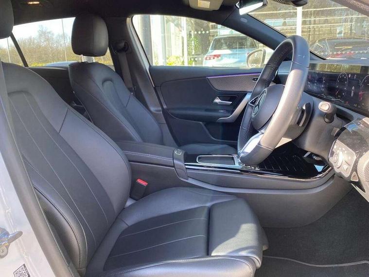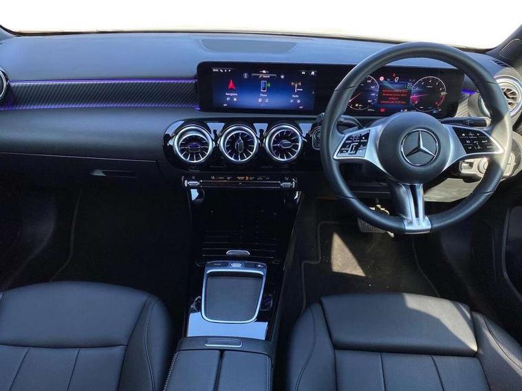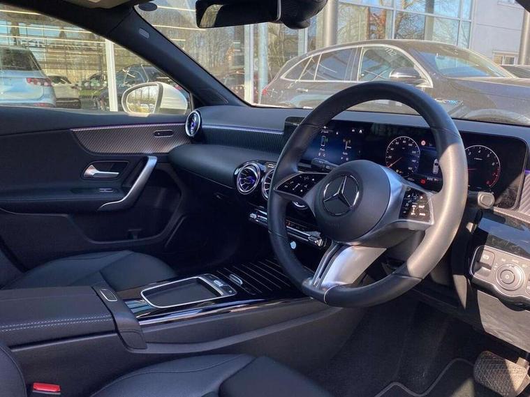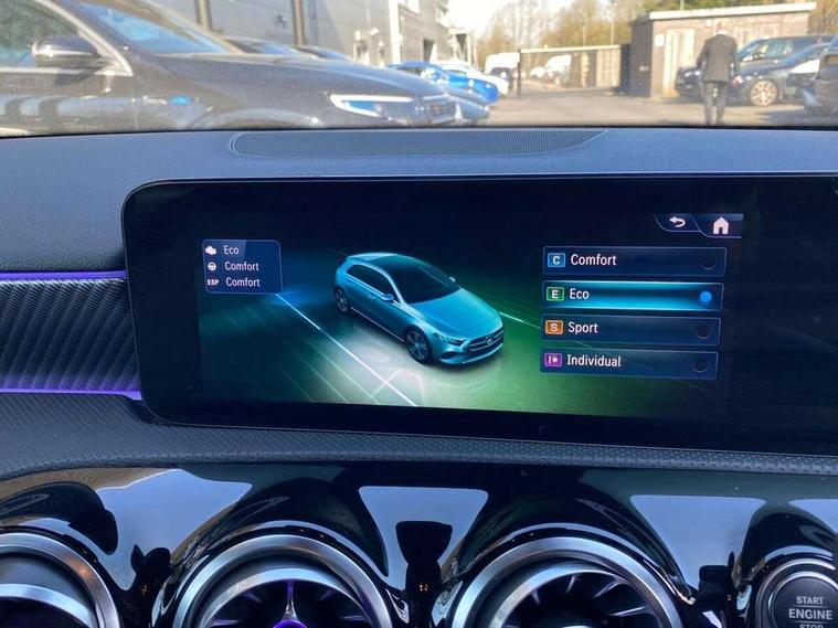 10.25 inch touchscreen central media display, 10.25" Digital instrument cluster display screen, Attention assist, Brake pad wear indicator warning light, Car wash mode, Cruise control + speed limiter, Direct steering, Direction indicators with lane change function, Dual bluetooth interfaces, DYNAMIC SELECT with a choice of driving modes (ECO, Comfort, Sport and Individual), Easy pack tailgate hands-free access, ECO start/stop function, Engine start/stop button, Fluid level warning indicator for fuel, oil, coolant and washer fluid, Hard-disk navigation, Hey Mercedes Voice activation, Lamp failure indicator, Lane keeping system, Mercedes me connect including emergency call system, accident recovery, breakdown management and maintenance, Mercedes me remote services, Outside temperature gauge, Owners manual in English, Pre-installation of private car share, Preinstallation for Mercedes Benz link, Remote boot closing, Service indicator (ASSYST), Smartphone integration with Apple CarPlay and Android auto, Speed limit assist, Speed sensitive power steering, Trip computer in multifunction display with current consumption indicator, Wireless charging, Lowered comfort suspension, DAB Digital radio, MBUX multimedia system, Mercedes Benz sound system (100 W) with 6 speakers, 4 Electric Front and Rear windows, Adaptive brake lights, Body colour bumpers, Body colour door handles with chrome inserts, Body colour side skirt, Body coloured door mirrors, Chrome beltline strips, Diamond radiator grille with pins in fine star pattern, Electric adjustable and heated door mirrors with integrated LED side indicators, Exhaust system with 2 visible tailpipe trim elements and rear apron, Headlamp assist automatic headlamp activation, Heat insulating dark tinted rear and rear side windows, Heated glass rear windscreen + timer control, LED High level third brake light, LED High Performance headlamps including integral LED daytime running lamps and adaptive highbeam assist, LED tail lamp, Privacy glass, Radio aerial, Rain sensing windscreen wipers with two sensitivity settings, Rear fog lights, Rear side wing doors, Rear windscreen wiper, Window line trim strip in chrome, 3 seat bench in 2nd row, 3 Spoke leather multi function steering wheel, 4 way lumbar support, 40:20:40 split folding rear seats, Air conditioning - One zone thermatic automatic climate control with automatically controlled air distribution, Artico man-made leather upholstery, Automatic child seat recognition sensor, Black air vents with surround in silver chrome, Black roof lining, Front centre armrest with stowage, Front comfort seats with adjustable head restraints, Front door sills with Mercedes Benz lettering, Front seat backs luggage nets, Gearshift paddles on steering wheel, Heated front seats, Height/reach adjustable steering column, Interior lighting - 64 colour Ambient lighting, Interior mirror with reading lamps in black and frameless, ISOFIX and top tether child seat fixing points in two outer rear seats, Rear armrest with 2 cupholders, Rear head restraints, Seat occupancy sensor for front passenger seat, Single front passenger seat, Stowage compartment in centre console with retractable cover, Sunvisors with illuminated vanity mirrors, Twin front cupholders, Velour floor mats, Light and sight pack - A Class, Mirror package - A Class, Parking pack - A Class, Seat comfort pack - A Class, USB pack plus - A Class, 3 rear 3 point seatbelts, ABS with Brake Assist, Active bonnet, Active brake assist includes forward collision warning system with autonomous braking, Adaptive brake assist with hold function and hill start assist, Black seatbelts, Bonnet with power domes, Childproof locks manually operated for rear doors and electrically operated for rear power windows, Crash responsive emergency lighting, Driver and passenger head and side airbags, Drivers knee airbag, Dual stage driver/passenger airbags, Electronic parking brake, ESP curve dynamic assist, ESP with ASR, Front and rear seatbelt reminder, Tyre pressure monitoring system, Warning triangle and first aid kit, Window airbags, Alarm system/interior protection/immobiliser, Guard 360 degree vehicle protection, Keyless entry lock/unlock, Keyless Go, Remote central locking and crash sensor with emergency opening function, Dark carbon fibre interior trim, 17" 5 spoke light alloy wheels, aerodynamically optimised, painted in black with high sheen finish, Summer tyres, Tirefit sealant kit,