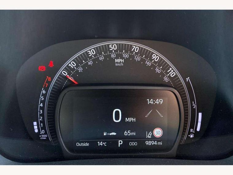 4.2" TFT colour screen, Adjustable speed limiter, Analogue speedometer, Bluetooth connectivity, Digital tachograph, Driver attention alert system, eCall emergency call system, ECO-driving indicator, Electric power steering, Intersection turn assist, Key reminder warning, Noise reduction kit, Pre collision system with emergency steering assist, Reversing camera with static guide lines, Smart phone integration with Apple car play/Android Auto, Speed limit display, Start and stop, Vehicle Stability Control (VSC), 4 speakers, DAB digital audio broadcast, Toyota touch 2 multimedia System with 8" Screen display, USB connector, Auto headlights, Auto wipers, Automatic headlights cut-off, Bicycle towing hook, Black side protection mouldings, Black wheel arch mouldings, Body colour door handles, Body coloured front bumper, Boot door scuff plate, Eclipse black rear bumper, Electric heated door mirrors, Follow me home headlights, Front fog lights, Front power windows, Gloss black door mirrors, Gloss black upper front grille, Headlight cut-off reminder, LED daytime running lights, LED front light guide, LED High mounted stop lamp, Manual day/night rear view mirror, Manual headlight levelling, Pagoda roof, Power adjustable door mirrors, Power back door, Privacy glass, Projector halogen headlights, Rain sensor, Rear combination lights LED bulb type, Rear side wing doors, Rear windscreen defogger, Rear windscreen wiper, Short antenna, Variable intermittent windscreen wipers, 12v power outlet - front, 2 seat bench in 2nd row, 3 spoke leather steering wheel, 50/50 split folding rear seat, Adhesive roof headlining, Adjustable speed limiter switch on steering wheel, Audio and telephone switches on steering wheel, Auto air conditioning, Black insert on steering wheel, Black roof lining, Boot light, Centre room light, Chrome interior door handles, Chrome surround on air conditioning buttons, Clean air filter, Console box storage in body color, Fabric upholstery, Floor mats, Front and rear cup holders, Front head rest deco art, Front head restraints, Gear shift indicator, Height adjustable driver seat, Intelligent adaptive cruise control switch on steering wheel, ISOFIX child restraint system on rear seats, Lane departure alert switch on steering wheel, Leather gearshift knob, Manual tilt steering wheel, Manually reclining and sliding driver seat, Manually reclining and sliding front passenger seat, Multimedia switches on steering wheel, Pollen filter, Rear door pockets, Rear head restraints, Satin silver insert on gear shift knob, Single compartment glovebox with lights, Single front passenger seat, Soft tonneau cover, Sun visors with mirror on driver and passenger side, Voice recognition switch on steering wheel, Toyota safety sense pack - Aygo X, Anti lock braking system + Electronic brake force distribution, Child safety door lock, Emergency brake light signal (EBS), Hill start assist control (HAC), Passenger airbag on/off switch, Seat belt reminder for front and rear seats, Supplement restraints system (SRS) - 6 airbags, Traction control, Tyre pressure warning system, Immobiliser, Remote power door locks, Black wheel centre caps, Tyre repair kit,