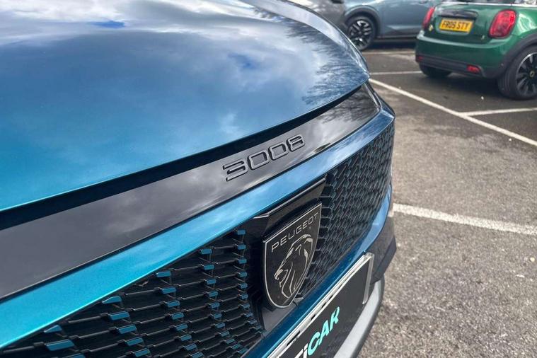 Bluetooth with two microphones (Connect up to 2 phones), Drive modes select (Eco, normal and sport) with configurable ambient lighting, Driver attention alert, Driver foot rest, Driver profile selection, E-call, Exterior temperature indicator with ice warning, Front passenger seat detection, Lane keep assist, Manual gear changes via steering mounted paddles, Multi function trip computer, Natural voice recognition, PEUGEOT i-Cockpit - 21" HD panoramic curved display incorporating instrument panel and touchscreen with 3colour themes, PEUGEOT i-connect advanced HD fully customisable touch screen, Navigation with Tom Tom Live updates and over the air map updates, PEUGEOT SOS and assistance, Rear parking sensor, Speed limit and traffic sign recognition and recommendation, Wireless mirror screen with apple carplay and android auto, Wireless smartphone charger with status light and ambient lighting, Dynamic stability control and electronic anti-skid system, 6 speakers, AM/FM bi-tuner, DAB Radio (Digital Audio Broadcasting), Peugeot customisable virtual iToggles, USB-C sockets (2 x front and 2 x rear), 3008 model designation badgers front and rear in basalt grey, Acoustic windscreen, Automatic hazard light activation upon heavy brake application, Automatic headlamp activation, Automatic windscreen wiper activation with interval wiping intensity control, Body colour floating effect rear roof spoiler, Body colour roof, Body coloured exterior door handles, Dark tinted privacy glass for rear door, Tailgate and Quarter windows, Door mirrors - Welcome lighting and integrated LED indicators, Eco LED headlights, Electric adjustable/heated/folding door mirrors, Electrochrome rear view mirror, Flat blade wipers with magic wash integrated nozzles, Front and rear electric windows with one touch, Front grille with body coloured accents, Gloss black connecting strip between rear lights, Gloss black finish B pillar, Grained black lower door claddings and wheel arches, Hybrid rear badging in basalt grey, Laminated windscreen, LED exterior lighting, LED third brake light, Lower front and rear bumper trims in meteor grey, Orbital gloss black door mirrors, Peugeot 3-claw signature front and rear daytime running lights, Rain sensor, Rear side wing doors, Rear wiper, Tailgate with heated rear window, 12V socket in front and boot, 2 cupholders in front centre console, 3 seat rear bench, 4 Grab handles retractable and damped, 4 tie down luggage rings, 40/20/40 folding rear seat backrest with fixed base, 8 colour ambient lighting, Aluminium pedals, Arch design central console with concealed storage, Cabin high efficiency filter, Central front armrest with ventilated storage compartment and LED lighting, Chrome finish interior door handles, Compact split leather mutifunction steering wheel with gloss black and satin chrom detailing, Dual zone climate control, Dynamic front seats, e-Toggle compact gear selector, Electric power steering with reach and rake adjustable steering column, Glasses storage box, roof mounted, LED boot light, LED footwell lights, LED front and rear reading lights with push button control, LED Glovebox light, LED illuminated driver and passenger concealed sunvisor mirrors, Luggage cover, Mistral black pillars and headlining, Quick launch cabin heating/cooling function, Rear air vents, RISPY embossed fabric upholstery, Roof lining - Meteor grey, Seatbelt unfastened on the move audible and visual alert for front and rear seats, Single front passenger seat, Two bag hooks, Two position boot floor, 2x Isofix child seat fitting on outer rear seats with zipped cover, 3x3 point rear seat belts, ABS (Anti-lock Braking System) with EBD (Electronic Brakeforce Distribution) and EBA (Emergency Braking Assistance), Advanced Emergency Braking System with radar (AEBS3) providing night detection of pedestrians and cyclists, Child locking functionality on rear doors, Driver and front passenger airbags with airbag deactivation function, Driver and front passenger side airbags, Electric parking brake, Front and rear curtain airbags, Front optimised safety headrests and 3 x rear retractable headrests with height adjustable, Front/rear disc brakes, Hill start assist, Post collision safety brake, Seatbelts - Front and rear outer seats with pyrotechnic pretensioners and force limiters, 2x Keys (Lock, Unlock, Boot release function with concealed key), Acoustic vehicle alert system (AVAS), Automatic door locking when moving off, Deadlocking system, Electronic code immobiliser, Exterior passenger door lock, Locking wheel nuts, Peugeot Open and Go (keyless entry and push button start), Seatbelts reminder and unfastend warning indicator, Thatcham category 1 Perimetric and volumetric alarm with anti-lift detection, Stene grey finish for dashboard, door panels and central console decors, 19" BREDA diamond cut alloy wheels with star center cap in orbital black, Michelin e-primacy class A tyres,