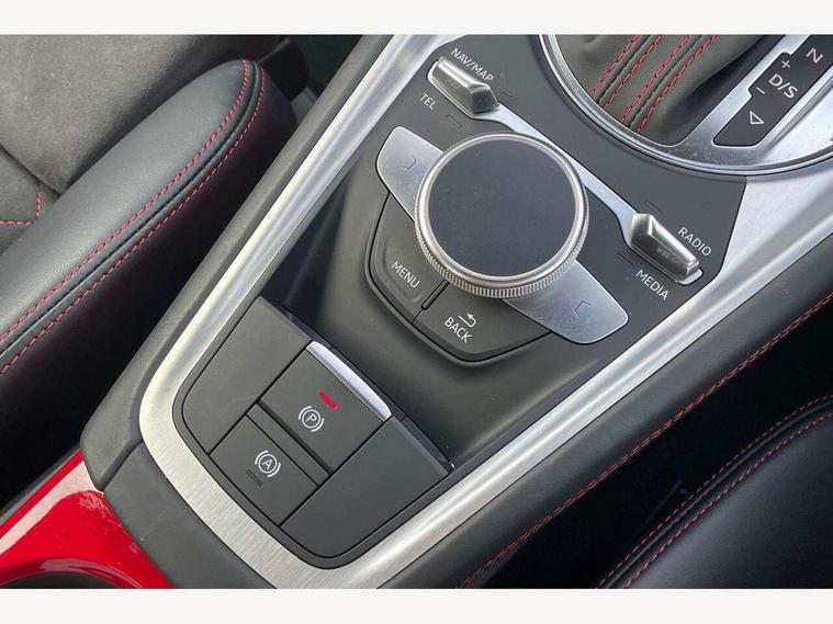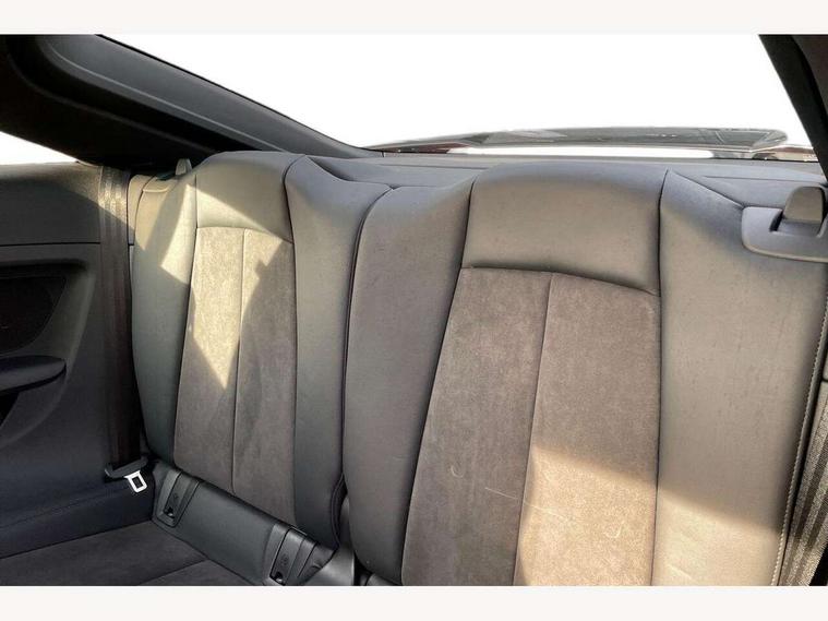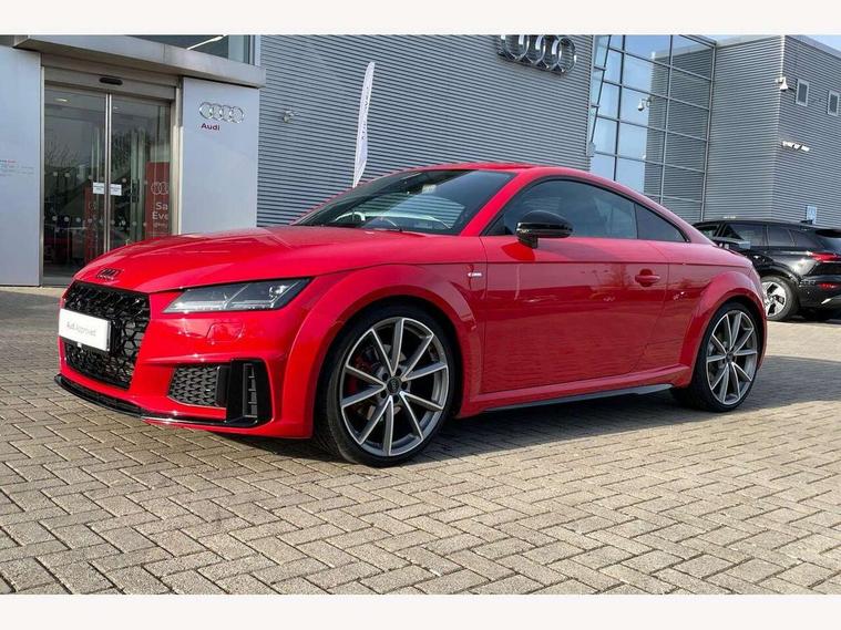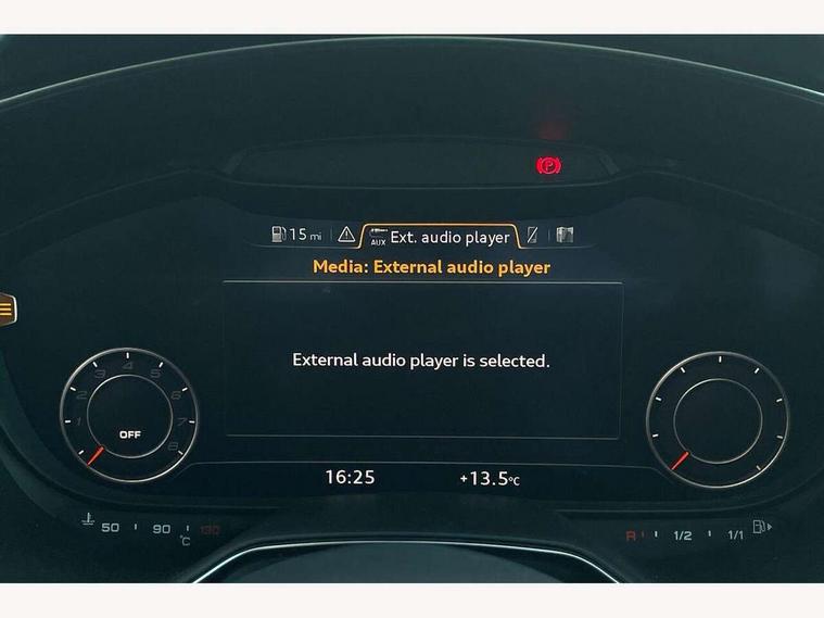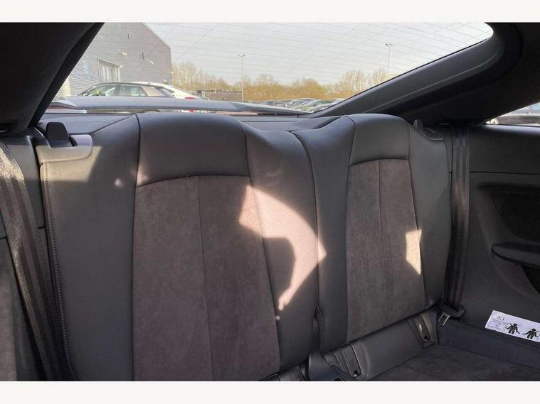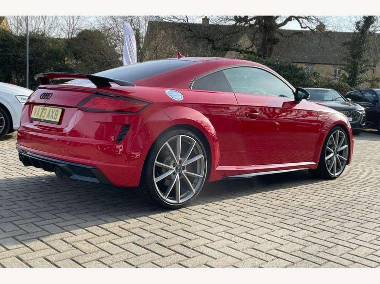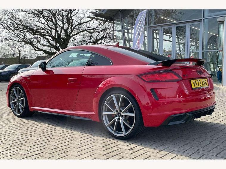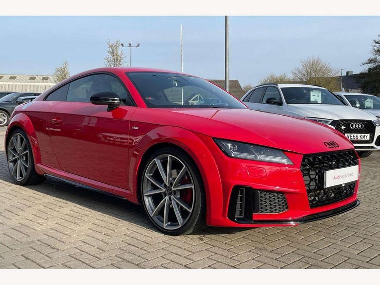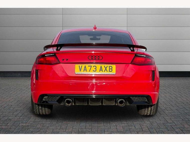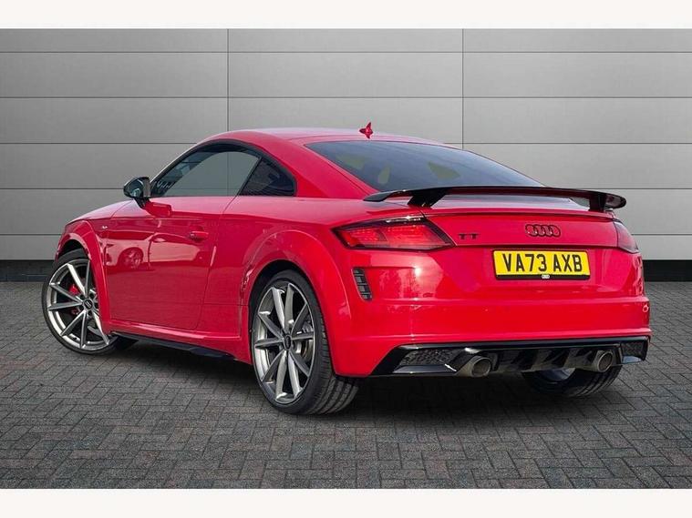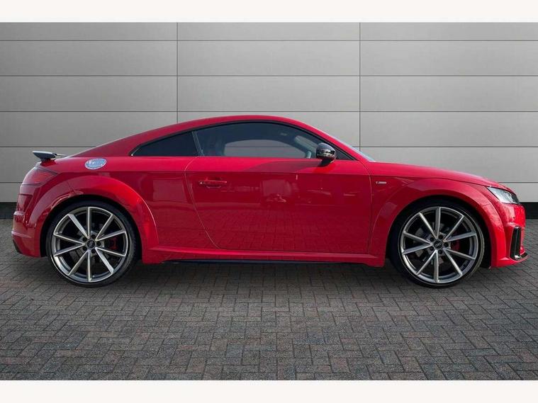Audi drive select with 4 Pre configured modes, Audi smartphone interface, Audi virtual cockpit - 12.3" high-resolution LCD display with fully customisable instrument cluster, Cruise control + speed limiter, Emergency call service, Mobile phone preparation with bluetooth interface, Progressive power assisted steering, Rear parking sensors, Service interval indicator, Start/Stop system with energy recuperation, TP memo, Sports suspension, 8 Speakers, AM/FM radio, Bluetooth audio streaming, DAB Digital radio, Audi Beam uses LEDs to project the Audi Sport logo, Audi rings decals, Auto dimming rear view mirror, Auto headlight range control, Black chrome tailpipe, Black door mirrors, Dark privacy glass from B-pillar backwards, Electric folding door mirrors, Electric front windows, Electrically adjustable and heated door mirrors with integrated LED side indicators, Heat insulating glass in windshield, Heat reflecting windows, LED 3rd brake light, LED daytime running lights, LED headlights with LED rear lights + dynamic rear indicators, Light and rain sensors, Rear boot, 12V socket, 2 rear seats, 3 spoke flat bottomed high multi-function leather sport steering wheel with gearshift paddles, 4 way electric lumbar support for driver and front passenger, Alcantara leather with 12o'clock marker and express red contrast stitching in steering wheel, Alcantara/leather upholstery with S embossing + contrasting express red stitching on upholstery, Steering wheel and gear knob gaiter, Black headlining, Door sill trims, Extended aluminium look with stainless steel pedals, Front centre armrest, Front passenger seat, Front super sports seats, Heated front seats, Integrated head restraints, ISOFIX child seat mounting for front passenger seat with airbag deactivation, Manual adjustment of seat height, fore/aft position, seat angle, seat depth and backrest angle, Rear head restraints, Rear top tether child seat ISOFIX attachment, Red piped floor mats, Split folding rear seat, Black styling package - TT, Leather pack - TT, LED interior light pack - TT/TTS, Non smoking pack - TT/TT RS, Technology pack without Audi phone box - TT, 3 point front seat belts, ABS, ASR traction control, Curtain airbags, Driver and front passenger airbag with front passenger airbag deactivation, EDL traction control, Electromechanical parking brake, ESP, First aid kit, Front side airbags, Head airbags, Hill hold assist, Red brake callipers, Seatbelt warning, Tyre pressure loss indicator, Warning triangle, Anti theft alarm, Anti theft wheel bolts, Immobiliser, Keyless Go, Remote central locking, Matt brushed aluminium inlays, Tool kit, Tyre repair kit,