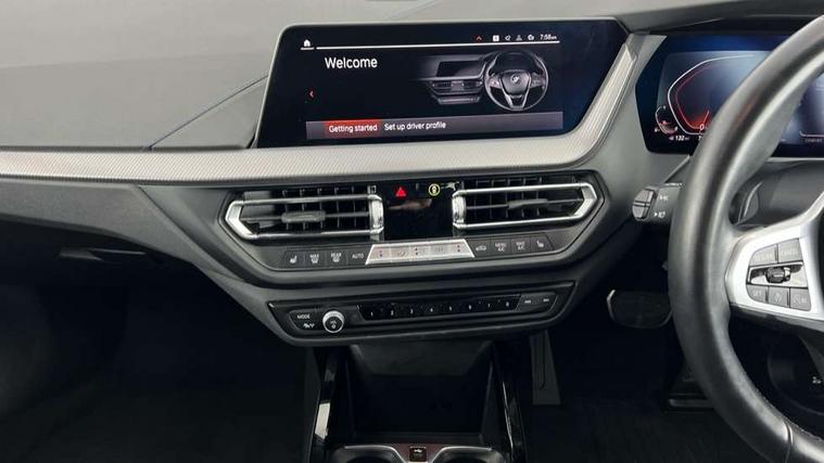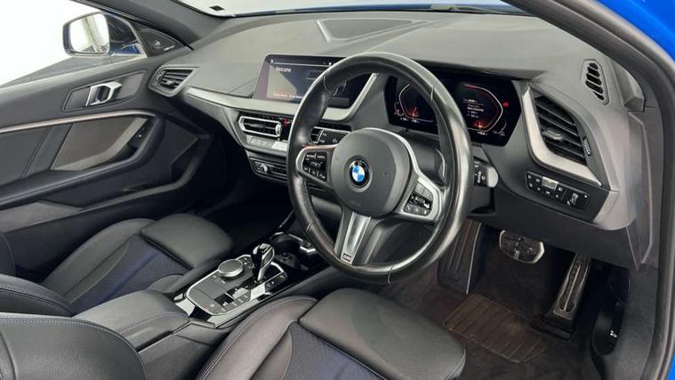 Active guard plus, Attentiveness assist, BMW ConnectedDrive online services, BMW Teleservices, Check Control warning system for monitoring of lights and door/luggage compartment open warning, Cruise control with speed limiter, Eco pro mode, Front axle single joint with specific axle kinematics to minimise drive influences on steering + provide increased rigidity agile driving behaviour, Integrated owners handbook, Lane departure warning system, Oil sensor for level and grade, On board computer, Optimum shift indicator, Personal Profile, Pull away assistant, Rigidly mounted rear subframe - Multi link construction with separate spring / damper configuration and excellent driving characteristics, Speed limit Info including no-overtaking indicator, Aluminium lightweight construction, Anti roll bar front and rear, Balancer shaft, Double VANOS twin scroll turbocharging system, Drive Performance Control, Electronic differential lock, High precision injection, M sport suspension, Petrol Particulate Filter, Twin tube gas filled shock absorbers with degressive characteristic curve, VALVETRONIC engine management, DAB Digital radio, Auto dimming rear view mirror, Automatic headlight beam throw control, Automatic windscreen wipers and automatic headlight, Body colour door handles, Body colour mirror caps, Body colour roof trims, Chrome 'M' logo side designation, Chrome exhaust twin tailpipes round 90mm in left, Chrome kidney grille frame with Satin Aluminium struts, Direction indicator side lights in exterior mirrors, Electrically adjustable exterior mirror with mirror adjustment switch on drivers armrest and aspheric on driver side, convex on passenger side, Fading support, Folding side mirrors with auto dimming/folding wing mirrors with auto dimming, Follow me home headlights, Front and rear bumper system with replaceable deformation elements, Front and rear electric windows with open and close fingertip control, anti trap facility and comfort closing, Front door sill finishers in black plastic with M designation in metallic look, Green tinted heat protection glazing, High gloss shadowline window frame, Recess cover mirror frames and B/C pillar embelisher trim, High level third brake light, Integrated front windscreen with washer jets, LED daytime running lights, LED eyebrow turn indicators, LED front fog lights, Lightweight engineering, Matt black air guide grilles, Matt black wheel arch trim, Model designation on electric bootlid, Nearside reverse light in rear light cluster, Preparation for high beam assistant, Rear fog lights, Rear side wing doors, Rear window wiper, Shark fin antenna, Trailer stabilisation logic, Visible VIN plate, Welcome lighting, 12V power socket in front centre console with blanking plug, 3 rear seat head restraints, 3 seat bench in 2nd row, 3 spoke sports leather steering wheel with black leather and stitching, pearl chrome decorative finish, specific M Badge, Anthracite headlining, Black boot net with lashing eyes, Cargo function on 2nd seat row, Child seat ISOFIX attachment for two outer rear seats and front passenger seat with anchorage points, Conditioned based service, Driver and front passenger backrest net on rear, Driver and front passenger seat heating, Driver side folding compartment in instrument panel, Folding rear clothes hook, Four grab handles integrated in roof lining, Front and rear door pockets with bottle holders, Front and rear side armrest integrated into door trim, Front armrest, Front sports seats, Glove compartment, Height adjustable front head restraints, Luggage compartment for bag hooks on left and right, foldable luggage compartment liner and four lashing eyelets, Manual adjust steering wheel, Multi-function controls for steering wheel, Single front passenger seat, Storage compartment in centre console, Storage compartment in luggage compartment, Stowage of the parcel shelf in luggage compartment trim, Sun visors with vanity mirrors and insert tab, Two front centre console cupholders, Two zone automatic air conditioning, Type C two USB ports in rear centre console, Velour floor mats, Additional interior lighting pack - 1 Series, BMW live cockpit professional pack- 1 Series, Connected pack professional - 1 Series, Interior lights pack - 1 Series, M Sport exterior styling aerodynamics pack - 1 Series, 2 tone horn, 3 point seatbelts on all seats, front pyrotechnic belt tensioners, stopper and belt force limiters, rear coded belt buckles, Airbags - Front driver/passenger, front and rear curtain head protection, front side, manual deactivation of front passenger airbag, Anti lock braking system (ABS) with brake assist, BMW emergency call, Brake drying, Braking readiness, Child proof locking system in rear door, City braking function, Comfort modes, Cornering brake control, Crash sensor activating of airbags, Unlocking doors, hazard warning lights, fuel cut off, interior lighting+activation of safety battery terminal clamp, Driver and front passenger seat belt security check, Dynamic stability control + (DSC+), Dynamic Traction Control - DTC, Electrically operated hand brake including automatic hold function, Front and rear disc brakes, Seatbelt warning, Side impact protection, Tyre pressure monitoring system, Warning triangle and first aid kit, Central locking switch for all doors, fuel filler cap and luggage compartment, Deadlocking function system to all doors, Drive away locking system on all doors and luggage compartment with de-activated in iDrive settings, Locking wheel bolts, Remote control with integrated key with High-gloss Black inlay and M designation and 1 button for open/ close lock, window, open luggage compartment, Start/stop button illuminated in centre console with keyless engine start and auto start stop deactivation button, Thatcham Cat.1 alarm and immobiliser, Wheel slip limitation close to the actuator (ARB), Contrast stitching on instrument panel, 18" Burnished M double spoke bi-colour alloy wheels finished in orbit grey - styl