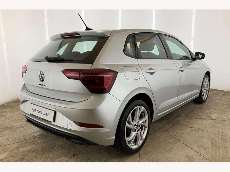 Adaptive cruise control without follow-to-stop and speed limiter, Bluetooth mobile phone interface, Digital Cockpit Pro with 10.25" Display, Driver alert system, Dynamic road sign display, Emergency call service, Power assisted speed sensitive steering, Preparation for We connect and We connect plus, Speedo and rev counter, electronic odometer, trip, service interval display and fuel gauge, Standard rear axle, Travel Assist - Lane keeping system and traffic jam assist, Travel assist including emergency assist, Trip computer, Warning signal and warning light for front and rear seatbelts not fastened, Washer fluid level indicator, Wireless app connect, Front wheel drive, Rear shock absorpion, Start-stop system with battery regeneration (recuperation - energy recovery during braking), DAB Digital radio, Diversity antenna for FM reception, Front and rear 6 speakers, Automatic dimming interior rear view mirror, Automatic headlights, Body colour door handles, Body coloured bumpers and radiator grille with chrome trims, Chrome plated radiator grille inserts, air vent surrounds and light switch surrounds, Electric front windows, Heat insulating glass in side and rear windows, Heat insulating glass windscreen, LED separate daytime running lights with coming/leaving home function, Power folding adjustable/heated exterior mirrors and front passenger exterior mirror lowering function, Rain sensor, Rear electric windows, Rear fog light, Rear side wing doors, Rear windscreen washer and wiper with interval delay, Third brake light, 12V power socket in centre console, 2 USB-C ports in the front, 2 USB-C charging sockets on the center console in the rear, 3 rear head restraints, 60/40 split folding rear seat and rear seat bench not split, Air care climatronic air conditoning system with active combination filter and 2-zone temperature control, Ambient lighting, Ceramique headliner, Door and side trim panel, Driver and front passenger seat height adjustment, Driver/passenger sunvisors with illuminated vanity mirrors, Front + rear carpet mats, Front centre armrest, Front footwell illumination, Front seat backrest storage pockets, Front sports comfort seats, Handbrake lever handle in leather, Isofix child seat preparation easy-fit (for two outer rear seats, and front passenger seat) compatible with I-size, Leather trimmed gear knob, LED interior light with switch off delay and dimmer, 2 reading lights front and rear, Luggage compartment cover, Luggage compartment floor, Luggage compartment lighting, Lumbar adjustment for front seats, Multifunction steering wheel, Single front passenger seat, Standard pedal cluster, IQ LED matrix headlights pack - Polo, Light and vision pack - Polo, 3 point height adj front seatbelts + pretensioners, 3x3 point rear seatbelts, ABS, Driver and front passenger airbag with front passenger airbag deactivation, Drivers and front passengers safety optimised head restraints, ESC (Electronic stability control) + EDL (Electronic Differntial lock) and ASR (Traction control), Extended and predictive pedestrian/ cyclist protection, Front curtain and side airbags with center airbag, Front disc brakes, Hill hold control, Manual child lock in rear doors, Rear drum brakes, Single tone horn, Tyre pressure loss indicator, Alarm with interior protection, Anti-theft alarm system with interior monitoring, backup horn, and towing protection, Anti-theft wheel bolts, Electronic engine immobiliser, Chrome applications on rotary light, mirror adjustment, window regulator switches, outlet with frame in black, Deep iron gloss decorative inserts in dash and front door panels, Low rolling resistance tyres,