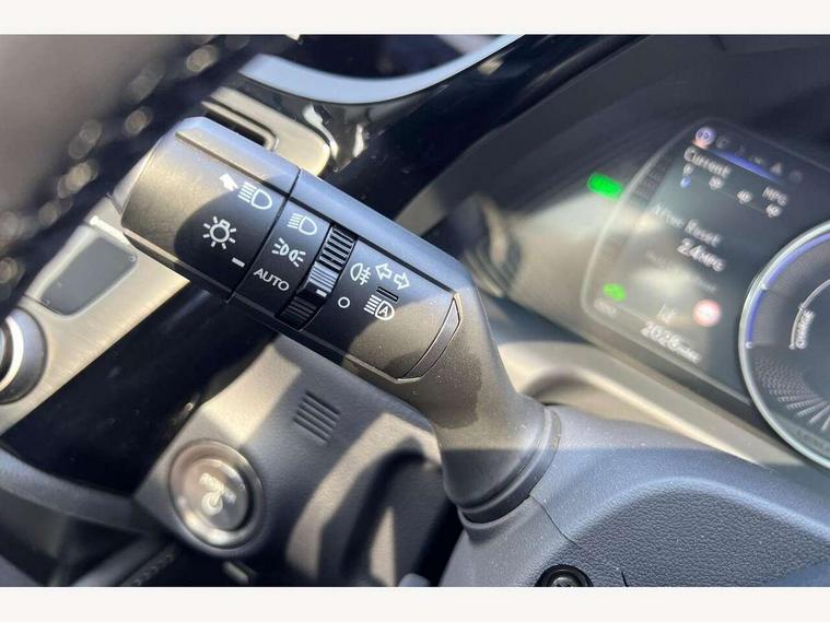 2.5 Lexus safety systems+, 3 driving modes Normal, Eco, Sport, Active Noise Control, Analogue clock with LED illumination, Auto glide control Lexus first - AGC, Blind spot monitoring (BSM) with Rear cross traffic alert and auto brake (RCTAB), Bluetooth connectivity, Drive mode select controller, Dynamic radar cruise control, Emergency services call system, EPS with speed sensitive steering, Intelligent parking sensors, Lane change flasher function, Lane tracking assist - LTA, Lexus link connected services, Lexus Link Pro with 12.3" touchscreen, Lexus navigation system, Pre-collision system (PCS), Push button start, Rev counter, Road sign assist - RSA, Service indicator, Vehicle Stability Control - VSC and drive mode controls on Instrument brinicle, Wireless Apple CarPlay/Android Auto, Wireless Smartphone charger, VDIM, 10 speaker pioneer audio with single CD, DAB, aux, shark fin antenna + Bluetooth system, Multimedia system with remote touch pad, Acoustic front windscreen, Aluminium front scuff plates with Lexus logo, Auto dimming interior rear view mirror, Auto headlight levelling, Auto headlights, Bi LED headlight with Auto high beam, Cornering light, Folding heated auto dimming wide angle door mirrors, Follow me home headlights, Front and rear one-touch automatic power windows equipped with a jam protection, Front grille, Front windscreen de-icer, Green UV glass with water repellent coating on front side windows, Headlight cleaners, LED daytime running lights, LED rear lights, LED third brake light, Privacy glass, Rain sensing windscreen wipers, Rear boot, Rear side wing doors, Rear spoiler for (CO2 saving), Resin rear scuff plates, Sunroof, 12V socket in front and rear, 2 cup holders in the front and rear centre console, 2 USB ports type A and C in front centre console, 2 USB ports type C for charging in rear of centre console, 2 USB ports type C inside console box, 2 x fixed shopping bag hooks in boot, 2 zone climate control with climate concierge and nanoe ion generator, 3 spoke leather heated steering wheel with power adjust, 4 x tie down hooks in the boot, Card holder installed in driver and passengers sun visors, Easy access system with tilt + telescopic, Fixed rear seat with trunk through, Front and rear door pockets, Front and rear head restraints, Front centre armrest with storage, Heated front seats with 8 way electric adjustment and 2 way power lumbar support, LED ambient lighting, Luggage storage tray under deck board to right side, Map pockets on front seats, Paddle shift controls, Rear armrest with 2 cup holders and storage, Self charging hybrid, Single front passenger seat, Smooth leather shift knob, Tahara leather upholstery, Textile carpet mats, Whiplash injury lessening seats, 10 airbags - front, side, knee, front and rear curtain airbag, 2 x Isofix child rear seat restraints, 3 point front seat belts, Active Traction Control (TRC), Adjustable seat belt anchor points, Anti-lock braking system (ABS), Child locks on rear doors, Electronic parking brake, ELR (Emergency locking retractor), Fasten seatbelt reminder, Front and rear outer seat belt pre-tensioners, Front passenger's airbag cut off device, HAC (Hill start assist control) with brake hold, Power assisted brakes, Seat belt force limiter, Three 3 point rear seatbelts, Tyre pressure monitoring system, Alarm, Central locking, Immobiliser, Locking wheel nuts, Smart entry + Smart start, Speed sensitive auto door locking, Two motion door lock with double lock, VIN Window etching, Black grain inlay, 18" Alloy wheels, Tyre repair kit,