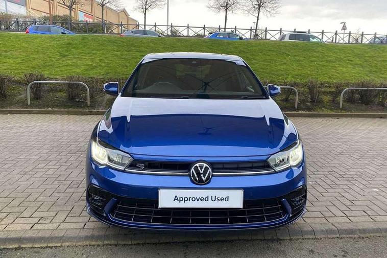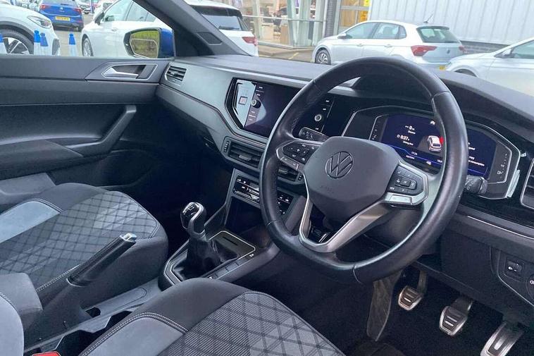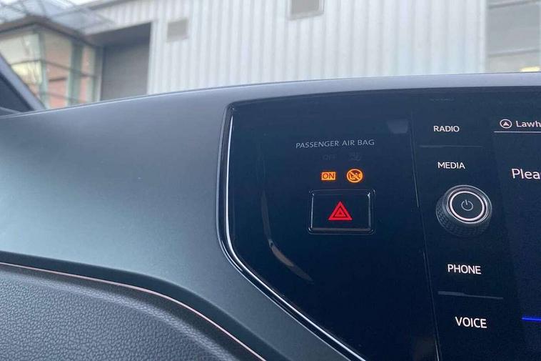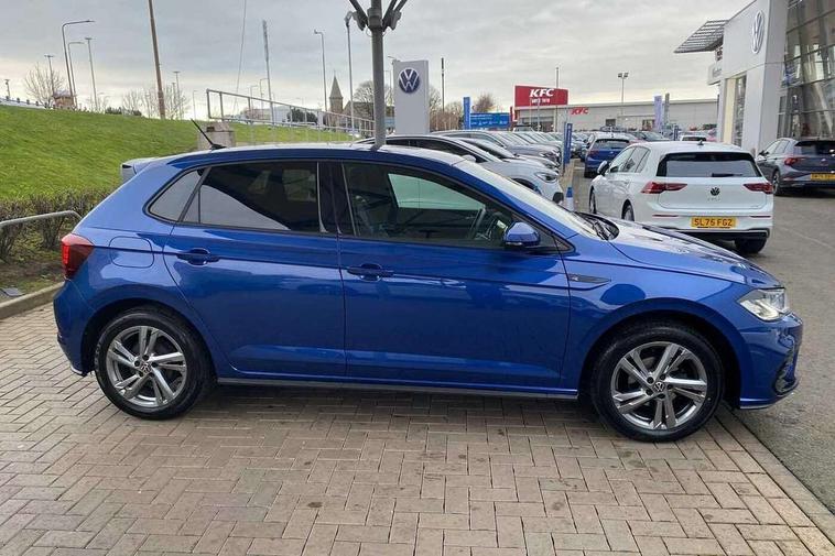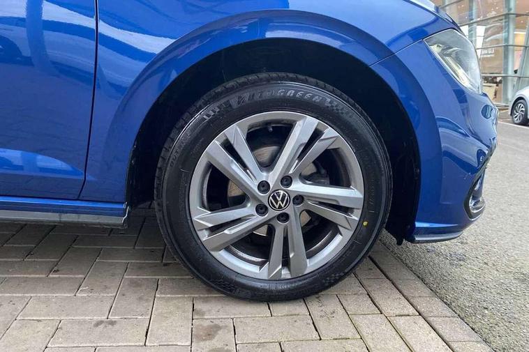 Adaptive cruise control without follow-to-stop and speed limiter, Bluetooth mobile phone interface, Digital Cockpit Pro with 10.25" Display, Driver alert system, Dynamic road sign display, Emergency call service, Power assisted speed sensitive steering, Preparation for We connect and We connect plus, Speedo and rev counter, electronic odometer, trip, service interval display and fuel gauge, Standard rear axle, Travel Assist - Lane keeping system and traffic jam assist, Travel assist including emergency assist, Trip computer, Warning signal and warning light for front and rear seatbelts not fastened, Washer fluid level indicator, Wireless app connect, Front wheel drive, Rear shock absorpion, Start-stop system with battery regeneration (recuperation - energy recovery during braking), DAB Digital radio, Diversity antenna for FM reception, Front and rear 6 speakers, Body colour bumpers, Body colour door handles, Electric front windows, Front scuff plates with R-Line logo, Heat insulating darkened glass in side and rear windows, Heat insulating glass windscreen, Power folding adjustable/heated exterior mirrors and front passenger exterior mirror lowering function, Rear electric windows, Rear fog light, Rear side wing doors, Rear windscreen washer and wiper with interval delay, Third brake light, 12V power socket in centre console, 2 USB-C ports in the front, 2 USB-C charging sockets on the center console in the rear, 3 rear head restraints, 60/40 split folding rear seat and rear seat bench not split, Air care climatronic air conditoning system with active combination filter and 2-zone temperature control, Black roof lining, Chrome plated radiator grille inserts, air vent surrounds and light switch surrounds, Door and side trim panel, Driver and front passenger seat height adjustment, Driver/passenger sunvisors with illuminated vanity mirrors, Front + rear carpet mats in recycled material, Front centre armrest, Front footwell illumination, Front seat backrest storage pockets, Front sports comfort seats, Handbrake lever handle in leather, Headliner in recycled material, Isofix child seat preparation easy-fit (for two outer rear seats, and front passenger seat) compatible with I-size, Karoso artvelours cloth upholstery, Leather trimmed gear knob, LED interior light with switch off delay and dimmer, 2 reading lights front and rear, Luggage compartment cover, Luggage compartment floor, Luggage compartment lighting, Lumbar adjustment for front seats, Multifunction steering wheel, Single front passenger seat, Stainless steel pedals, Standard pedal cluster, Light and sight pack - Polo R-Line/Black Edition, 3 point height adj front seatbelts + pretensioners, 3x3 point rear seatbelts, ABS, Driver and front passenger airbag with front passenger airbag deactivation, Drivers and front passengers safety optimised head restraints, ESC (Electronic stability control) + EDL (Electronic Differntial lock) and ASR (Traction control), Extended and predictive pedestrian/ cyclist protection, Front curtain and side airbags with center airbag, Hill hold control, Manual child lock in rear doors, Single tone horn, Tyre pressure loss indicator, Alarm with interior protection, Anti-theft alarm system with interior monitoring, backup horn, and towing protection, Anti-theft wheel bolts, Electronic engine immobiliser, Chrome applications on rotary light, mirror adjustment, window regulator switches, outlet with frame in black, Dark grey anodised matt decorative inserts in dash and front door panels, Low rolling resistance tyres,