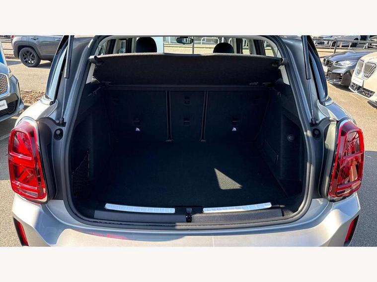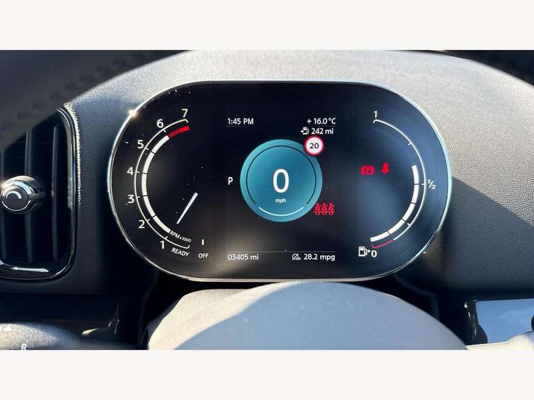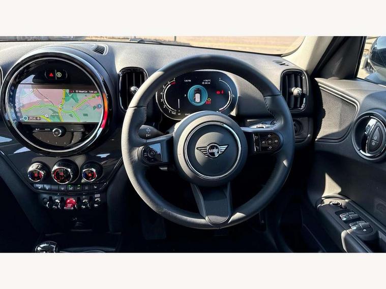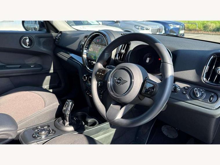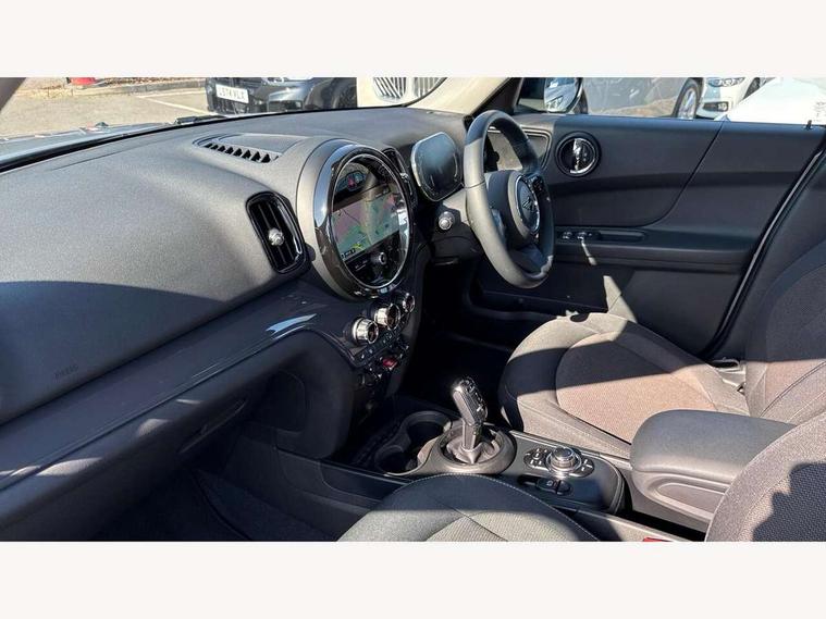 Active Guard incl speed limiting and lane departure functions with auto steering, and front collision warning with brake intervention, Automatic start/stop function with brake energy recuperation, Compatible mobile phone bluetooth with audio streaming, Cruise control with brake assist, Electro-mechanical speed dependant steering assistance, Instrument cluster, Mini E-call, On board computer, Rear parking distance control, 51 Litre fuel tank, Double Vanos system, Fully variable valve control, High precision injection, Performance Control, Steptronic transmission with double clutch, FM tuner and DAB digital radio, 3rd brake light, Body colour fuel filler cap, Day time driving lights, Door sill strips, Dynamic brake lights, Electric windows, Heated rear window, Heated windscreen washer jets, LED fog lights, LED Headlights, Left exhaust tailpipe with chrome finisher, Model logo, Model logo on Tailgate, Radiator grille, Rain sensor with auto headlights, Rear fog lights, Rear side wing doors, Rear window wiper, Side scuttle panel with integrated indicator, Split rear doors, Sun/heat protection glass, White indicator lenses, 12V socket in centre console, 3 seat bench in 2nd row, 3 spoke sport leather steering wheel + limiter function and audio controls, 360L luggage compartment capacity, 4 lashing eyes in luggage compartment, 40:20:40 split folding rear seats, Chrome interior highlights, Colour line - Carbon black, Cupholders, English handbook, Floor mats, Front headrests, Glove compartment, Headliner with grab handles and clothes hooks, Height and length steering column adjustment, Interior lighting with 12 basic colours selectable via toggle switch in roof, Isofix rear child seat preparation, Leather gearshift lever and handbrake gaiters, LED reading lights, vanity mirror lights, front foot well light and spotlight on front seats, Manual air conditioning, Mechanical seat adjustment, driver seat height adjust, forward/back and front seats backrest, Multifunction steering wheel, Passenger seat height adjuster, Rear headrests, Single front passenger seat, Storage compartments in doors, Sunvisors with vanity mirrors, Excitement pack - Countryman, Navigation pack - Countryman, 2 tone horn, 3 point seatbelts on all seats, 6 Airbags - front, side, head and seat belt tensioners, Anti-lock braking system (ABS), DSC - Dynamic Stability Control, Electronic handbrake, Front and rear disc brakes, Hill start assist, Manual rear child locks, Tyre pressure monitoring system, Alarm system with tilt sensor, monitoring doors, bonnet interior and tailgate, Auto drive away locking, Deadlocking function, Electronic vehicle immobiliser, Locking wheel bolts, Start/stop toggle with keyless go, Tool kit,