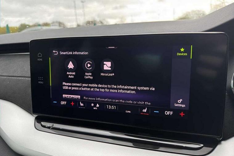 1x USB Type C port in rear view mirror (charging only), 2x USB Type C ports in rear of front centre armrest (charging only), Bluetooth system, Boot lid release from inside vehicle (electrically), Columbus satellite navigation with 10" touchscreen display, Driver fatigue sensor, eCall emergency system, Electro-mechanical power steering, Front and rear parking sensors with manoeuvre assist, Front assist system, Speed limiter, Turn Assist, Virtual Cockpit - 10.25" digital display, Voice control system, Wireless SmartLink for Apple Car Play, 2x USB Type C ports (for charging and data transfer), 8 Speakers, DAB Digital radio, Aero front windscreen wipers with intermittent function, Auto dimming rear view mirror, Body colour door mirrors and handles, Chrome grille surround, Chrome strip in lower front bumper, Chrome window surround, Electric front and rear windows, Headlight washers, Heated rear windscreen, High level third brake light, Ice scraper in fuel cap, Rain and light sensors, Rear fog light on one side, Rear privacy glass, Rear side wing doors, 3 rear headrests, 3 seat bench in 2nd row, 4 foldable roof handles, Chrome inner door handles, Front centre armrest, Front head restraints, Grey headlining, Heated front seats, Illuminated glovebox, Leather trimmed gearshift lever, Luggage compartment lighting x1 light, Microsuede cloth upholstery, Parcel shelf - folding, Satin black microsuede with grey stitching in padded dash panel, Single front passenger seat, Sunglasses storage, Textile floor mat set, Ticket holder, Two-spoke leather multi function steering wheel with paddles, Umbrella in door panel, Unsplit rear bench seat and split folding backrest, 3 point front/outer rear seatbelts+pre-tensioners, Alarm with interior monitoring, tilt sensor and back up horn, Automatic door unlocking in case of crash, Automatic fuel cut off in case of crash, Automatic warning lights in case of emergency braking, Curtain airbags and front side airbags, Driver and front passenger airbags, Drivers knee airbag, Electronic parking brake, ESC including ABS, EBV, MSR, ASR, EDS, HBA, DSR, Front central airbag, Hill hold control, Hill start assist, ISOFIX on front passenger seat and outer rear seats, Manual rear child locks, Passenger airbag deactivate switch, Pro active services, Rear disc brakes, Two tone horn, Tyre pressure monitor, Visual and acoustic seat belt reminder, Warning reflectors in front door, Door locks with immobiliser, Keyless entry and start/stop including rear doors, Remote central locking, Chrome air vent surrounds, Silver squares haptik decorative inserts,