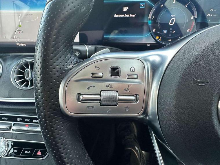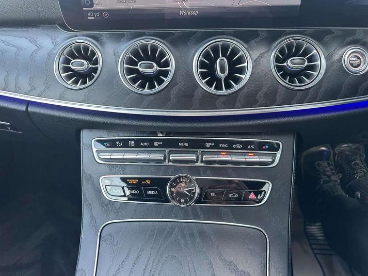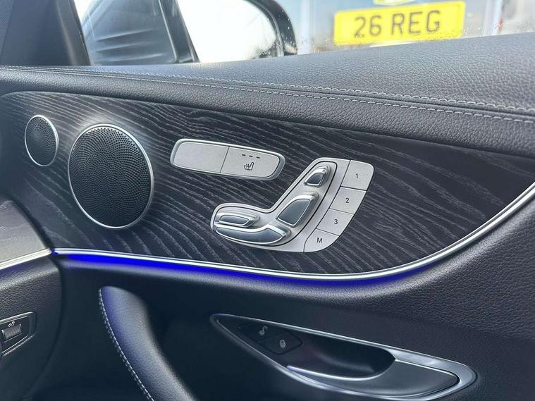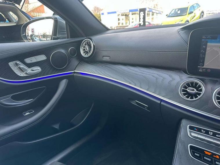 Active parking assist including front and rear parking sensors, Analogue clock, Attention assist, Blind spot assist, Bluetooth interface for hands free telephone, Brake wear warning display, Cockpit display 12.3" widescreen digital instrument cluster, Collision prevention assist plus, Direct steer speed sensitive steering, Direct steering, DYNAMIC SELECT with a choice of driving modes (ECO, Comfort, Sport, Sport+ and Individual), ECO start/stop function, Engine start/stop button, High resolution 12.3" multimedia colour display, Mercedes connect me, Multi function trip computer, Outside temperature display, Remote boot release, Reversing camera, SD card based satellite navigation system, Service indicator (ASSYST), Status display for rear seat belts in instrument cluster, Touchpad with control wheel, 25 litre AdBlue tank, 66 litre fuel tank, Agility control sports suspension with selective damping system, Diesel particulate filter, Incorrect fuelling protection, 2 USB ports in centre console, Audio 20 with USB, touchpad and control wheel with Media Interface with Bluetooth interface and hands-free function, DAB Digital radio, Adaptive brake lights, AMG bodystyling front and rear aprons, side skirts, AMG boot lid spoiler in body colour, AMG front, rear apron and side skirts, Body colour door handles, Body coloured bumpers, Electric windows with one touch opening/closing and obstruction sensors, Exterior mirrors heated and electronically adjustable, Illuminated front door sill panels with Mercedes-Benz lettering, LED high performance headlamps with integrated LED daytime running lights, Magic Vision Control heated windscreen wiper system, Pre-installation for roof rail systems, Privacy glass Includes rear side windows and rear windscreen, Rain sensing windscreen wipers, Rear LED lights, Top surround of side windows in polished aluminium, Visible twin pipe exhaust system integrated into bumper, 3-spoke flat bottom multifunction AMG steering wheel with Touch Control buttons, trimmed in black nappa leather, 4 way adjustable front head restraints and 2 way rear head restraints, 40:20:40 split folding rear seats, Artico man-made leather upper dashboard and beltlines with contrast stitching, Automatic child seat recognition sensor, Automatic two zone climate control, Bag hook in luggage compartment, Belt feeder driver and front passenger seat belt automatically positioned within easier reach, Black roof lining, Central stowage compartment with 12 V socket in centre console, Centre armrest and door handle illumination, Chrome door pins, Easy entry seats, Floor mats with AMG lettering, Front and rear door pockets, Front centre armrest with stowage compartment, Front footwell lights, Glasses compartment in overhead control panel, Glove compartment - lockable, air conditioned and illuminated, Heated front seats, Interior lighting - 64 colour Ambient lighting, Interior rear light/integral reading lights, Isofix rear child seat fastenings, Multi contour front sports seats, Multi function steering wheel, Partial electric front seats/backrest/height adjust, Rear centre armrest with 2 cupholders + storage, Seat occupancy sensor for front passenger seat, Sports pedals in brushed stainless steel with black rubber studs, Steering column manually adjustable for height and reach, Steering wheel gearshift paddles, Steering wheel touch control buttons for audio and onboard settings, Storage net in luggage compartment, Sunvisors with illuminated vanity mirrors, Twin front cupholders, Mirror pack - E Class, Seat comfort pack - E Class, Stowage pack - E Class, Active bonnet, Active brake assist, Adaptive brake system, Adaptive driver and front passenger airbags, Anti-lock braking system (ABS), Crash sensor (auto door unlocking), Drivers knee airbag, Electric parking brake, Electronic Stability Programme, Front and rear window airbags, Front seatbelt pretensioners, Front side airbags, Head airbags, Hill hold function, Perforated front brake discs with "Mercedes-Benz" lettering, Seatbelt warning, Three point rear seat belts, Tyre pressure monitoring system, Warning triangle and first aid kit, Alarm system/interior protection/immobiliser, Central locking with interior switch, automatic locking and crash sensor with emergency opening function, Chrome surround in electric key, Keyless entry go starting function, Black open pore ash wood, Open pore black ash wood centre console, Run flat tyres,