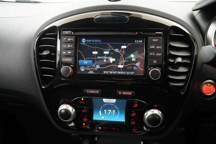 Bluetooth system, Colour rear view camera, Cruise control + speed limiter, Electric speed sensitive power steering, Nissan connect sat nav system, Push button starter, Service interval indicator, Trip computer, 6 speakers, Aux input, DAB Digital radio, Steering wheel mounted audio controls, Stereo radio/CD player and MP3 facility, USB port, 2 speed wipers+variable intermittent wipe, Automatic headlights, Body colour bumpers, Body colour door handles, Electric door mirrors, Electric folding door mirrors, Electric front/rear windows, Front fog lights, Heated door mirrors, LED daytime running lights, Privacy glass, Rain sensor, Rear wiper, 12V socket, 60/40 split folding rear seat, Artificial leather/suede upholstery, Climate control, Front armrest, Front cupholders x 2, Front door pockets with bottle holders, Front head restraints, Front seat belt pre-tensioners with load limiters, Gear shift indicator, Glovebox, Height adjustable driver's seat, Internal chrome door handles, Isofix child seat preparation, Leather steering wheel and gear knob, Luggage area under floor storage box, Map reading lamp, Passenger seat back pocket, Pollen filter, Rear headrests, Rear tonneau cover integrated into tailgate, Sports seats, Steering wheel rake adjustment, ABS + EBD + EBA, Child locks on rear doors, Driver and passenger airbags, Driver and passenger side airbags, ESP + traction control, Front and rear curtain airbags, Height adjustable front seatbelts, Passenger airbag deactivate switch, Three 3 point rear seatbelts, Tyre pressure monitoring system, VDC Dynamic Vehicle Control, Warning triangle and first aid kit, Alarm, Immobiliser, Intelligent Key, Remote central locking, 17" Sport alloy wheels, Tyre repair kit,