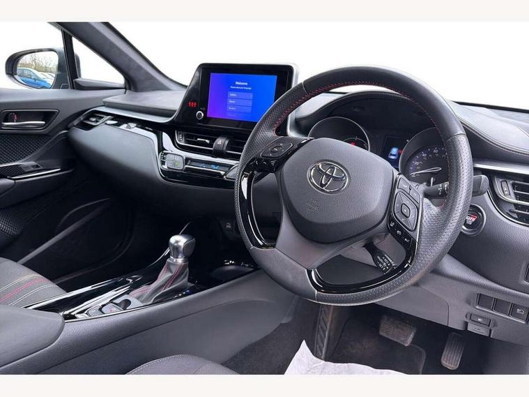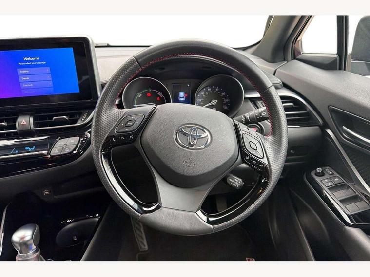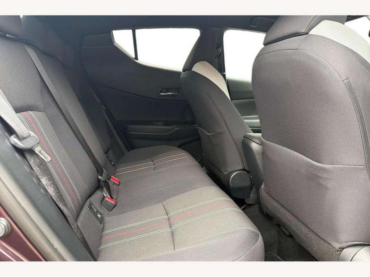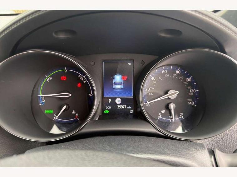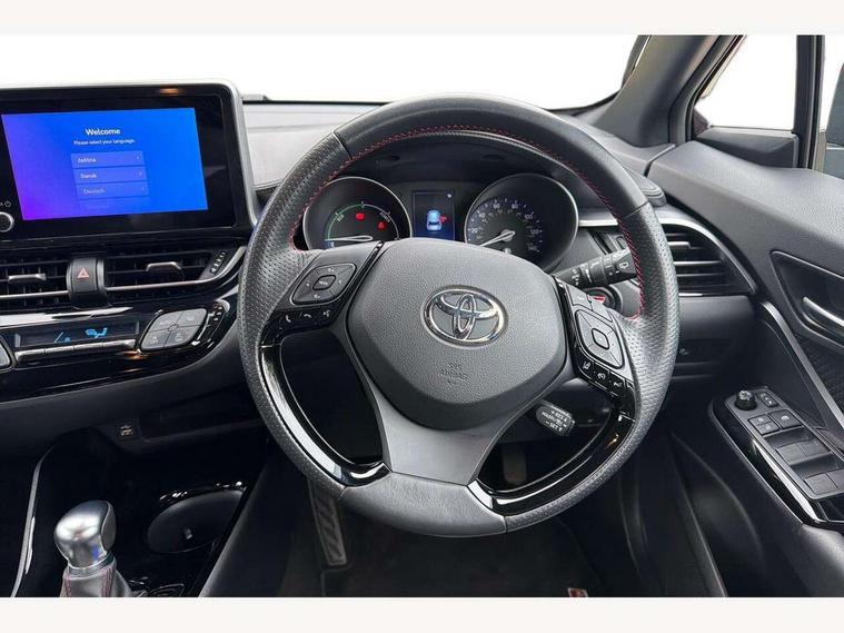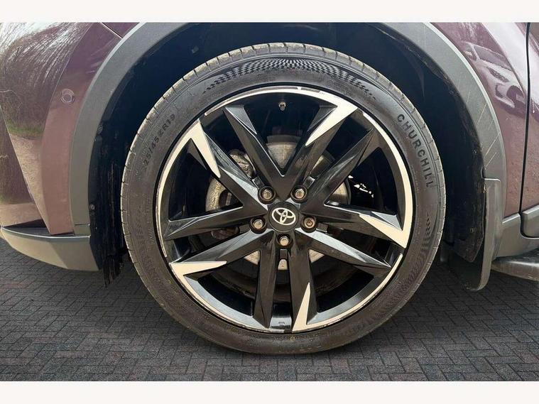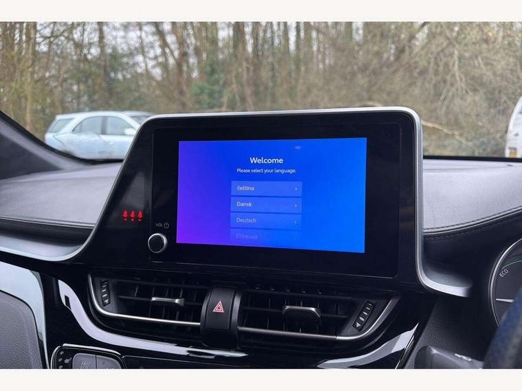 4.2" coloured TFT screen for multi-information display, Adaptive cruise control, Apple car play and Android auto, Bluetooth connectivity, E-call, Electric power steering, Hybrid system indicator, Lane departure alert with steering control, Lane trace assist, Push button tailgate release, Remote boot door release in cabin, Remote boot door release in key, Reversing camera, Road sign assist - RSA, Simple Intelligent parking assist, Smart voice assist, Touch 2 Go navigation system, Trip computer, Voice recognition, Wireless smartphone integration, Vehicle Stability Control (VSC), 6 speakers, AM/FM radio, DAB Radio (Digital Audio Broadcasting), Toyota touch 2 multimedia system with 8" display, USB connector, Wi-fi connectivity, Adaptive front light system, Adaptive LED Headlights, Anti-jam protection on power windows, Auto high beam, Auto up and down function on all power windows, Automatic headlight levelling, Automatic headlights, Automatic headlights cut-off, Black and body coloured rear bumper, Black upper front grille, Body colour door handles, Body colour door mirrors, Body coloured front bumper, Boot door release with push button, Chrome front lower bumper, Electric heated door mirrors, Follow me home headlights, Front and rear power windows, Front spoiler lip in black, Headlight cut off reminder, Honeycomb lower front grille, LED daytime running lights, LED fog lights, LED front light guide, LED High mounted stop light, LED rear brake lights, LED rear combination lights, Noise reduction layer on front windows and windscreen, Power adjustable door mirrors, Privacy glass, Rain sensor, Rear sequential indicators, Rear side wing doors, Rear spoiler, Rear tailgate, Rear window defogger, Rear window wiper, Shark fin antenna, UV-filter on driver and passenger windows, UV-filter on rear windows, Variable front intermittent wipers, 12v power outlet - front, 3 rear headrests, 3 seat bench in 2nd row, 3 spoke perforated leather steering wheel, 60/40 split folding rear seat, Adjustable rear headrests, Adjustable speed limiter switch on steering wheel, Assist grips front and centre pillar, Audio and telephone switches on steering wheel, Black front door assist grips, Blue ambient lighting on front cup holders, Blue ambient lighting on front doors, Boot light, Chrome interior door handles, Cloth upholstery, Driver and front passenger personal light, Driver and front passenger Whiplash Injury Lessening seats, Driver and passenger seatback pockets, Dual zone automatic air conditioning, Floor mats, Front cupholders, Front head restraints, Front sports seats, Glovebox with internal light, Hard tonneau cover, Heated driver and front passenger seats, Hooks for luggage holding net, Humidifying Nanoe air purifier, Illuminated entry system, Isofix attachments on outer rear seats, Leather gearshift, Light on driver sun visor, Light on passenger sun visor, Manual telescopic steering wheel, Manual tilt steering wheel, Manually height adjustable driver seat, Manually height adjustable front passenger seat, Manually reclining driver seat, Manually reclining front passenger seat, Manually sliding driver seat, Manually sliding front passenger seat, Microphone on front personal light, Mirror on driver sun visor, Mirror on passenger sun visor, Multimedia switches on steering wheel, Pollen filter, Power adjustable lumbar support on driver seat, Shopping bag hooks, Single front passenger seat, Slow opening on lower glovebox, Voice recognition switch on steering wheel, Tech with parking sensor pack - C-HR, 16 Disk front wheel brake, 3x3 point rear seatbelts, ABS+EBD+Brake assist, Electronic parking brake, Front and rear seatbelt reminder, Front passenger airbag on/off switch, Hill start assist control (HAC), Pre collision system with pedestrian detection, Pre-tensioners and force limiters, Rear door child safety locks, SRS Airbags - Driver + Front passenger, front side, front and rear curtain and driver's knee airbags, Toyota safety sense, Tyre pressure monitoring system, Tyre pressure warning system, Acoustic vehicle alert system (AVAS), Glass-breaking alarm sensors, Immobiliser, Intrusion alarm, Intrusion sensor, Motion sensor alarm, Power passenger window lock, Remote central locking, Black lower dashboard, Black upper dashboard, Piano black console, Silver deco line on upper dashboard, 19" Black machined alloy wheels, Tyre repair kit,