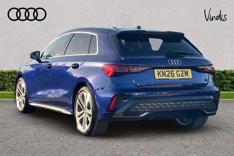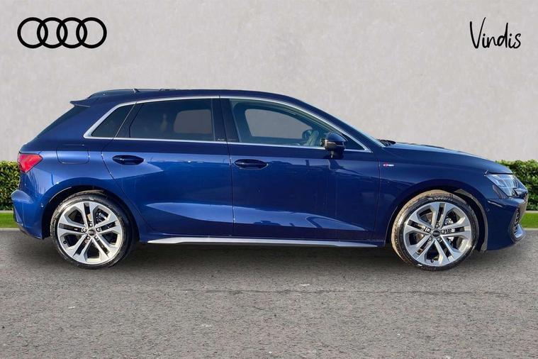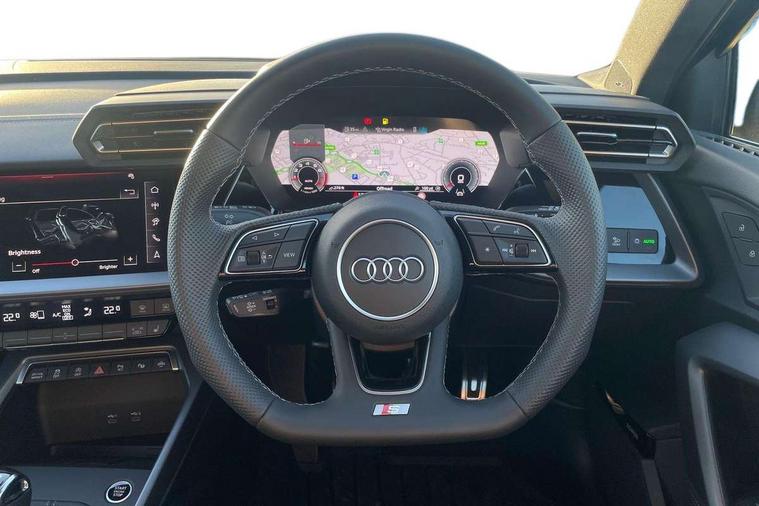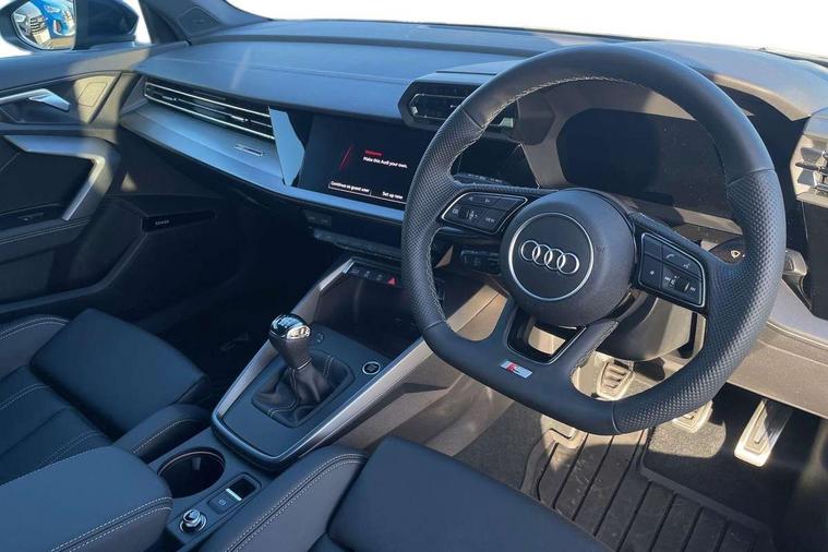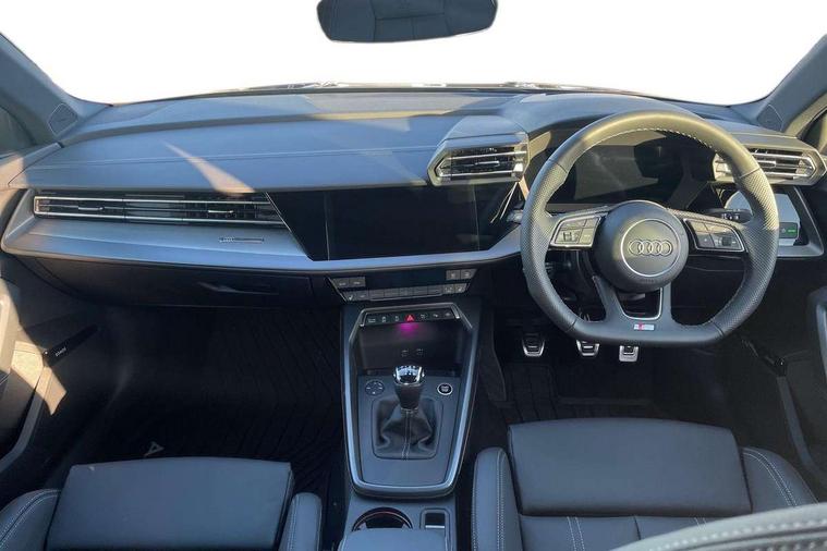Adaptive cruise control (ACC), Adjustable speed limiter, Audi drive select (Auto, Comfort, Dynamic, Efficiency and Individual), Audi virtual cockpit plus - 12.3" full HD resolution dynamic digital instrument cluster, Automatic start/stop system with recuperation, Bluetooth interface, Camera based traffic sign recognition, Collision avoidance assistant, Driver attention and fatigue detection, e-Call (emergency call), Electromechanical power speed sensitive steering, Intersection assist, Lane departure warning system, MMI Navigation Plus with high resolution 10.1" colour touch screen display, Park Assist with parking system Plus, Reversing camera, Service indicator, Smartphone interface with app store includes wireless Apple carplay, Android auto and Amazon alexa integration, Trip computer, Voice control system with natural language interaction, Sports suspension, Audi Phonebox light with wireless charging, Audi sound system - 10 loudspeakers including centre loudspeaker and subwoofer, DAB Digital radio, USB ports with charging function in the rear, Acoustic glass windscreen, All weather light, Aluminium window trim, Auto dimming frameless rear view mirror, Automatic dynamic range control, Body colour exterior mirrors, Dipped beam, main beam, position light and turning light, Electrically adjustable/heated/folding/auto dimming door mirrors with integrated LED indications + kerb view function for passenger side, Exterior model badging, Front and rear side air inlets in grained matt black with dark liquid chrome frame, Front electric windows, Front radiator grill in high gloss dark chrome, Heat insulating glass windscreen, Illuminated door sills with aluminium inserts at the front with S logo, Intersection light, Invisible tailpipe, LED 3rd brake light, LED brake lights, LED daytime running x3, LED headlights with LED rear lights and dynamic rear indicators, LED rear number plate lights, LED reverse light, LED tail lights, Light and rain sensors, Manoeuvring light, Motorway light, Privacy glass - dark tinted rear window, rear door and side windows, Rear diffuser and grill in grained matt black with inlay in dark liquid chrome, Rear electric windows, Rear side wing doors, Rear wiper, S line bumpers, S roof spoiler, Side S line emblems on front wings, Side sill trim in dark liquid chrome, Static cornering light, 12V socket and storage compartment in front centre console, 3 seat bench in 2nd row, 3 spoke flat bottomed multi-function leather sport steering wheel, 3-zone deluxe automatic air conditioning, 4 way electrically adjustable lumbar support for driver and front passenger, 40/20/40 split folding rear seat bench, Black cloth headlining, Black front and rear floor mats, Front and rear centre armrest in artificial leather with contrasting stitching on armrests and instrument panel, Front and rear headrests, Heated front seats, Height and reach adjustable steering wheel, i-Size child seat mounting on the front passenger side and outer rear seats, i-Size and top tether on the outer rear seats, Manual boot compartment lid, Manually adjustable front seats, Rear centre armrest with cupholder, S badging on the steering wheel, Seat side bolsters, Single front passenger seat, Stainless steel pedals and front footrest in black, Twin leather upholstery with front sports seats S embossed logo, Aluminium interior elements pack - A3, Multi-coloured LED interior lighting package with Multi-coloured contour lighting of instrument panel - A3, 3x3 point rear seat belts, Driver and front passenger airbag with passenger airbag deactivation, Electronic Stabilisation Control (ESC) including ABS, ASR and EDL, First aid kit with warning triangle and 2 safety vests, Front side airbags with head airbags and interaction airbag, Hill hold assist, Pre-sense front with pedestrian and cyclist detection, Seatbelt monitoring, Tyre pressure loss indicator, Anti theft alarm, Anti-theft wheel bolts, Electronically operated child locks, Immobiliser, Black dashboard, Inlay in dark aluminium spectrum,