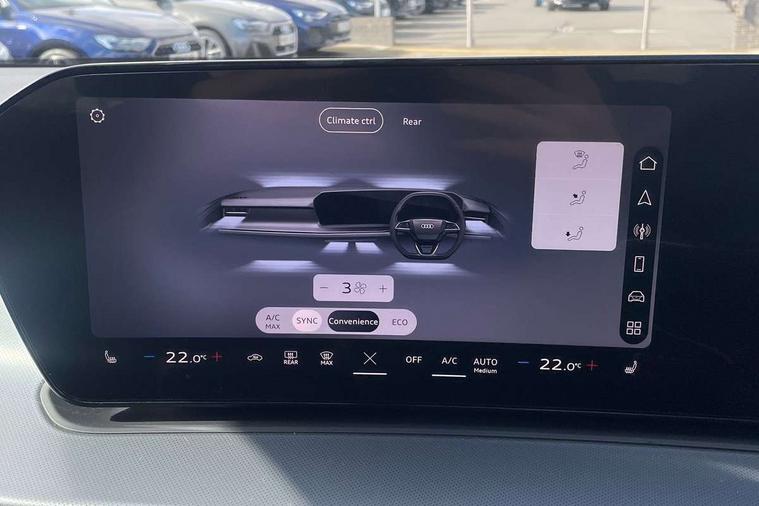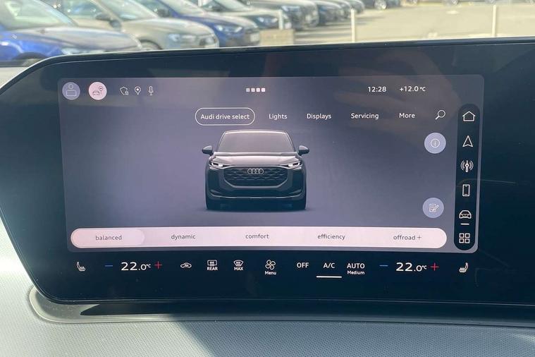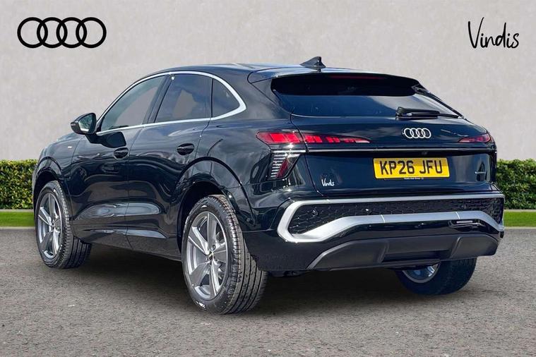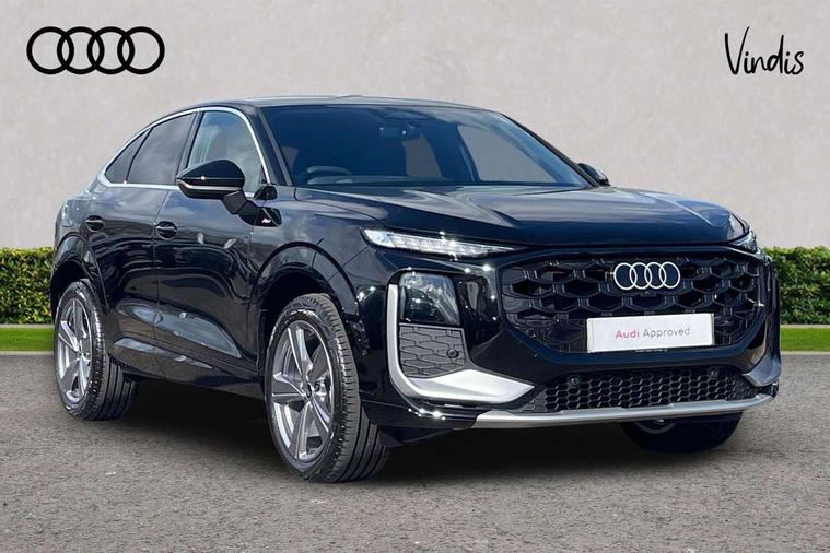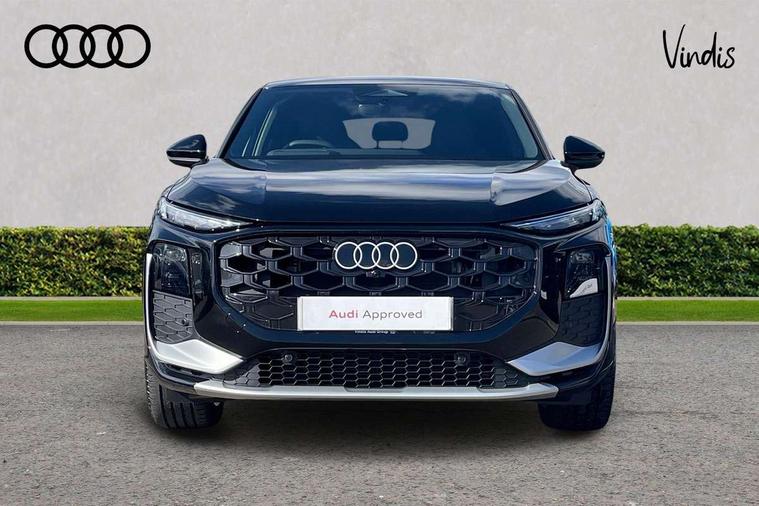 Adaptive cruise control, Audi connect emergency call and service, Audi connect remote and controls, Audi drive select (Balanced/individual, efficiency, comfort, dynamic and Offroad+), Audi virtual cockpit plus - 11.9" display, Bluetooth interface, Camera based traffic sign recognition, Driver attention and fatigue monitor with driver monitoring, Front cross traffic assist, Lane departure warning with emergency assist, Panoramic curved display with 12.8" MMI navigation plus and MMI touch, Park assist plus with parking system and 360 display, Phonebox light with wireless charging, Reversing camera, Smartphone interface includes wireless Apple carplay/Android Auto, Start/stop system, Swerve assist and turn assist, Traffic sign based speed limiter, Voice control system with natural language interaction, Comfort suspension, Petrol Particulate Filter, 2 USB-C ports with charge and data functions, Audi sound system with 10 loudspeakers, subwoofer, 8 channel amplifier with 260 watts, DAB digital radio module, Acoustic glass for front door windows, Acoustic windscreen, Aluminium window trim, Audi Q3 sportback lettering on the B-pillars, Auto dimming door mirrors, Auto dimming rear view mirror, Body colour door mirrors, Contrasting finish in volcano grey, Electrically folding, adjustable and heated door mirrors with integrated LED side indicators and kerb view function for passenger side, Full paint finish, Illuminated door sills with aluminium inserts at the front with S logo, LED daytime running lights, LED headlights plus with LED rear lights pro with continous light strip, illuminated Audi rings, rear, LED third brake light, Loading sill protector in stainless steel, Main beam assist, Privacy glass - dark tinted rear window, rear door and side windows, Projection light in the exterior mirrors - Projects a graphic element onto the ground, Q3 badging on the rear, Rain and light sensors, Rear side wing doors, Rear window, rear door windows and rear side windows in clear glass, Rear wiper, Sports bumpers, 3 seat bench in 2nd row, 3 spoke flat top and bottomed leather multi function sport steering wheel with gear shift paddles and "S" badging, 3-zone deluxe automatic air conditioning, 4 way lumbar support for the front seats - electric with horizontal and vertical adjustment in four directions, Black carpet mats, Black cloth headlining, Front and rear floor mats, Front and rear headrests, Front centre armrest, Heated front seats, Height and reach adjustable steering wheel, Interior storage compartment, Leather/artificial leather upholstery combination with S emblem + front sports seats, Luggage compartment lid, electrically opening and closing, Manual front seats with height adjustment, Rear seat bench plus with split folded 40:20:40, Single front passenger seat, Stainless steel pedals, Steering wheel operating unit, gloss black, Storage compartment in front centre console, Ambient lighting package pro - Q3, S line exterior styling pack - Q3, 3x3 point rear seatbelts, Convenience key with safelock, Driver and front passenger airbag with passenger airbag deactivation, Electromechanical parking brake, Electronic stabilisation control including ABS, ASR and EDL, First aid kit with warning triangle and high visibility vests, Front emergency brake assist, Hill hold assist, i - Size child seat mounting on the front passenger side and i - Size and top tether on the outer rear seats, Power operated child locks, Seatbelt monitoring, Three point automatic belts with belt tensioner and height adjustment, Tyre pressure loss indicator, Anti theft wheel bolts, Remote central locking, Thatcham approved category 1 anti theft alarm, Dark aluminium divergence inlay, Interior elements in dinamica microfibre, Interior trims in aluminium look, Tool kit and Jack,