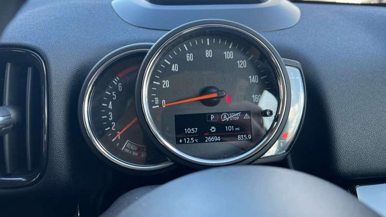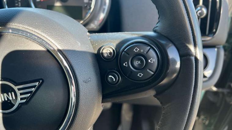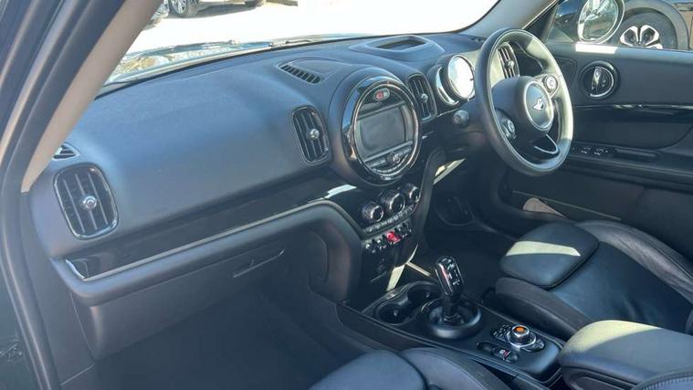 Active Guard incl speed limiting and lane departure functions with auto steering, and front collision warning with brake intervention, Automatic start/stop function with brake energy recuperation, Electro-mechanical speed dependant steering assistance, Instrument cluster, Mini E-call, MINI TeleServices, On board computer, Rear parking distance control, Double Vanos system, Fully variable valve control, High precision injection, Steptronic transmission with double clutch, FM tuner and DAB digital radio, Body colour fuel filler cap, Day time driving lights, Door sill strips, Dynamic brake lights, Electric windows, Heated rear window, Heated windscreen washer jets, Left exhaust tailpipe with chrome finisher, Model logo, Model logo on Tailgate, Radiator grille, Rain sensor with auto headlights, Rear fog lights, Rear window wiper, Side scuttle panel with integrated indicator, Split rear doors, Sun/heat protection glass, White indicator lenses, 12V Accessory socket in centre console, 360L luggage compartment capacity, 4 lashing eyes in luggage compartment, 40:20:40 split folding rear seats, Chrome interior highlights, Colour line - Carbon black, Cupholders, English handbook, Front headrests, Glove compartment, Headliner with grab handles and clothes hooks, Height and length steering column adjustment, Isofix rear child seat preparation, Leather gearshift lever and handbrake gaiters, LED reading lights, vanity mirror lights, front foot well light and spotlight on front seats, Manual air conditioning, Mechanical seat adjustment, driver seat height adjust, forward/back and front seats backrest, Multifunction steering wheel, Passenger seat height adjuster, Rear headrests, Storage compartments in doors, Sunvisors with vanity mirrors, Excitement pack - Countryman, Navigation pack - Countryman, 2 tone horn, 3 point seatbelts on all seats, 6 Airbags - front, side, head and seat belt tensioners, Anti-lock braking system (ABS), DSC - Dynamic Stability Control, Electronic handbrake, Front and rear disc brakes, Hill start assist, Tyre pressure monitoring system, Alarm system with tilt sensor, monitoring doors, bonnet interior and tailgate, Auto drive away locking, Deadlocking function, Electronic vehicle immobiliser, Locking wheel bolts, Start/stop toggle with keyless go, Tool kit,
