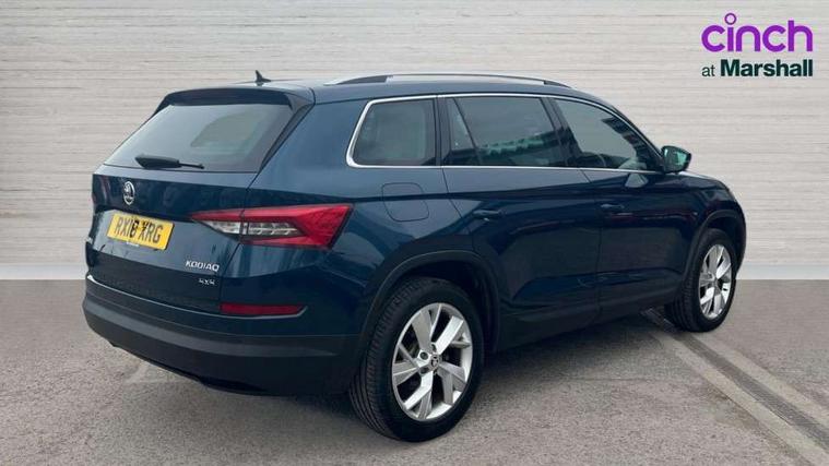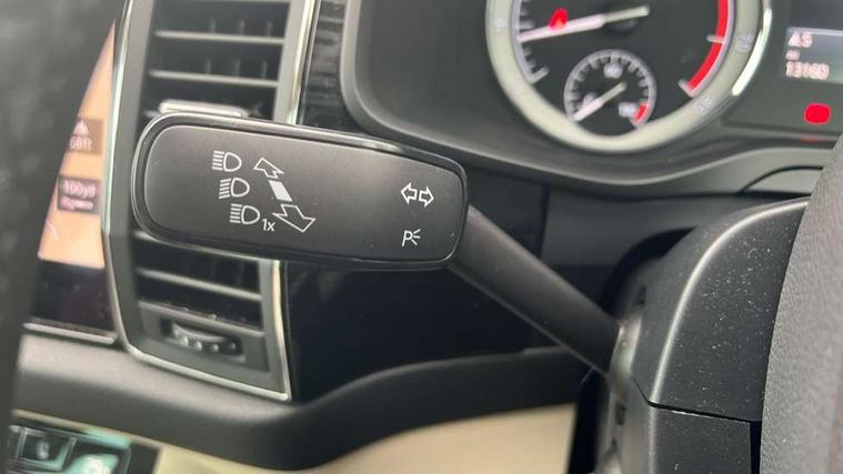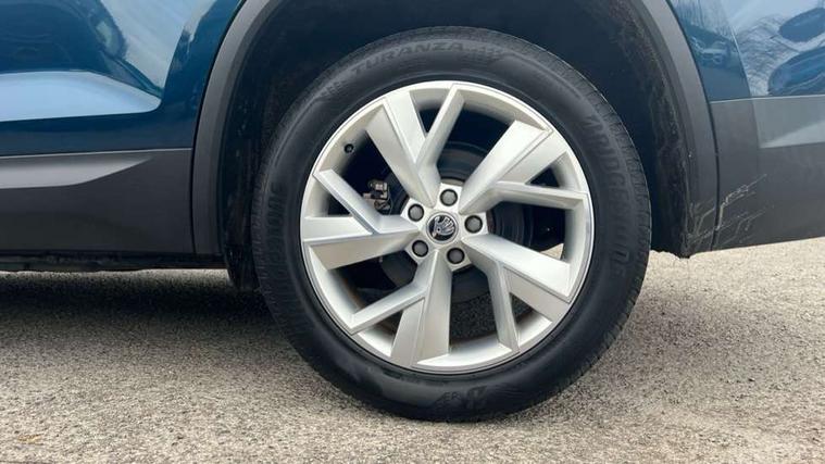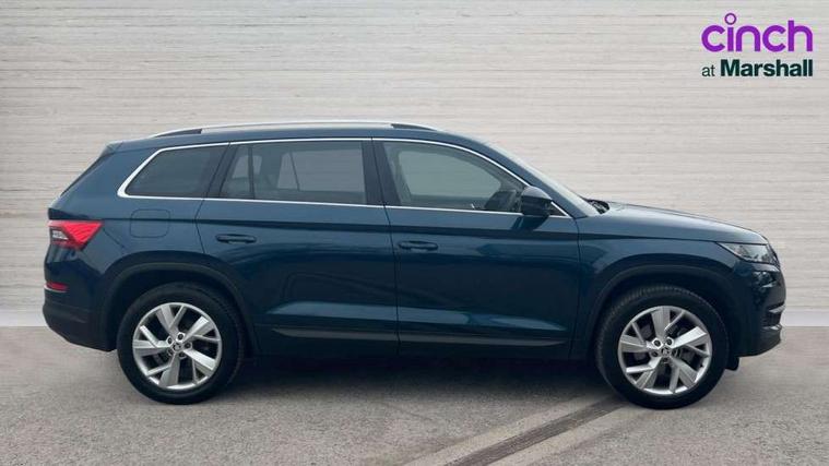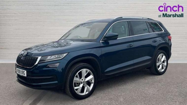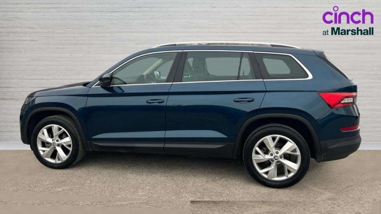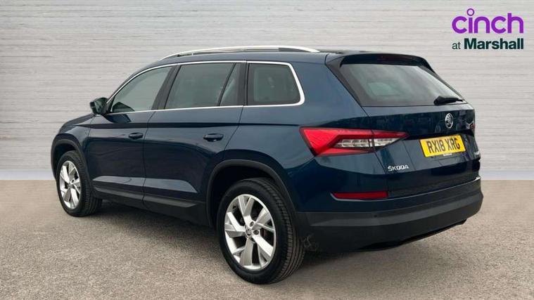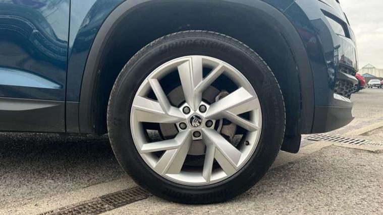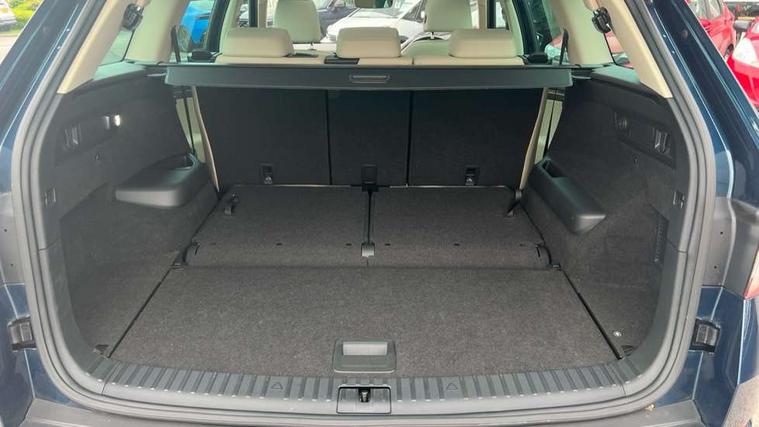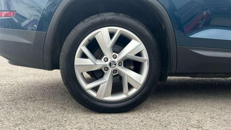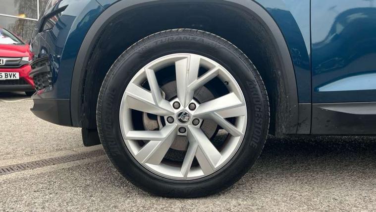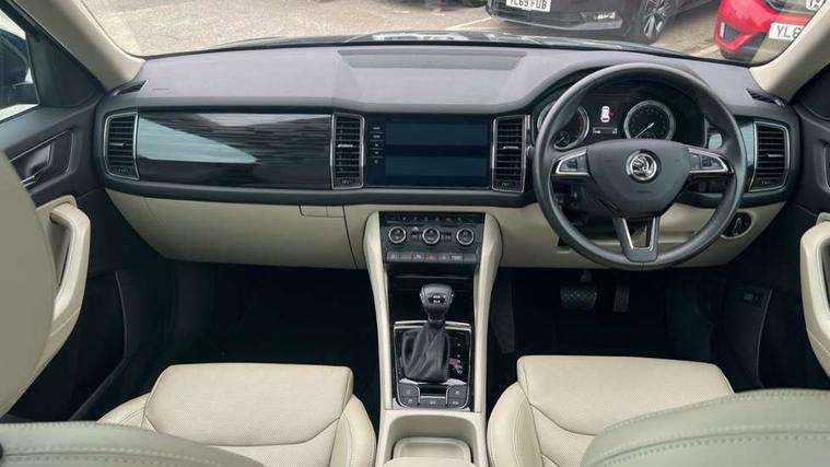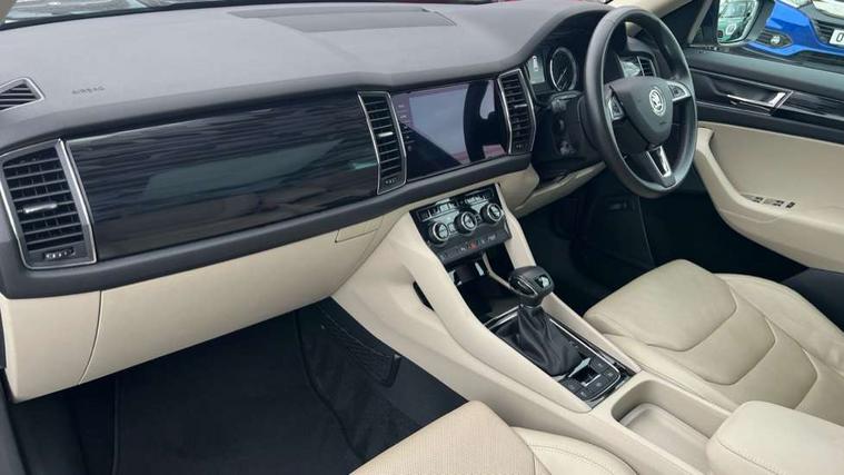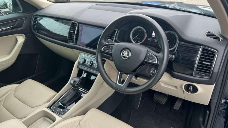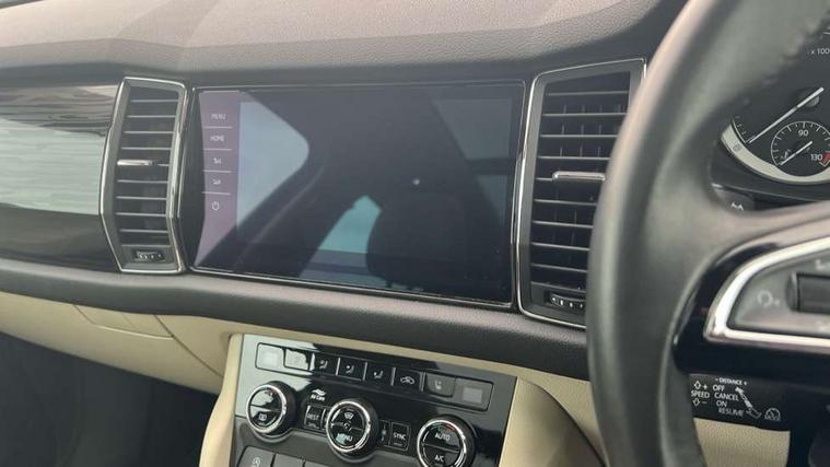 Bluetooth system, Colour maxi dot trip computer, Columbus satellite navigation with 9.2" touch screen and integrated Wi-Fi, Drive mode selector, Exterior temperature gauge, Phone box, Power tailgate, SmartLink, Smartphone wireless charging plate, Speed limiter, Bolero Radio, DAB Digital radio, DVD System, SD card slot, USB connection, Adaptive front lighting system, Aero wiper + intermittent function, Auto dimming door mirrors, Auto dimming rear view mirror, Automatic activation of hazard warning lights, Body colour bumpers, Body colour door mirrors and handles, Electric adjustable/heated/folding door mirrors, Electric front windows, Electric rear windows, Front and Rear door steps, Headlight washers, Heated rear window, High beam assist, High gloss black grille with chrome inserts, LED daytime running lights, LED front fog lights with static cornering light function, LED Headlights, Light assistant (coming home/tunnel light), Rain and light sensors, Rear spoiler, Rear wiper, Silver roof rails, Sunset privacy glass, Tinted windows, 12V Accessory socket in centre console, 12V power point in luggage area, 3 rear height adjustable headrests, 4 lashing points on luggage floor, 60/40 split fold rear seat back, Boot storage compartments, Centre console with storage/cupholders, Chrome gear shift lever, Chrome inner door handles, Driver + front passenger lumbar support, Driver's glovebox with lid, Driver's storage box, Electric front seats with memory function, Folding grab handles with rear coat hooks, Front and rear bottle holders, Front centre armrest with storage compartment, Front/rear courtesy lights, Height adjustable front seats, Height/tilt adjustable front headrests, Illuminated air conditioned glovebox, Illuminated luggage compartment, Isofix system on outer rear seats, Leather upholstery, Luggage compartment cover, Luggage nets in boot, Manually adjustable steering column, Passenger side net compartment on centre console, Pollen filter, Rear centre armrest with cupholders, Removable LED light in boot, Sunglasses storage, Sunvisors with illuminated vanity mirrors, Ticket holder, Chrome pack - Kodiaq, 3 point front/outer rear seatbelts+pre-tensioners, ABS + EDL + ASR + MSR + ESC, Automatic unlocking of doors in case of impact, Driver and passenger airbags, Drivers knee airbag, Electromechanical parking brake, Front assist including city emergency braking, Front side airbags, Fuel cut off safety device, Head airbags, Hill hold control, Hydraulic Brake Assist (HBA), Passenger airbag deactivate switch, Seatbelt warning, Two tone horn, Tyre pressure monitor, Alarm with interior monitoring and tilt sensor, Anti-theft wheel bolts, Immobiliser, Keyless entry and keyless start, Remote central locking,