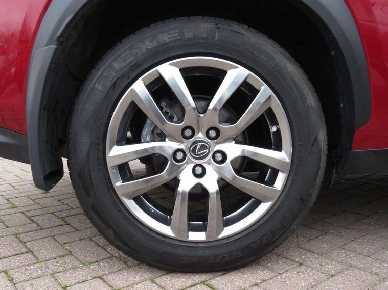 4 driving modes EV/Eco/Normal/Sport, 4 front and 4 rear park assist sensors, 8" display screen with remote touch interface, 8'' navigation, Analogue clock, Apple car play/Android Auto, Bluetooth telephone connectivity, Electric speed sensitive power steering, Lane change flasher function, Lexus link connected services with available optional wifi, Push button starter, Reversing camera, All wheel drive system, VDIM, Vehicle Stability Control (VSC), 2 USB ports, 8 speakers, AUX socket with VTR compatibility, CD player, DAB Digital radio, Auto dimming interior rear view mirror, Body adhesive, laser screw welding and laser brazed roof structure, Front and rear one touch power windows, with anti-jam protection, Heated and auto folding door mirrors with turn indicators, Hidden exhaust pipe, LED brake lights and rear lights with emergency brake signal, LED daytime running lights, LED front and rear sequential indicators, LED low and high beam headlights, Rain sensor windscreen wipers, Roof rails, 12V accessory port centre console and luggage compartment, 2 cupholders in front centre console, 2 map pockets in the rear, 2 x fixed shopping bag hooks in boot, 2 x sun visors with vanity mirror and lamp, 6 tie down hooks in boot, 60/40 split folding rear seat, 8 way driver/passenger electrically adjustable front seats, Adjustable rear seat backrest, Card holder installed in driver and passengers sun visors, Centre armrest with storage box, Dual climate control air conditioning system, Front and rear head restraints, Front and rear textile carpet mats, Heated front seats, Leather gear lever, LED interior illumination, Power adjustable leather steering wheel with paddle shifts, Rear air vents, Rear centre armrest with 2 cupholders, Self charging hybrid, Tahara leather upholstery, WIL - Whiplash Injury Lessening seats, 2 x Isofix child rear seat restraints, 3 point ELR front and rear seatbelts with pretensioners, ABS, Adjustable seat belt anchor points, Driver and front passenger 2 stage airbag, Driver/front passenger side airbags, Drivers knee airbag, EBD + Brake Assist, ECB (Electronically Controlled Brake System), Electronic parking brake, Front and rear curtain shield airbags, Front passenger seat cushion airbag, Hill start assist, Hybrid automatic with 6 stage sequential shift and kick down switch, Lexus safety system - dynamic radar cruise control, pre collision system day and night, lane tracing assist, road sign, automatic high beam, OTA, Passenger airbag cut-off device, Traction control, Tyre pressure warning, 2 x remote key fobs, Anti-theft system with siren, alarm, intrusion sensor, glass breakage sensor, tilt sensor and engine immobiliser, Locking wheel nuts, Speed sensitive auto door locking, Two motion door lock with double lock, VIN Window etching, Silver inlays, Space saver spare wheel,