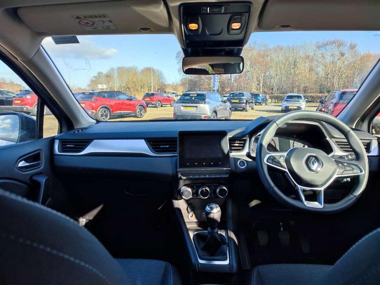 4.2" TFT Driver information display, Cruise control + speed limiter, EasyLink 7" touchscreen with navigation, google search and traffic information, Eco mode, Gear change indicator, Lane departure warning system, Lane keep assist, Rear parking sensor, Renault automatic emergency assist, Smartphone integration compatible with Apple CarPlay and Android Auto, Traffic sign recognition with over speed prevention, Trip computer, Variable assistance power steering, DAB Radio with Bluetooth and USB, 2 reverse gear LED lamps and 1 rear LED fog lamp in the bumper, Automatic front wipers with rain sensors, Automatic headlights, Black side door protection, Body colour door handles, Body coloured bumpers, Body coloured door mirrors, Day time running light, Drivers one touch window with anti-pinch feature, Extra tinted glass in rear windows and tailgate, Front and rear electric windows, Full LED headlights, Grey front and rear skid plate, LED front fog lights, LED high level brake lights, LED turn indicators on door mirrors, Rear side wing doors, Rear wiper, 12V Accessory socket, 3 rear headrests, 60/40 split and fixed base rear seat bench, Automatic climate control with one touch demist function and air quality regulator, Centre console storage tray, Cloth upholstery, Front head restraints, Glovebox, Heating system with pollen filter, Height adjustable driver's seat, Height/reach adjust steering wheel, ISOFIX child seat fixing points on rear outermost seats, Middle console with armrest and storage, Rear air vents, Single front passenger seat, Sliding rear bench, Standard bulb in front roof lights, Synthetic leather steering wheel, 3 rear seatbelts, ABS+EBA, Distance warning alert, Driver and front passenger, side, head and curtain airbags, Driver height adjustable seat belt, Electric parking brake, Electronic stability control, Front and rear no seatbelt warning sound, Front dash warning indicator in case of heavy braking, Front driver and passenger side airbag deactivation, Hill start assist, Rear door and window child locking function for rear door, Tyre pressure warning light, Anti drill door locks and locking fuel cap, Central door locking, Deadlocking system, Hands free keycard with push button and start/stop function, RAID (Renault Anti-Intruder Device) automatic door locking, Black soft touch dashboard, 17" Ediris diamond cut alloy wheels,