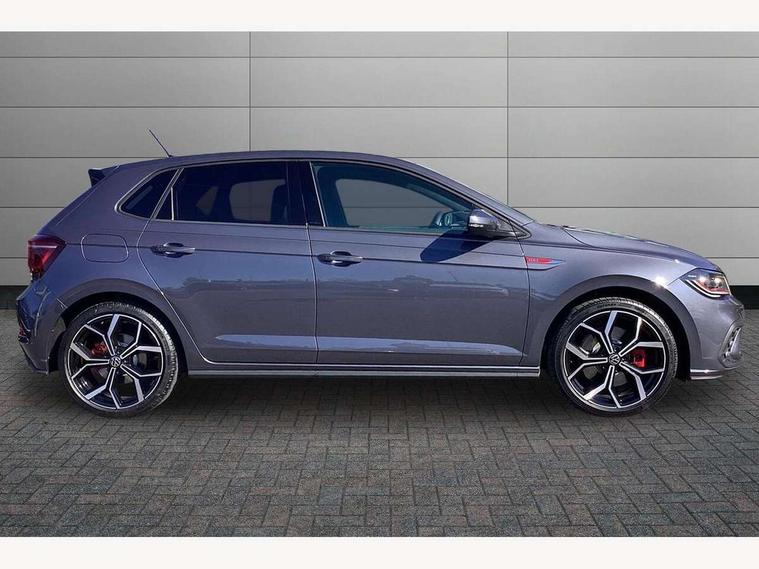 Adaptive cruise control with follow-to-stop and speed limiter, Advanced driver attention and drowsiness monitor, Bluetooth mobile phone interface, Digital Cockpit Pro with 10.25" Display, Dynamic road sign display, Eco mode, Emergency call service, Multifunction camera, Power assisted speed sensitive steering, Preparation for We connect and We connect plus, Speedo and rev counter, electronic odometer, trip, service interval display and fuel gauge, Travel Assist - Lane keeping system and traffic jam assist, Travel assist including emergency assist, Trip computer, Warning signal and warning light for front and rear seatbelts not fastened, Washer fluid level indicator, Wireless app connect, Adaptive chassis control, Front wheel drive, Heavy duty rear axle, Rear shock absorpion sports version, Sports select suspension lowered by 15mm, Start-stop system with battery regeneration (recuperation - energy recovery during braking), DAB Digital radio, Diversity antenna for FM reception, Body colour bumpers, Body colour door handles, Electric front windows, Front scuff plates in aluminium with GTI logo, Heat insulating glass windscreen, Power folding adjustable/heated exterior mirrors and front passenger exterior mirror lowering function, Rain sensor, Rear electric windows, Rear fog light, Rear side wing doors, Rear windscreen washer and wiper with interval delay, Sport bumpers with air intakes with honeycomb structure, Third brake light, Twin chrome exhaust tailpipes, 12V power socket in centre console, 2 USB-C ports in the front, 2 USB-C charging sockets on the center console in the rear, 3 rear head restraints, 60/40 split folding rear seat and rear seat bench not split, Air care climatronic air conditoning system with active combination filter and 2-zone temperature control, Black roof lining, Carpet mats, front and rear, Chrome plated radiator grille inserts, air vent surrounds and light switch surrounds, Door and side trim panel, Driver and front passenger seat height adjustment, Driver/passenger sunvisors with illuminated vanity mirrors, Front centre armrest, Front footwell illumination, Front seat backrest storage pockets, GTI sports gearshift knob in aluminium leather, Handbrake lever handle in leather, Headliner in recycled material, Isofix child seat preparation easy-fit (for two outer rear seats, and front passenger seat) compatible with I-size, LED interior light with switch off delay and dimmer, 2 reading lights front and rear, Luggage compartment cover, Luggage compartment floor, Luggage compartment lighting, Lumbar adjustment for front seats, Single front passenger seat, Stainless steel pedals, Standard pedal cluster, Three spoke leather wrapped multifunction sports steering wheel with shifting paddles, IQ LED matrix headlights pack - Polo, Light and sight pack - Polo GTI, 3 point height adj front seatbelts + pretensioners, 3x3 point rear seatbelts, ABS, Driver and front passenger airbag with front passenger airbag deactivation, Drivers and front passengers safety optimised head restraints, ESC (Electronic stability control) + EDL (Electronic Differntial lock) and ASR (Traction control), Extended and predictive pedestrian/ cyclist protection, Front and rear disc brakes with red brake calipers, Front curtain and side airbags with center airbag, Hill hold control, Manual child lock in rear doors, Two tone horn, Tyre pressure loss indicator, Alarm with interior protection, Anti-theft alarm system with interior monitoring, backup horn, and towing protection, Anti-theft wheel bolts, Electronic engine immobiliser, Chrome applications on rotary light, mirror adjustment, window regulator switches, outlet with frame in black, Low rolling resistance tyres,