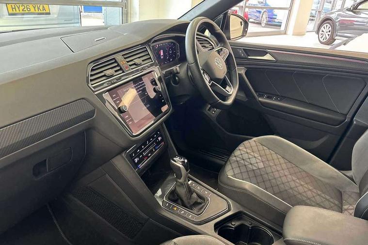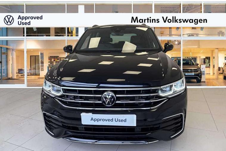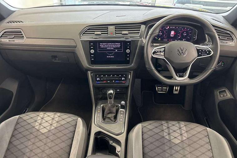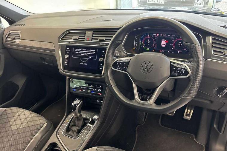 Adaptive cruise control ACC stop and go including speed limiter, App-Connect incl. App-Connect Wireless for Apple CarPlay and Android Auto, Bluetooth phone integration system, Distance control assist, Driver alert system, Driver profile selection, Dynamic road sign display, eCall emergency call system, Electromechanical speed sensitive power steering, Engine start/stop button, Lane keeping system Lane Assist, Lights on warning, Multifunction front facing camera, Outside temperature display, Premium multifunction display with multi colour display, Remote control boot opening, Rev counter, Revision / skills operating concept travel assistant, Service interval indicator, Speed limit display, Start/stop system with regenerative braking, Trip computer, Warning sound and light for doors and tailgate open, Battery regeneration during braking, Charging cable Mode 3 Type 2 / 3 (16A), XDS electronic differential lock for improved traction and handling, 4 X 20 watt output, 8 Speakers, Diversity antenna for FM reception, Radio, SD card slot, Simultaneous pairing of 2 compatible mobile devices, SMS functionality - read, compose and send SMS messages using touch-screen display, Title and cover art display, USB C ports, Auto dimming interior rear view mirror, Automatic headlight control system, Body colour door handles, Chrome moldings on the side windows, Coming/leaving home lighting function, Dynamic headlight range control, Front and rear electric windows, Heated rear window, High level 3rd brake light, Laminated safety glass windshield, heat and sound insulating, LED headlamps with LED separate daytime running light and dynamic cornering light, LED rear combination lamps, LED rear number plate lights, License plate carrier in front and rear, R Line body kit, R Line side sills, Rain sensor windscreen wipers, Rear exhaust tailpipe, Rear fog lamp, Rear side wing doors, Rear spoiler in R style, Rear windscreen washer and wiper with interval delay, Side and rear windows in heat insulating glass, Trailer Stability Programme, Unique R Line badging, Windscreen wipers/ intermittent wipe + 4 position delay, 12V outlet in center console rear and in luggage compartment, 12V outlet in front and tray, 2 cup holders in front, 2 LED front reading lights, 2 LED rear reading lights, 3 bench rear seats in 2nd row, 3 rear headrests, 4 load lashing points, 40:20:40 split folding rear seats, Air Care Climatronic 3 zone automatic climate control with enhanced air filter and controls in the rear, Backrest release for left front seat, Black headlining, Brushed stainless steel pedals and footrest, Carpet mats in front and rear with decorative stitching in Gray, Climate control unit rear with touch function, Door and side trim panel in foam film, insert in leatherette, Front centre armrest, Front footwell illumination, Front seats head restraints (x-adjustment), Height adjustable front seats, Height/reach adjust steering wheel, Instrument lighting white adjustable panel illumination, Interior light with delay, Isofix Preparation 2 Rear child seats, Leather gear knob, Lockable cooled glovebox, Luggage compartment lighting, Luggage net, Rear bench seat asymetrically split folding, longitudinally movable and folding with load-through hatch and center armrest, Remote unlocking for rear seat backrest, Removable luggage cover, Removable rear headrests, Safety optimised front head restraints, Single front passenger seat, Sliding/reclining rear seats, Standard rear seat release, Storage compartment in driver's door, Storage compartment in passenger's door, Storage compartment in rear doors, Storage compartments in luggage area left and right, Storage tray on dashboard, Sun visors with illuminated vanity mirrors, Top front comfort seats, Variable boot floor, height adjustable and removable, Driver assistance pack plus - Tiguan DSG, 3 point seat belt for centre rear seats, 3 point seat belts with seat belt pretensioners for the outer rear seats, Active bonnet, Curtain airbags for front and rear passengers, Driver/Front Passenger airbags, Drivers knee airbag, Electronic parking brake with auto hold, Electronic Stability Control with driver steering recommendation, ABS, ASR, EDL, EDTC and trailer stabilization, Front assist with autonomous emergency braking (for Adaptive Cruise Control ACC up to 130 mph), Front disc brakes, Front passenger airbag deactivation, Front side airbags, Height adjustable front 3 point seatbelts + pretensioners, Hill hold control, Manual child proof rear door locks, Pedestrian monitoring system, Power assisted brakes, Proactive passenger protection system in combination with front assist, Rear disc brakes, Rigid safety cell with front and rear crumple zones, Two tone horn, Tyre pressure loss indicator, Warning sound and light for front seat belts if unfastened, Anti theft alarm system with interior monitoring, backup horn and towing protection, Anti theft wheel bolts, Electronic engine immobiliser, Tool kit, Tyre mobility kit Includes 12V compressor and tyre sealant,