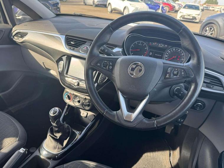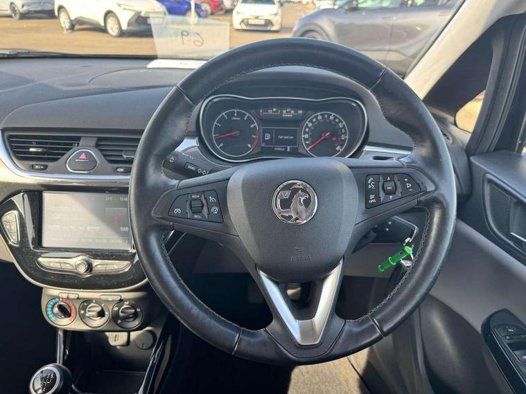 Apple car play/Android Auto, Bluetooth system, City assist mode for power steering, Cruise control + speed limiter, Exterior temperature gauge, Lights on warning, Low fuel level warning light, Multi function display, Multi function trip computer, Rev counter, Service indicator, Speed sensitive power steering, Speed warning indicator, 6 speakers, Body colour bumpers, Body colour door handles, Body coloured door mirrors, Chrome effect window surrounds, Chrome front grille, Coming home function, Electric adjustable door mirrors, Electric front windows/one touch facility, Fog lights with chrome surround, Headlamp levelling, Heated door mirrors, Heated rear window, Heated windscreen, Laminated windscreen, LED daytime running lights, Rear wiper, Two speed windscreen wipers, 12V power outlet, 2 height adjustable rear headrests, 60/40 split folding rear seat, Air recirculation system, Centre console with cupholders, Chrome gear knob, Chrome interior door handles, Cloth/morrocana upholstery, Delay courtesy light function, Driver/passenger reading lights, Driver/passenger sunvisors and vanity mirrors, Electric reach + rake adjustable steering column, Front door pockets, Front seat belt pre-tensioners with load limiters, Glovebox, Grab handles, Height adjustable driver's seat, Height adjustable front headrests, Illuminated luggage compartment, ISOFIX on outer rear seats, Load restraining lashing points, Luggage compartment cover, Morrocana cloth upholstery, Multi function steering wheel, Pollen filter, Rear door pockets, Rear reading lights, Reclining front seats, Seatback map pocket, Sight and light Pack - Corsa, Winter pack - Corsa, ABS + EBD + EBA, Brake assist function, Child proof door locks, Driver/passenger 2 stage auto adaptive airbags, ESP + traction control, Front and rear curtain airbags, Front and rear seatbelt reminder, Front seat side impact airbags, Height adjustable front seatbelts, Hill start assist, Manual passenger airbag deactivation function, Side impact protection beams, Three 3 point rear seatbelts, Tyre pressure monitoring system, Deadlocks, Immobiliser, Key left in ignition audible warning, Locking wheel bolts, Radio frequency remote central locking, Rhutenium facia with chrome effect inserts,