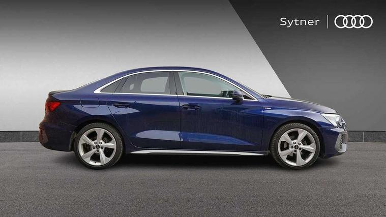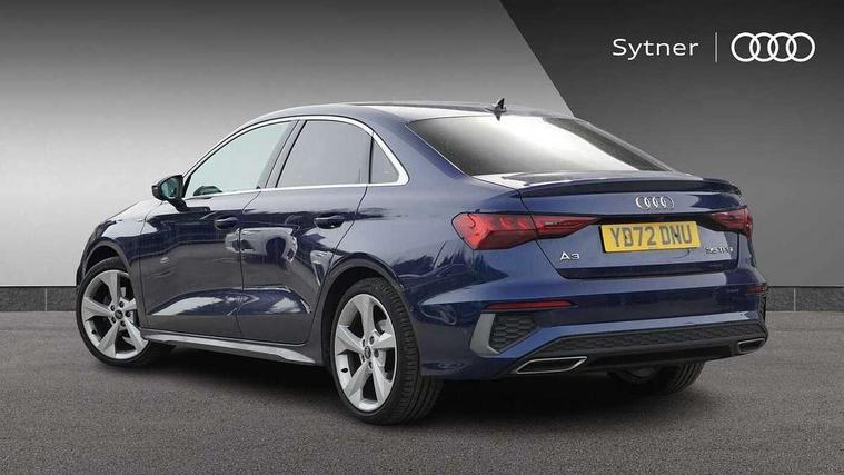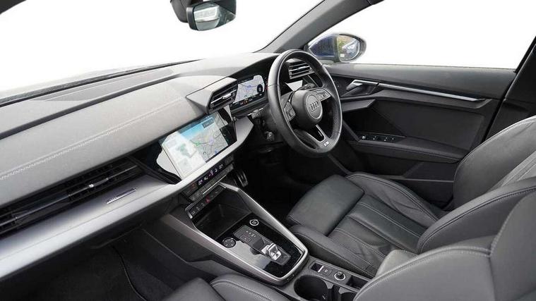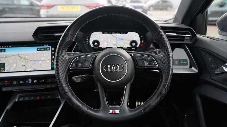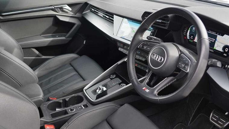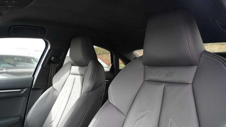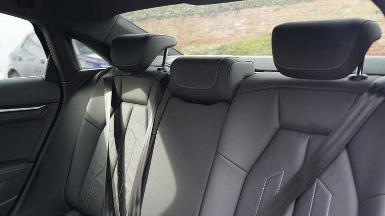 Aluminium air vent surrounds, Aluminium trim elements, Dark spectrum aluminium inlays, accent surfaces in the dashboard and centre console in platinum grey silk effect paint finish, Aluminium interior elements pack - A3 Saloon, LED interior lighting pack - A3 Saloon, S line styling pack - A3 Saloon, Anti theft alarm, Anti-theft wheel bolts, Immobiliser, Remote control central locking, 2x USB Type C ports (for charging and data transfer), 6 passive loudspeakers, CD player, DAB Digital radio, 3x3 point rear seat belts, Driver and front passenger airbag with passenger airbag deactivation, Electronic Stabilisation Control (ESC) including ABS, ASR and EDL, First aid kit with warning triangle and 2 safety vests, Front side airbags with head airbags and interaction airbag, Hill hold assist, Pre-sense front with pedestrian and cyclist detection, Seatbelt monitoring, Tyre pressure loss indicator, 3rd brake light, Acoustic glass windscreen, Aluminium window trim, Auto dimming frameless rear view mirror, Electrically adjustable/heated/folding/dimming door mirrors with kerb view includes integrated LED indications + kerb view function for passenger side, Front electric windows, Illuminated door sills with aluminium inserts at the front with S logo, LED daytime running lights, LED headlights with LED rear lights and dynamic rear indicators, Light and rain sensors, Model and engine designation badges at rear, Privacy glass - dark tinted rear window, rear door and side windows, Rear boot, Rear electric windows, Rear side wing doors, S line bumpers, S roof spoiler, 12V socket and storage compartment in front centre console, 3 seat bench in 2nd row, 40/20/40 split folding rear seat bench with cupholder, Black cloth headlining, Dual zone electronic climate control, Electronically operated child locks, Front and rear centre armrest in leather, Front and rear headrests, Front/rear floor mats, Height and reach adjustable steering wheel, Illuminated vanity mirror, Interior lighting - glove compartment light and right hand side, Luggage compartment floor covering, Manual boot compartment lid, Manually adjustable front sport seats, Seat side bolsters, Single front passenger seat, Stainless steel pedals and front footrest in black, Twin leather upholstery with front sports seats S embossed logo, Audi connect emergency call and service, Audi drive select (Auto, Comfort, Dynamic, Efficiency and Individual), Audi smartphone interface, Audi Virtual Cockpit - 10.25" digital and colour instrument cluster, Automatic start/stop system with recuperation, Bluetooth interface, Collision avoidance assistant, Electromechanical power speed sensitive steering, Lane departure warning system, MMI Navigation Plus with high resolution 10.1" colour touch screen display, Service indicator, Voice control system with natural language interaction,