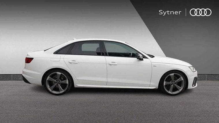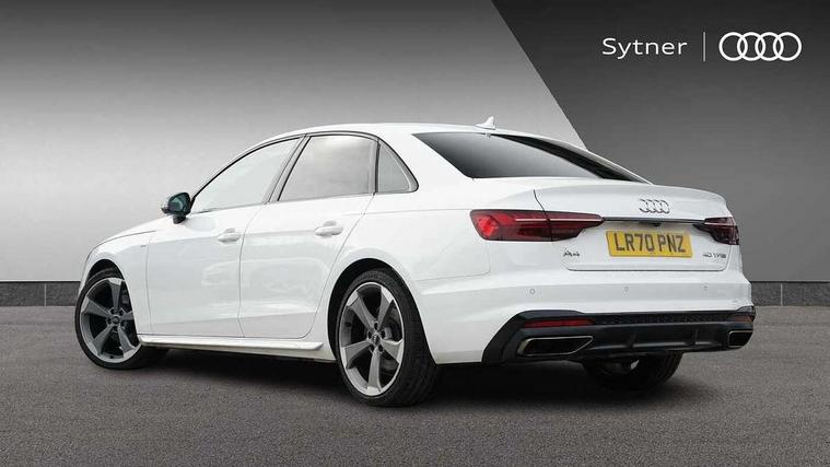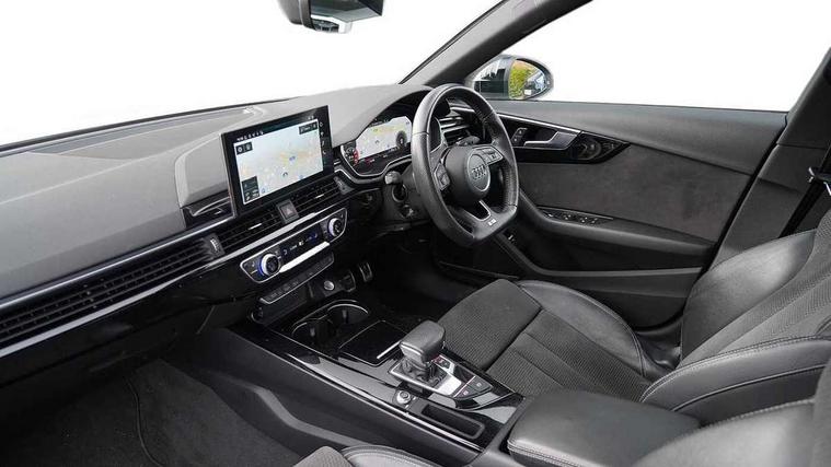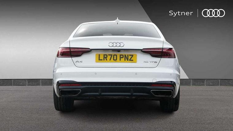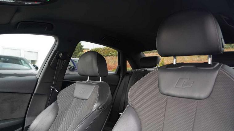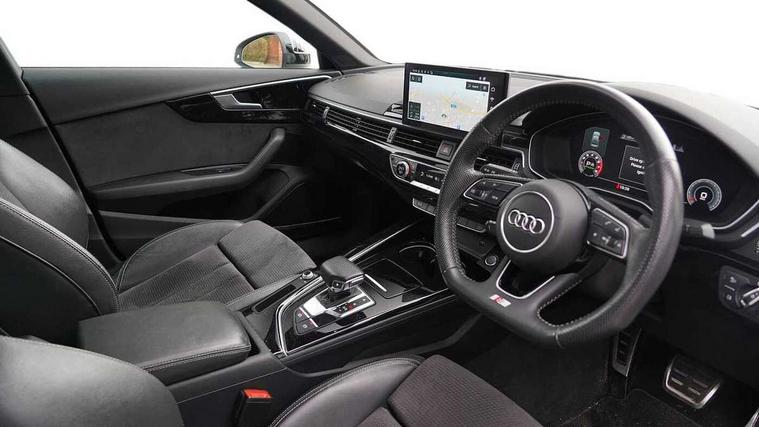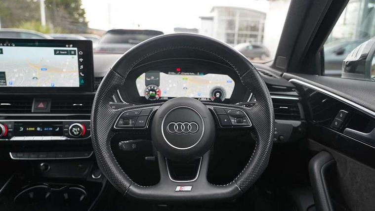 Audi connect safety and service (e-call), Audi drive select, Audi parking system plus with front and rear sensors, Audi smartphone interface, Audi virtual cockpit, Automatic start-stop system with coasting functionality and efficiency programme, Bluetooth interface, Electric boot lid release, Electromechanical power steering, MMI Navigation plus with MMI touch includes 10.1" high resolution colour MMI display, 3D map, Rear view camera, Voice control system, 54 litre fuel tank, Sports suspension lowered by 23mm, 2 USB charging ports, 8 passive loudspeakers, DAB digital radio reception, Auto dimming rear view mirror, Body colour door handles, Body colour front spoiler lip, Body colour side sill trim, Electrically folding auto dimming/adjustable/heated door mirrors with LED side indicators and kerb view function for passenger side, Grained matt black side air inlets with matt aluminium silver inlay, High beam assistant, LED headlights with LED rear lights + dynamic rear indicators + headlight adjustment and high beam, turning light + LED daytime running lights, Matt aluminium silver tailpipe trim, Privacy glass, Rain and light sensors, S Line badges on the front wings, S line front and rear bumpers with side skirts, S Line rear diffuser in matt titanium black with trim strip in matt aluminium silver, Windscreen with acoustic glazing, 4 way electric lumbar support for driver and front passenger, 40/20/40 split folding 3 rear seat bench in 3 parts with rear centre armrest, Black cloth headlining, Black perforated leather gearknob, Contrast stitching on seats, steering wheel and gear lever gaiter, Deluxe 3 zone electronic climate control, Door sill trims with aluminium inlay, Front and rear head restraints, Front centre armrest, Heated front seats, Illuminated door sill trims with S logo, ISOFIX child seat mounting and top tether, Manual seat adjustment, Stainless steel pedals and foot rest, Tool kit, LED Interior light pack - A4/S4, Titanium black styling pack - A4 Saloon, 3 rear seatbelts, 6 airbags - Driver, front passenger, curtain and side windows, Electronic Stabilisation Control (ESC) including ABS, ASR and EDL, Hill hold assist, Multi collision brake assist, Pop-up bonnet for pedestrian protection, Pre sense city, Seatbelt monitoring, Warning triangle and first aid kit, Anti theft alarm, Anti theft wheel bolts, Keyless Go, Piano black finish inlay, 19" 5 arm rotor design alloy wheels titanium matt look, Tyre repair kit,