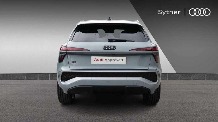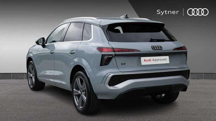 Adaptive cruise control, Audi connect emergency call and service, Audi connect remote and controls, Audi drive select (Balanced/Individual, effeciency, comfort and dynamic), Audi virtual cockpit plus - 11.9" display, Bluetooth interface, Camera based traffic sign recognition, Driver attention and fatigue monitor with driver monitoring, Front cross traffic assist, Lane departure warning with emergency assist, Panoramic curved display with 12.8" MMI navigation plus and MMI touch, Park assist plus with parking system and 360 display, Phonebox light with wireless charging, Reversing camera, Smartphone interface includes wireless Apple carplay/Android Auto, Start/stop system, Swerve assist and turn assist, Traffic sign based speed limiter, Voice control system with natural language interaction, Comfort suspension, Petrol Particulate Filter, 2 USB-C ports with charge and data functions, Audi sound system with 10 loudspeakers, subwoofer, 8 channel amplifier with 260 watts, DAB digital radio module, Acoustic glass for front door windows, Acoustic windscreen, Aluminium roof rails, Aluminium window trim, Audi Q3 lettering on the B-pillars, Auto dimming door mirrors, Auto dimming rear view mirror, Body colour door mirrors, Contrasting finish in volcano grey, Electrically folding, adjustable and heated door mirrors with integrated LED side indicators and kerb view function for passenger side, Full paint finish, Illuminated door sills with aluminium inserts at the front with S logo, LED daytime running lights, LED headlights plus with LED rear lights pro with continous light strip, illuminated Audi rings, rear, LED third brake light, Loading sill protector in stainless steel, Main beam assist, Privacy glass - dark tinted rear window, rear door and side windows, Projection light in the exterior mirrors - Projects a graphic element onto the ground, Q3 badging on the rear, Rain and light sensors, Rear side wing doors, Rear window, rear door windows and rear side windows in clear glass, Rear wiper, Sports bumpers, 3 seat bench in 2nd row, 3 spoke flat top and bottomed leather multi function sport steering wheel with gear shift paddles and "S" badging, 3-zone deluxe automatic air conditioning, 4 way lumbar support for the front seats - electric with horizontal and vertical adjustment in four directions, Black cloth headlining, Front and rear floor mats, Front and rear headrests, Front centre armrest, Heated front seats, Height and reach adjustable steering wheel, Interior storage compartment, Leather/artificial leather upholstery combination with S emblem + front sports seats, Luggage compartment lid, electrically opening and closing, Manual front seats with height adjustment, Rear seat bench plus with split folded 40:20:40, Single front passenger seat, Stainless steel pedals, Steering wheel operating unit, gloss black, Storage compartment in front centre console, Ambient lighting package pro - Q3, S line exterior styling pack - Q3, 3x3 point rear seatbelts, Convenience key with safelock, Driver and front passenger airbag with passenger airbag deactivation, Electromechanical parking brake, Electronic stabilisation control including ABS, ASR and EDL, First aid kit with warning triangle and high visibility vests, Front emergency brake assist, Hill hold assist, i - Size child seat mounting on the front passenger side and i - Size and top tether on the outer rear seats, Power operated child locks, Seatbelt monitoring, Three point automatic belts with belt tensioner and height adjustment, Tyre pressure loss indicator, Anti theft wheel bolts, Remote central locking, Thatcham approved category 1 anti theft alarm, Dark aluminium divergence inlay, Interior elements in dinamica microfibre, Interior trims in aluminium look, Tool kit and Jack,