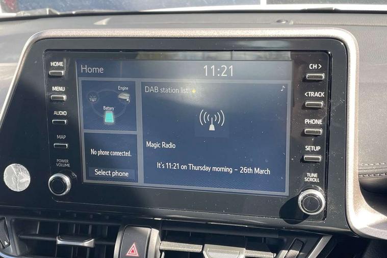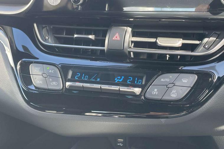 4.2" coloured TFT screen for multi-information display, Adaptive cruise control, Apple car play and Android auto, Bluetooth connectivity, E-call, Electric power steering, Hybrid system indicator, Lane departure alert with steering control, Lane trace assist, Push button start, Push button tailgate release, Remote boot door release in cabin, Remote boot door release in key, Reversing camera, Road sign assist - RSA, Smart voice assist, Trip computer, Voice recognition, Vehicle Stability Control (VSC), 6 speakers, AM/FM radio, DAB Radio (Digital Audio Broadcasting), Toyota touch 2 multimedia system with 8" display, USB connector, Wi-fi connectivity, Anti-jam protection on power windows, Auto high beam, Auto up and down function on all power windows, Automatic headlights, Automatic headlights cut-off, Black and body coloured rear bumper, Black lower front grille, Black upper front grille, Body colour door handles, Body colour door mirrors, Body colour front spoiler lip, Body coloured front bumper, Boot door release with push button, Electric heated door mirrors, Follow me home headlights, Front and rear power windows, Front fog lights, Headlight cut off reminder, Honeycomb lower front grille, LED daytime running lights, LED High mounted stop light, LED rear brake lights, LED rear combination lights, Manual headlight levelling, Manually retractable door mirrors, Noise reduction layer on front windows and windscreen, Power adjustable door mirrors, Rear side wing doors, Rear spoiler, Rear tailgate, Rear window defogger, Rear window wiper, Reflective LED headlights, Shark fin antenna, UV-filter on driver and passenger windows, UV-filter on rear windows, Variable front intermittent wipers, 12v power outlet - front, 3 rear headrests, 3 seat bench in 2nd row, 3 spoke leather steering wheel, 60/40 split folding 2nd row rear seats, Adjustable rear headrests, Adjustable speed limiter switch on steering wheel, Assist grips front and centre pillar, Audio and telephone switches on steering wheel, Black front door assist grips, Boot light, Chrome interior door handles, Cloth upholstery, Driver and front passenger personal light, Driver and front passenger Whiplash Injury Lessening seats, Dual zone automatic air conditioning, Floor mats, Front cupholders, Front head restraints, Front sports seats, Glovebox with internal light, Hard tonneau cover, Hooks for luggage holding net, Humidifying Nanoe air purifier, Illuminated entry system, Isofix attachments on outer rear seats, Leather gearshift, Light on driver sun visor, Light on passenger sun visor, Manual telescopic steering wheel, Manual tilt steering wheel, Manually adjustable lumbar support on driver seat, Manually height adjustable driver seat, Manually height adjustable front passenger seat, Manually reclining driver seat, Manually reclining front passenger seat, Manually sliding driver seat, Manually sliding front passenger seat, Microphone on front personal light, Mirror on driver sun visor, Mirror on passenger sun visor, Multimedia switches on steering wheel, Pollen filter, Shopping bag hooks, Single front passenger seat, Slow opening on lower glovebox, Voice recognition switch on steering wheel, 16 Disk front wheel brake, 3x3 point rear seatbelts, ABS+EBD+Brake assist, Electronic parking brake, Front and rear seatbelt reminder, Front passenger airbag on/off switch, Hill start assist control (HAC), Pre collision system with pedestrian detection, Pre-tensioners and force limiters, Rear door child safety locks, SRS Airbags - Driver + Front passenger, front side, front and rear curtain and driver's knee airbags, Toyota safety sense, Tyre pressure monitoring system, Tyre pressure warning system, Acoustic vehicle alert system (AVAS), Glass-breaking alarm sensors, Immobiliser, Intrusion alarm, Intrusion sensor, Motion sensor alarm, Power door locks, Power passenger window lock, Remote central locking, Black lower dashboard, Black upper dashboard, Grey deco line on upper dashboard, Matte black centre console, Tyre repair kit,