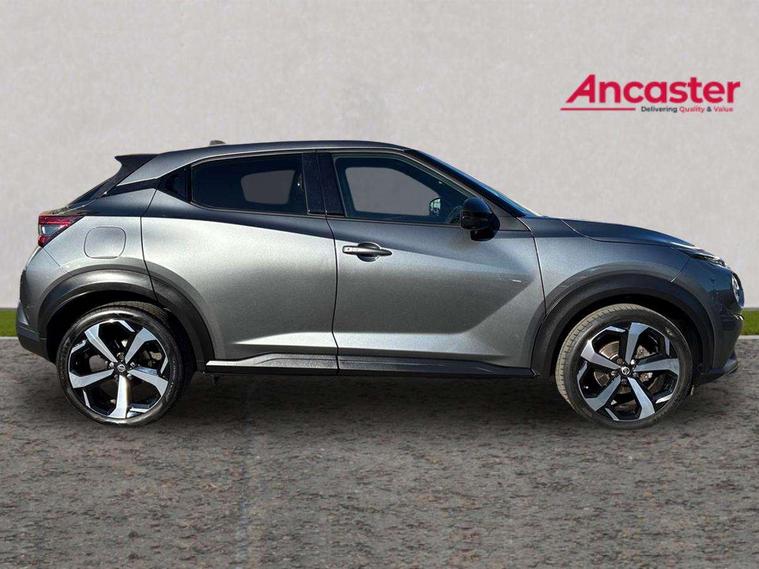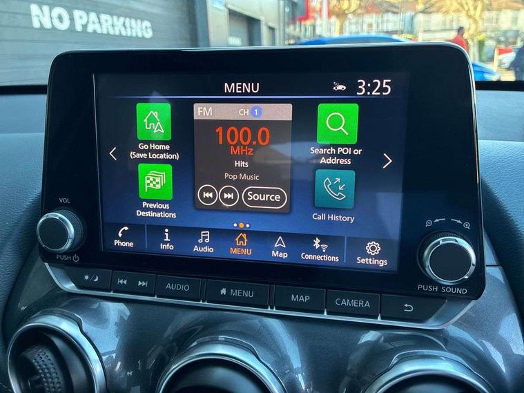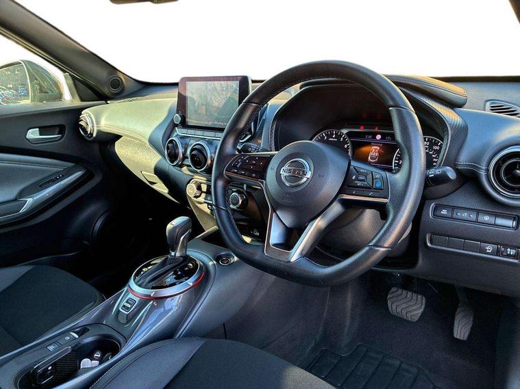 7" full colour TFT screen combimeter, Apple CarPlay and Google Android auto, Drive modes select (Eco, normal and sport), eCall emergency call system, Emergency and breakdown call, Front parking sensor, Idle start/stop system, Intelligent lane intervention, Lane departure warning system, Nissan connect 8" touch screen entertainment system, Nissan connect nav with TomTom traffic, Nissan connect services and Wifi connection, Outside temperature sensor, Power Steering, Rear parking sensor, Traffic sign recognition, Trip computer, Voice recognition, Gasoline particulate filter, Bluetooth system, USB, Aux-in and 12V socket, Bose personal plus audio system with 8 speakers(4 speakers and 2 headrest speaker for driver and passenger seats), Bose personal sound stage control, DAB Digital radio, Rear console USB port, Auto dimming interior rear view mirror, Auto headlights, Automatic hazard signal with emergency stop signal, Body colour bumpers, Body colour door handles, Electrically adjustable door mirrors with integrated indicators, Follow me home headlights, Front and rear electric window with one touch driver window, Heated and auto folding door mirrors, High beam assist, LED daytime running lights, LED front fog lights, LED headlamps, LED rear fog lamp, LED rear lamps, Rain sensor windscreen wipers, Rear privacy glass, Rear side wing doors, Rear wiper, Thermaclear heated windscreen, Three blink turn signal, 3 height adjustable rear headrests, 3 seat bench in 2nd row, 60/40 split folding rear seat, Automatic climate control, Card holder on driver sunvisor, Cloth/Synthetic leather upholstery, Door ambient lighting, Driver and passenger sliding and reclining seats, Driver seat back pocket, Driver side rear coat hanger, Driver/passenger sunvisors and vanity mirrors, Front and rear cabin lights, Front armrest, Front door pockets with bottle holders, Front head restraints, Front passenger isofix child seat anchorage point, Front/rear passenger grab handles, Gear console ambient circle lighting, Grey synthetic leather kneepad, Heated front seats, Height adjustable driver's seat, Height adjustable passenger seat, Internal chrome door handles, Leather gearshift knob, Leather steering wheel, Luggage board, Luggage space lighting, Monoform sporty seats, Multifunction steering wheel, Passenger seat back pocket, Rear door bottle holders, Single front passenger seat, Steering wheel mounted gearshift paddles, Telescopic steering wheel adjustment, Two cupholders in front centre console, Two rear isofix child seat anchorage points with top tether, Welcome light and console tray ambient lighting, ProPilot pack - Juke, ABS with EBD and brake assist, Active ride control, Active Trace Control, Driver and passenger airbags, Driver and passenger side airbags, Electric handbrake with auto hold function, Electronic Stability Programme (ESP), Front and rear curtain airbags, Height adjustable seatbelts, Hill start assist, Intelligent emergency braking with pedestrian and cyclist recognition, Rear door child safety locks, Seatbelt reminder for driver/front passenger and rear seats, Single tone horn, Three 3 point rear seatbelts, Traction control, Tyre pressure monitoring system, VDC Dynamic Vehicle Control, Ventilated rear brake discs, Alarm, Immobiliser, Intelligent Key with push button starter, Remote central locking,