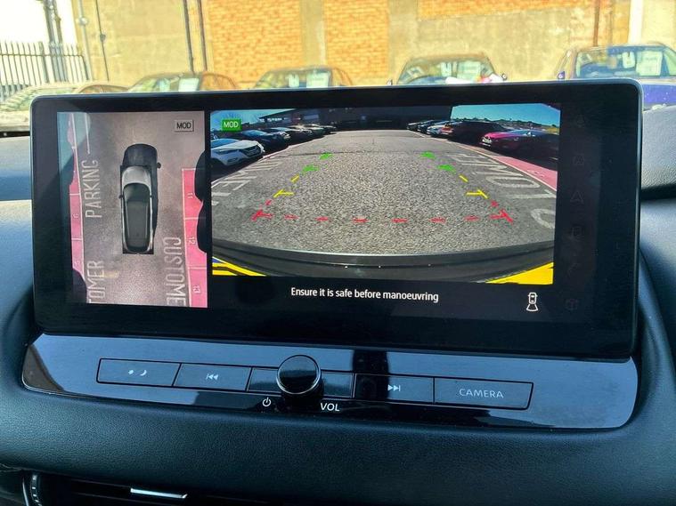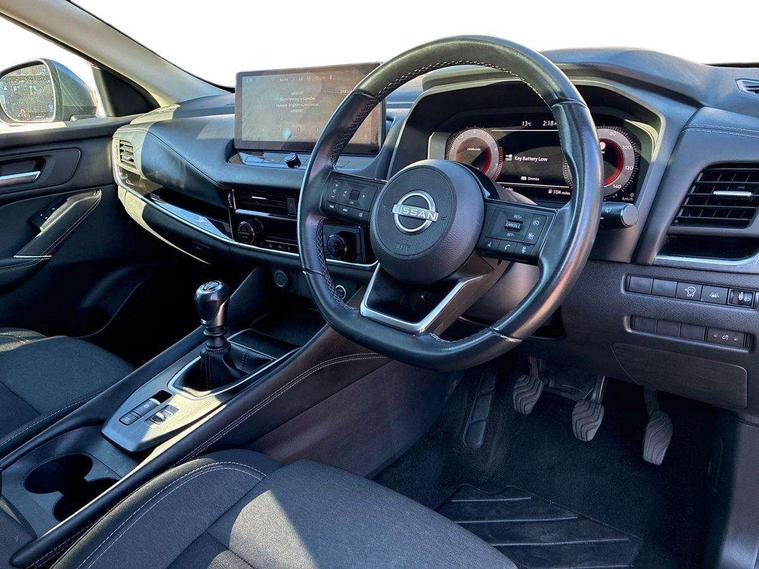 Android auto/Apple CarPlay (Wired), Blind spot warning, Drive modes (sport, normal, eco), Electric speed sensitive power steering, Emergency and breakdown call, Front and rear parking sensors, Full Digital 12.3" TFT Digital Combimeter, Google maps services - search, weather, 3D maps and Google street view, Idle stop/start system, Intelligent around view monitor, Intelligent Cruise control (ICC), Intelligent driver alert system, Intelligent forward collision warning, Intelligent lane intervention, Lane departure prevention, Lane departure warning system, Maximum speed limiter, Moving object detection, Nissan connect 12.3 inch touchscreen infotainment system, Nissan connect navigation, Push button starter, Rear cross traffic alert, Rear view camera, Remote control services - door locks, lights, horn and car locator, Telematics - notifications and connectivity services, TomTom live traffic services, Traffic sign recognition with legal speed adjustment, Trip computer, Virtual personal assistant and firmware over the air capability, Wireless apple carplay, 6 speakers, AM/FM audio system with DAB, Bluetooth audio streaming, Front USB connections (Type-A and Type-C), Rear USB charging only ports (Type-A and Type-C), Auto dimming rear view mirror, Auto rear wiper when reversing, Automatic hazard signal with emergency stop signal, Body colour mirror caps, Body coloured door handles, Bodyside mouldings, Chrome side window finisher, Door handle with button, Electric auto folding door mirrors, Electrically adjustable and heated door mirrors with LED turn indicator, Follow me home headlights, High beam assist, Intelligent auto headlights, LED daytime running lights, LED Headlights, LED rear lights, One touch front and rear electric windows with remote opening and closing, Partially body coloured bumpers, Privacy glass, Rear bumper with graphite insert, Rear reversing light (bulb lighting), Rear roof spoiler, Rear side wing doors, Rear styling plate, Shark fin antenna, Splash free rain sensing wipers, Super UV and infrared cut glass, Three blink turn signal, 12v power socket in dashboard and luggage, 2x Rear coat hooks, 3 bench rear seats in 2nd row, 3 rear headrests, 4 folding assist grip, 6 Luggage hooks - 4 on floor, 2 on side, 6-way manually adjustable driver's seat, 60/40 split folding rear seat bench, Ambient lighting around centre console, Centre console storage tray, Chrome interior door handles, Cloth monoform upholstery, Driver and front passenger sunvisors with illuminated vanity mirrors, Driver seat back pocket, Dual zone automatic climate control with pollen filter, Electrically adjustable lumbar support for driver, Front and rear door storage, Front centre console and armrest, Front cupholders x 2, Front door with bottle holders, Glovebox with light, Hard trunk cover, Height adjustable driver's seat, Height adjustable front headrests, Height adjustable passenger seat, Leather shift knob, Leather steering wheel, Luggage board system, Luggage space lighting, Manually adjustable passenger (slide recline + lifter), Multifunction steering wheel, Passenger seat back pocket, Rear armrest with 2 cupholders, Rear door bottle holders, Single front passenger seat, Soft PVC kneepad, Steering wheel switches, Sunglasses holder, Tilt/telescopic adjustable steering wheel, Two rear isofix child seat anchorage points with top tether, Welcome light and console tray ambient lighting, 3x3 point rear seatbelt pretensioners + load limiters, ABS with EBD and brake assist, Active brake limited slip, Auto hold function, Child locks on rear doors, Curtain and front side, far side airbags, Driver and passenger airbags, Driver, passenger and 2nd row rear seat belt reminder, Electronic parking brake, Front seatbelt pretensioners + load limiters, Height adjustable front seatbelts, Hill start assist, Intelligent blind spot intervention, Intelligent front emergency braking with pedestrian, cyclist recognition and junction assist, Intelligent rear automatic braking, Tyre pressure monitoring system, Vehicle dynamic control, Capless fuel filler, Engine immobiliser, Intelligent Key, Remote central door locking with deadlocking, Thatcham Cat.1 alarm, Interior instrumental panel B finisher, 18" Diamond cut alloy wheels, Tyre puncture repair kit,