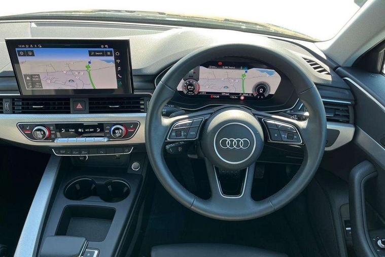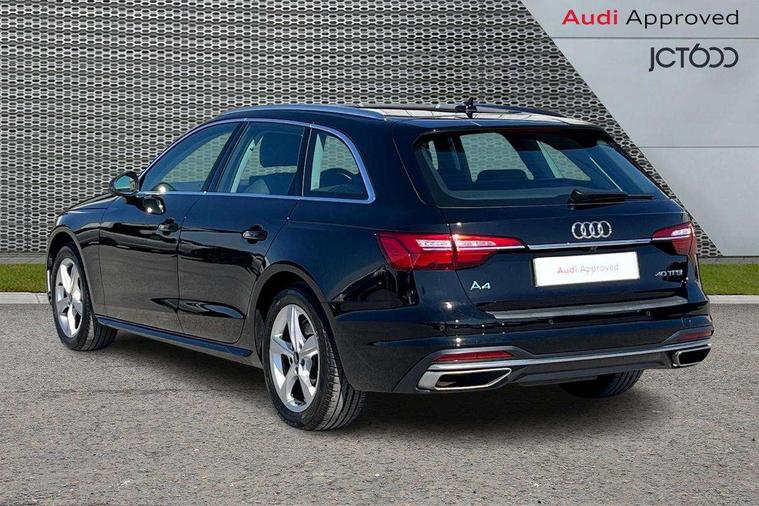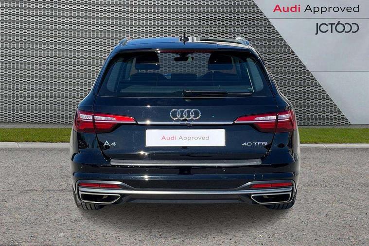 Audi connect safety and service (e-call), Audi drive select, Audi smartphone interface, Audi virtual cockpit, Automatic start-stop system with coasting functionality and efficiency programme, Bluetooth interface, Camera based traffic sign recognition, Electromechanical power steering, Email, calendar and text messages displayed via MMI, Front and rear parking sensors, Lane departure warning, MMI Navigation plus with MMI touch includes 10.1" high resolution colour MMI display, 3D map, Power operated tailgate, Rear view camera, Voice control system, 54 litre fuel tank, Comfort dynamic suspension, 2 USB charging ports, 8 passive loudspeakers, DAB digital radio reception, Aluminium roof rails, Auto dimming rear view mirror, Body colour door handles, Body colour side sill trim, Body coloured door mirrors, Electric adjustable/heated/folding door mirrors with auto dimming, LED headlights and rear lights with LED daytime running lights, LED third brake light, Matt aluminium silver tailpipe trim, Rain and light sensors, Rear side wing doors, Rear wiper, S Line roof edge spoiler, Sport front and rear bumpers with side skirts, Variable intermittent front wash/wipe, Windscreen with acoustic glazing, 3 spoke high multi-function leather sport steering wheel with paddle shift and height and reach adjustable, 4 way electric lumbar support for driver and front passenger, 40/20/40 split folding 3 rear seat bench in 3 parts with rear centre armrest, Black carpets, Contrast stitching on seats, steering wheel and gear lever gaiter, Deluxe 3 zone electronic climate control, Door sill trims with aluminium inlay, Electric load area cover, Front and rear head restraints, Front centre armrest, Heated front seats, ISOFIX child seat mounting and top tether, Manual seat adjustment, Single front passenger seat, Twin leather upholstery + front sports seats, High gloss package - A4, LED Interior light pack - A4/S4, 3 rear seatbelts, 6 airbags - Driver, front passenger, curtain and side windows, Attention and drowsiness assist, Electronic Stabilisation Control (ESC) including ABS, ASR and EDL, Hill hold assist, Multi collision brake assist, Pop-up bonnet for pedestrian protection, Pre sense city, Rear door child safety locks, Seatbelt monitoring, Warning triangle and first aid kit, Anti theft alarm, Anti theft wheel bolts, Central locking, Keyless Go, Aluminium ellipse silver inlays, Tool kit, Tyre repair kit,