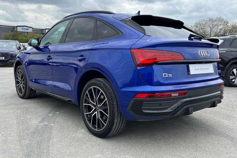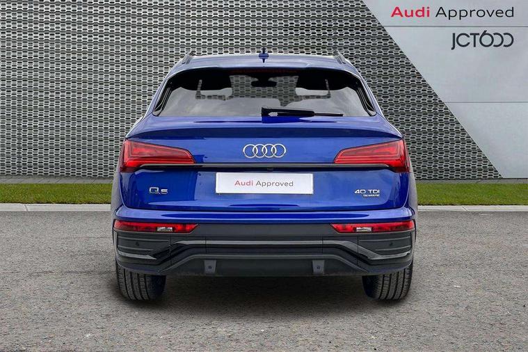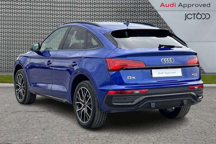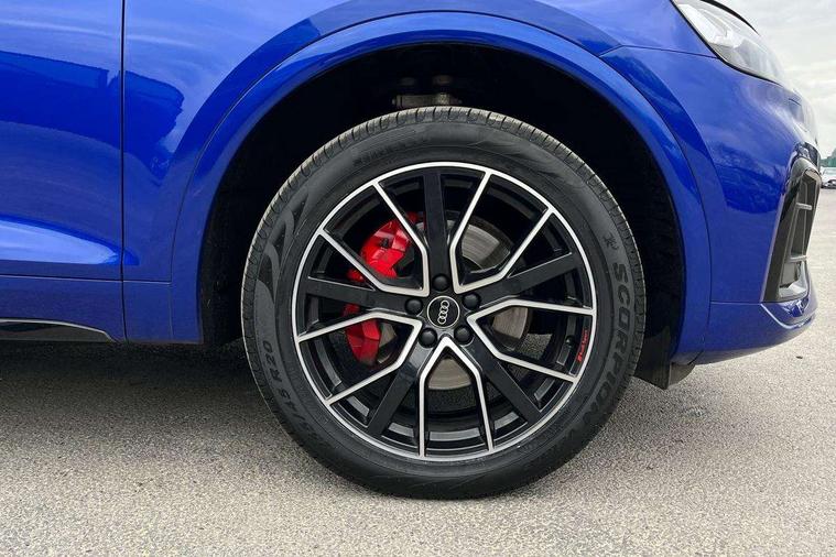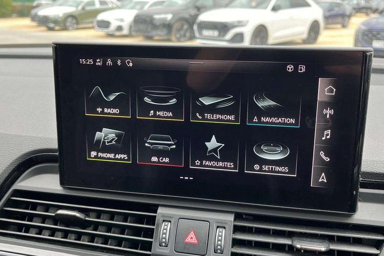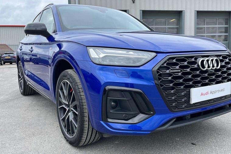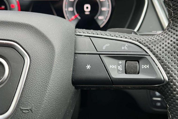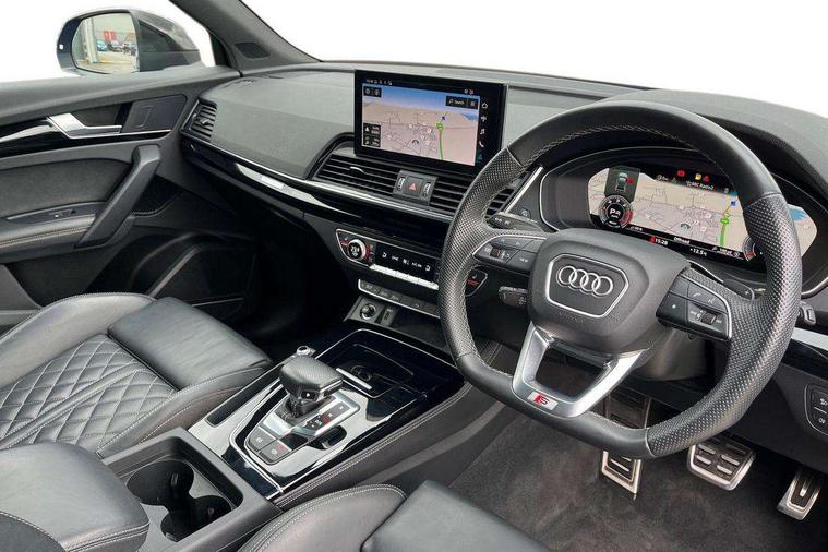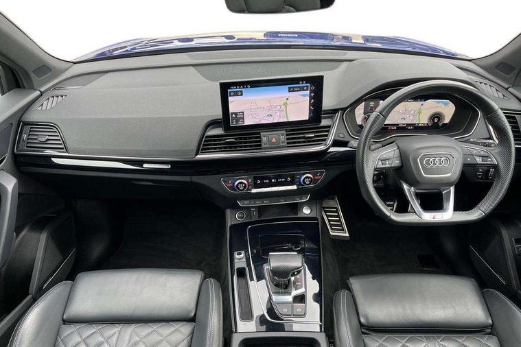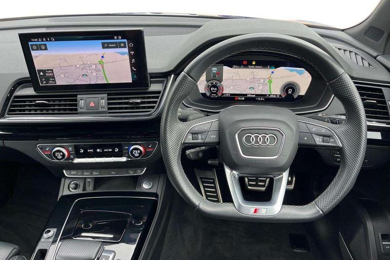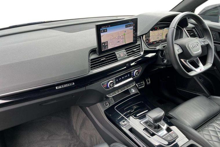 Audi connect safety and service (e-call), Audi connect with Amazon Alexa Integration, Audi drive select, Audi virtual cockpit plus with 12.3" screen and three different layout designs, Audi wireless smartphone interface, Automatic start-stop system with coasting functionality and efficiency programme, Bluetooth interface, Electro - mechanical power assisted steering, MMI navigation plus with 10.1" touch screen, Power tailgate, Reversing camera, Service interval indicator, Voice control system with Audi hotword activation "Hey Audi", Diesel particulate filter, Quattro on demand, S line sports suspension, DAB Digital radio, Acoustic windscreen, Audi beam with Audi rings logo, Audi matrix LED headlights with dynamic front and rear indicators, Audi rings at front and rear in black, Audi rings decal on rear doors, Auto dimming door mirrors, Auto dimming rear view mirror, Automatic headlights and windscreen wipers, Black door mirrors, Black roof rails, Body colour underbody protection, Chrome plated exhaust trims, Daytime running lights, Door sills in Selenite silver, Electric adjustable/heated/folding door mirrors, Front air inlet surrounds in aluminium, Front and rear electric windows, Headlight washers, High gloss black B pillar trims and triangular rear door trim, High level LED brake light, Rear chrome trim strip below lights, Rear privacy glass and rear side windows, Rear side wing doors, Rear spoiler, Rear wiper, Roof bars, Without model and engine badging at rear, 2 x USB charging port with aux input socket, 3 rear headrests, 4 way electric lumbar support for driver and front passenger, 40:20:40 split folding 3 rear bench seat in 2nd row with rear centre armrest, Black cloth headlining, Comfort front centre armrest, Contrast stitching on seats, steering wheel and gear lever gaiter, Deluxe 3 zone electronic climate control, Electrically adjustable front seats, Fine Nappa leather upholstery with diamond pattern contrast stitching + front sport seats with S embossed logo, Front head restraints, Front/rear floor mats, Gear lever in black leather, Heated front seats, Height/reach adjustable steering column, Illuminated door sill trims with S logo, ISOFIX child seat mounting and top tether, Rear seat bench plus, Removable luggage compartment floor, Single front passenger seat, Stainless steel pedals, Sunvisors with vanity mirrors, Trunk roller cover, Artificial leather pack - Q5, Black styling package - Q5 Edition 1, Extended LED Interior multi coloured Lighting Pack - Q5, 3 point seatbelts on all seats, 6 airbags - Driver, front passenger, curtain and side airbags, Electrically operated child locks on rear doors, Electromechanical parking brake, Electronic stabilisation control including ABS, ASR and EDL, Front and rear brake calipers painted in red, Front passenger airbag deactivation, Hill descent control, Hill hold assist, Multi collision brake assist, Pop-up bonnet for pedestrian protection, Pre sense city, Seat belt force limiter, Seatbelt monitoring, Tyre pressure warning, Warning triangle and first aid kit, Anti theft alarm, Anti-theft wheel bolts, Keyless Go access/ignition system, Remote central locking, Piano black finish inlay,