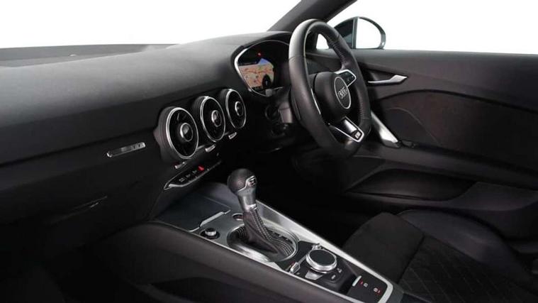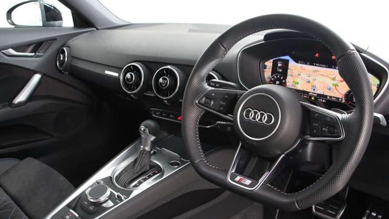 Audi drive select with 4 Pre configured modes, Audi smartphone interface, Audi virtual cockpit - 12.3" high-resolution LCD display with fully customisable instrument cluster, Cruise control + speed limiter, Emergency call service, MMI touch panel, Mobile phone preparation with bluetooth interface, Progressive power assisted steering, Service interval indicator, Start/Stop system with energy recuperation, TP memo, Sports suspension, AM/FM radio, Bluetooth audio streaming, DAB Digital radio, MMI Radio with CD player and SD/XC card slot, Auto dimming rear view mirror, Auto headlight range control, Black chrome tailpipe, Dark privacy glass from B-pillar backwards, Electric folding door mirrors, Electric front windows, Electrically adjustable and heated door mirrors with integrated LED side indicators, Front fog lights, Green tinted heat insulating glass, LED 3rd brake light, LED daytime running lights, LED headlights with LED rear lights + dynamic rear indicators, Light and rain sensors, Rear boot, Sunband for windscreen, 12V socket, 2 rear seats, 3 spoke flat bottomed high multi-function leather sport steering wheel with gearshift paddles, 4 way electric lumbar support for driver and front passenger, Black headlining, Contrasting silver stitching in steering wheel, Door sill trims, Extended aluminium look with stainless steel pedals, Front centre armrest, Front passenger seat, Front super sports seats, Heated front seats, Height adjustable driver's seat, Height adjustable front head restraints, Height/reach adjust steering wheel, ISOFIX child seat mounting for front passenger seat with airbag deactivation, Manual adjustment of seat height, fore/aft position, seat angle, seat depth and backrest angle, Perforated leather gearknob in black, Rear head restraints, Rear top tether child seat ISOFIX attachment, Split folding rear seat, Tool kit, Black styling pack - TT, Non smoking pack - TT/TT RS, 3 point front seat belts, ABS, ASR traction control, Curtain airbags, Driver and front passenger airbag with front passenger airbag deactivation, EDL traction control, Electromechanical parking brake, ESP, First aid kit, Front side airbags, Head airbags, Hill hold assist, Seatbelt warning, Tyre pressure loss indicator, Warning triangle, Anti theft alarm, Anti theft wheel bolts, Immobiliser, Keyless Go, Remote central locking, Matt brushed aluminium inlays, Tyre repair kit,