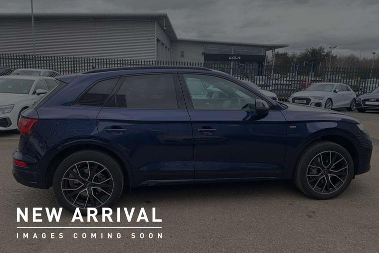 Acoustic front and rear parking sensor, Audi connect safety and service (e-call), Audi drive select, Audi virtual cockpit plus with 12.3" screen and three different layout designs, Audi wireless smartphone interface, Automatic start-stop system with coasting functionality and efficiency programme, Bluetooth interface, Camera based traffic sign recognition, Electro - mechanical power assisted steering, Lane departure warning, MMI navigation plus with 10.1" touch screen, Power tailgate, Reversing camera, Service interval indicator, Voice control system with Audi hotword activation "Hey Audi", Quattro on demand, S line sports suspension, 2 x USB charging port with aux input socket, 8 loudspeakers, DAB Digital radio, Acoustic windscreen, Auto dimming door mirrors, Auto dimming frameless rear view mirror, Automatic headlight adjustment, Automatic headlights and windscreen wipers, Black roof rails, Black styling with black rings, Body colour bumpers, Body colour rear diffuser with matt aluminium silver surrounds, Body colour underbody protection, Chrome plated exhaust trims, Daytime running lights, Door sills in Selenite silver, Electric adjustable/heated/folding door mirrors, Front air inlet surrounds in aluminium, Front and rear electric windows, Front radiator grille in honeycomb design, LED 3rd brake light, LED headlights and LED tail lights, Loading edge protection in stainless steel, Lower bumpers painted in contrast Manhattan grey, Rear chrome trim strip below lights, Rear privacy glass and rear side windows, Rear side wing doors, Rear wiper, Roof bars, S Line badges on the front wing panels, S Line front and rear bumpers, S Line rear spoiler, S Line side skirts, 3 rear headrests, Black cloth headlining, Comfort front centre armrest, Contrast stitching on seats, steering wheel and gear lever gaiter, Deluxe 3 zone electronic climate control, Front head restraints, Front sport seats with S embossed logo, Front/rear floor mats, Gear lever in black leather, Heated front seats, Height/reach adjustable steering column, Illuminated door sill trims with S logo, Luggage compartment cover, Manual seat adjustment with 4-way electric lumbar support, Single front passenger seat, Stainless steel pedals, Sunvisors with vanity mirrors, Top surface of the rear centre armrest in artificial leather, High gloss pack - Q5, LED interior light pack - Q5, 3 point seatbelts on all seats, 6 airbags - Driver, front passenger, curtain and side airbags, Attention and drowsiness assist, Electrically operated child locks on rear doors, Electromechanical parking brake, Electronic stabilisation control including ABS, ASR and EDL, First aid kit with warning triangle and vests, Front passenger airbag deactivation, Hill descent control, Hill hold assist, ISOFIX child seat mounting for front passenger seat and ISOFIX child seat mounting with Top Tether for outer rear seats, Multi collision brake assist, Pop-up bonnet for pedestrian protection, Pre sense city, Seatbelt monitoring, Tyre pressure warning, Anti theft alarm, Anti-theft wheel bolts, Remote central locking, Remote control key with SAFELOCK and keyless go, Air vents inserts and centre console in gloss black, Tool kit, Tyre repair kit,