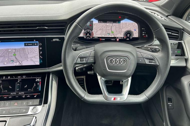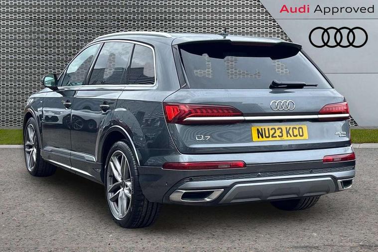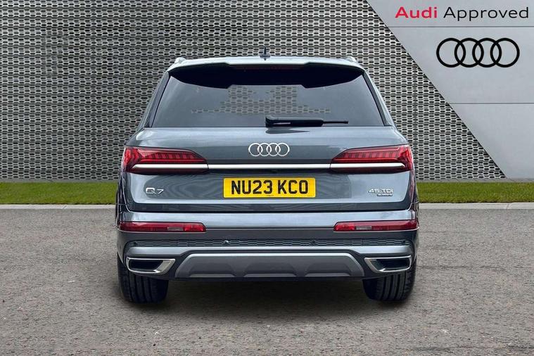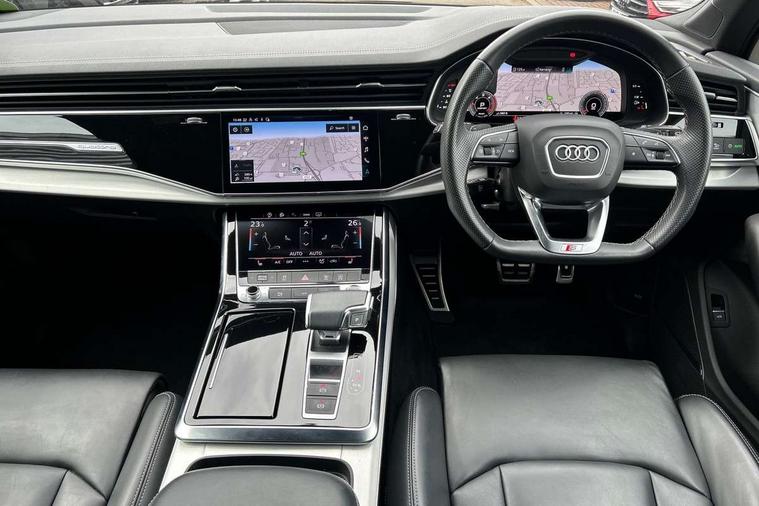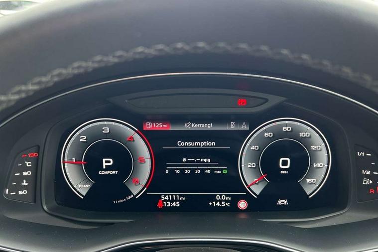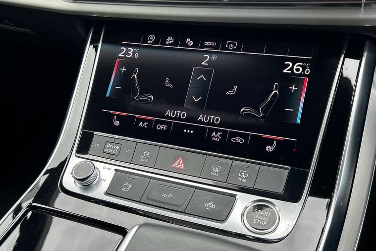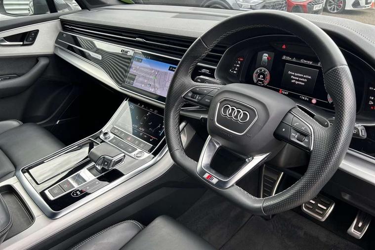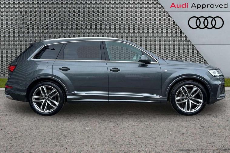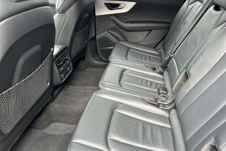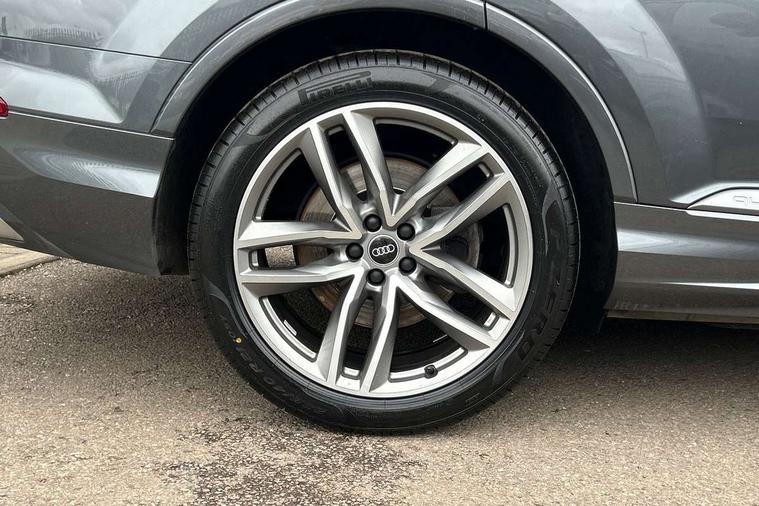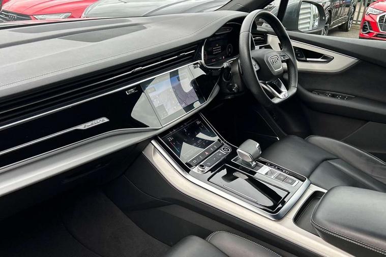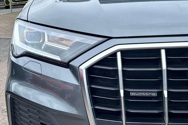 Audi connect safety and service (e-call), Audi connect with Amazon Alexa Integration, Audi drive select (Auto, Comfort, Dynamic, Individual, Off-road and All road), Audi smartphone interface includes wireless Apple carplay/Android Auto, Audi virtual cockpit - 12.3" high-resolution LCD display with fully customisable instrument cluster, Bluetooth interface, Camera based traffic sign recognition, Electromechanical steering, MMI navigation plus with MMI touch screens includes 10.1" and 8.6" screens with haptic feedback, Natural voice recognition, Parking system plus with 360 degree display (front, rear and side sensors) - acoustic and visual park assist system, Power operated tailgate, Rear view camera, Start/stop system, 48V Mild hybrid technology, Adaptive air suspension, Quattro all wheel drive with self locking centre differential, Audi music interface - front 2 USB-C ports with charger and data functions, Audi sound system with 6 channel amplifier, 180 watt amplifying capacity and 10 loudspeakers including subwoofer, DAB digital radio module, 3rd brake light, Aluminium roof rails, Aluminium window trim, Auto dimming frameless rear view mirror, Body coloured door mirrors, Dark tinted Matrix LED headlights with dynamic front and rear indicators, Electrically adj heated/folding + automatically dimming exterior mirrors with memory + automatic kerb side function for passenger side exterior mirror, Heat insulating glass in windshield, Integrated LED indications in door mirrors, LED daytime running lights, LED rear tail lights, Privacy glass - dark tinted rear and rear side windows from B-pillar backwards, Rear side wing doors, Rear wiper, S Line badge on wings, S line bumpers in full body colour paint finish, S line roof spoiler, S line styling side ventilation grilles and side skirts, 2 seat bench in 3rd row, 2 zone automatic climate control, 3 seat bench in 2nd row, 7 seat layout with ISOFIX points for the front passenger seat and rear passenger seat, Black cloth headlining, Comfort front centre armrest, Electric adjustable front seat with 4 way lumbar support, driver memory functionality, Folding rear seats, Front head restraints, Front/rear floor mats, Heated front seats, Illuminated door sill trims with S logo, LED interior ambient lighting, Luggage compartment cover, Luggage compartment sill protection in stainless steel, Rear head restraints, Single front passenger seat, Stainless steel pedals, Sunvisors with illuminated vanity mirrors, Tool kit, 3 point seatbelts on all rear seats, Audi pre sense front, Child locks on rear doors, Driver and front passenger, front side and curtain airbags, Electromechanical parking brake, Electronic Stabilisation Control (ESC) including ABS, ASR and EDL, Extended pedestrian protection measures, Hill hold assist, Seatbelt monitoring, Tyre pressure loss indicator, Warning triangle and first aid kit, Anti theft alarm, Anti-theft wheel bolts and wheel loosening detection, Keyless Go, Remote central locking, Darkened matt brushed aluminium inlays, Tyre repair kit,