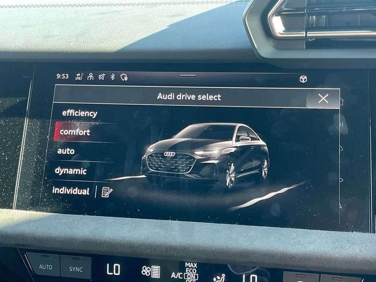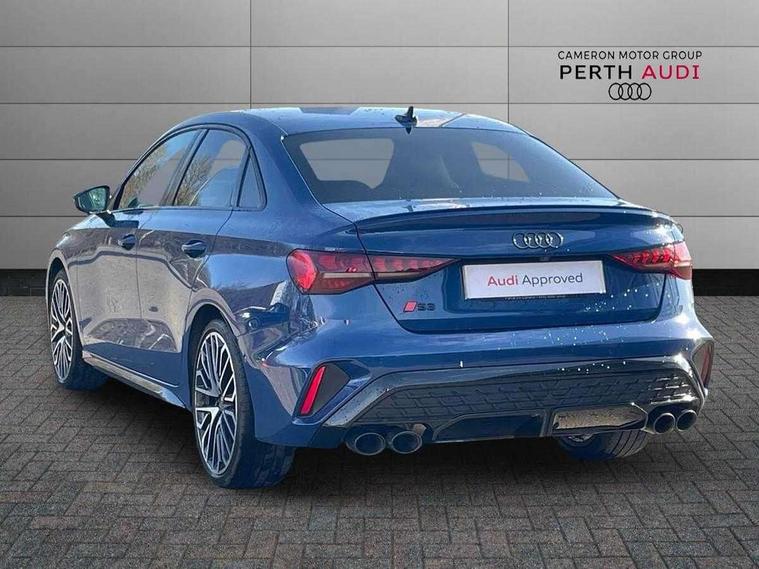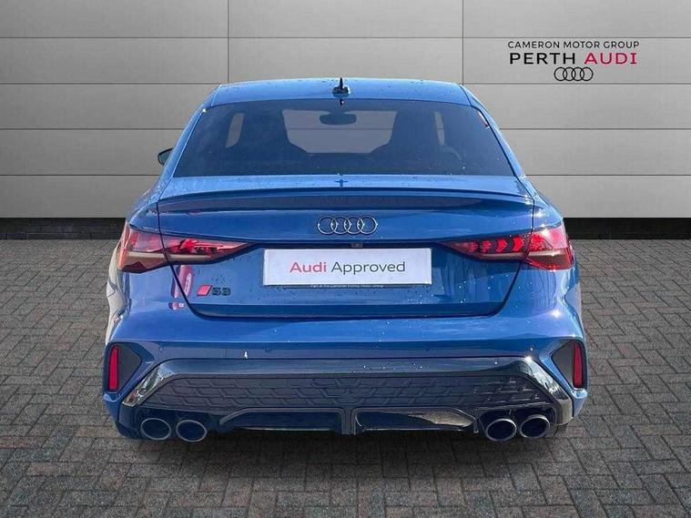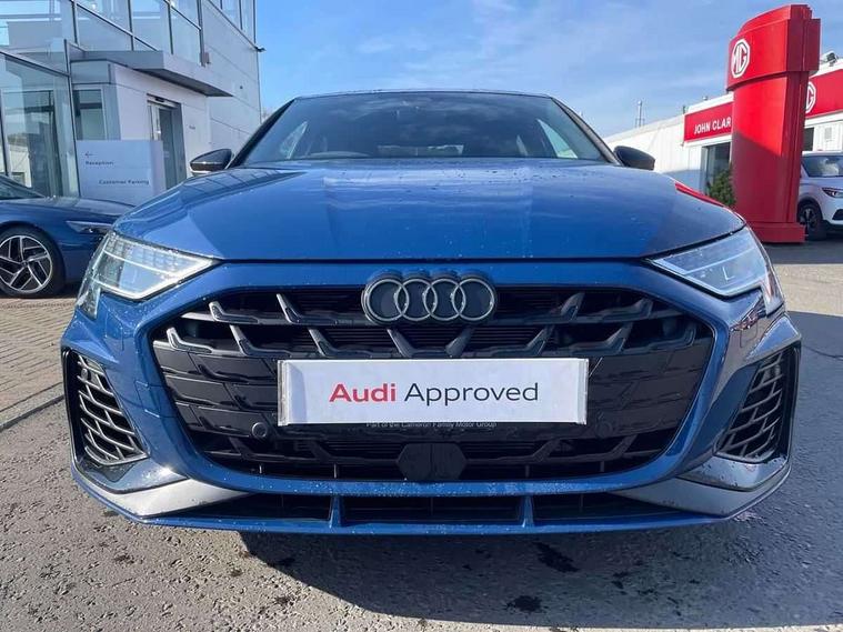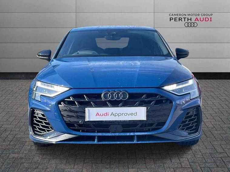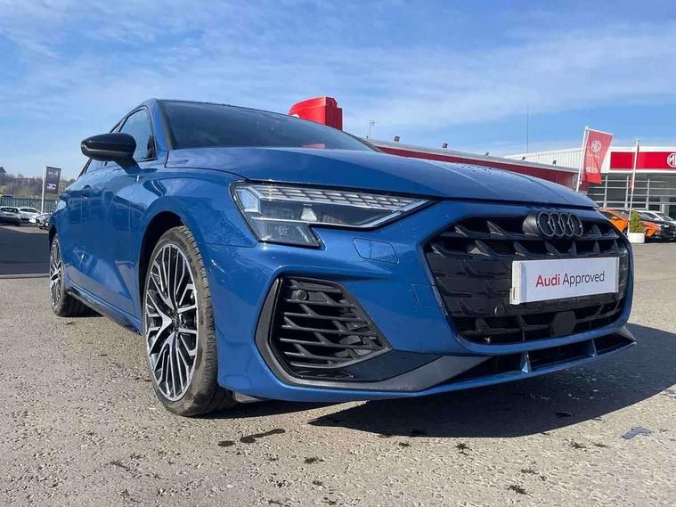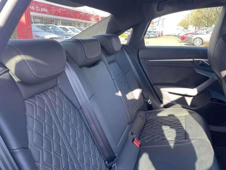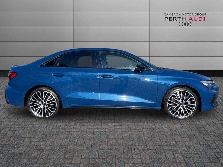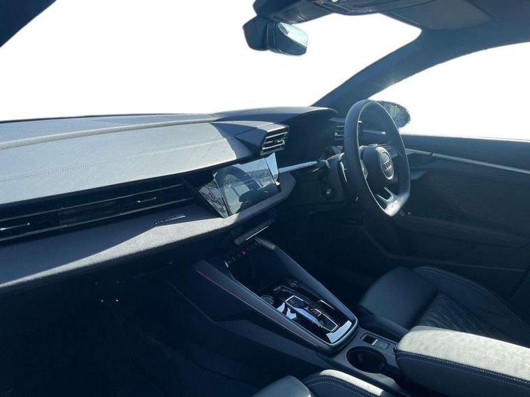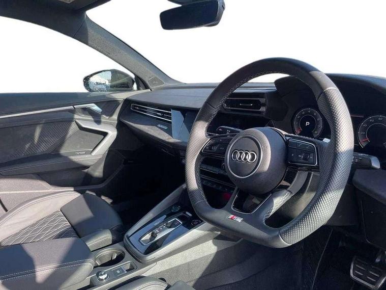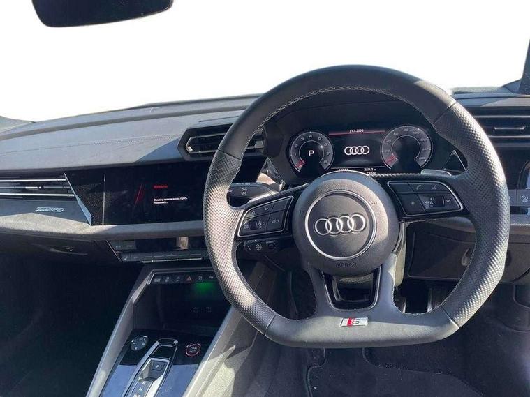 Adjustable speed limiter, Audi drive select, Audi smartphone interface with app store includes wireless Apple carplay, Android auto and Amazon alexa integration, Audi virtual cockpit plus - 12.3" full HD resolution dynamic digital instrument cluster, Automatic start/stop system with recuperation, Bluetooth interface, Camera based traffic sign recognition, Collision avoidance assistant, Distraction and Fatigue warning, e-Call (emergency call), Electromechanical power speed sensitive steering, Lane departure warning system, MMI Navigation Plus with high resolution 10.1" colour touch screen display, Park Assist with parking system Plus, Progressive steering, Service indicator, Trip computer, Voice control system with natural language interaction, S sport suspension with spring damper adjustment and lowering by 15mm, Audi Phonebox light with wireless charging, DAB Digital radio, USB ports with charging function in the rear, Anthracite grey Audi rings (front and rear), Audi Beam uses LEDs to project the rhombus S logo onto the ground as you exit your S3, Auto dimming frameless rear view mirror, Black accents front and rear bumpers including air inlets, Black accents in front grille and frame, Black accents window trims strips, Electrically adjustable/heated/folding/dimming door mirrors with kerb view includes integrated LED indications + kerb view function for passenger side, Exterior model badging, Front electric windows, Headlight washers, Heat insulating glass windscreen, Illuminated door sills with aluminium inserts at the front with S logo, LED 3rd brake light, LED daytime running lights, LED headlights with LED rear lights and dynamic rear indicators, Light and rain sensors, Privacy glass - dark tinted rear window, rear door and side windows, Rear boot, Rear electric windows, Rear side wing doors, S grille, S3 front bumper with S specific air intake grilles, 12V socket and storage compartment in front centre console, 3 seat bench in 2nd row, 3 spoke flat bottomed leather multifunction sport steering wheel with gear shift paddles, 3-zone deluxe automatic air conditioning, 4 way electrically adjustable lumbar support for driver and front passenger, 40/20/40 split folding rear seat bench, Black cloth headlining, Fine Nappa leather upholstery with front sports seats S embossed logo, Front and rear centre armrest in artificial leather, Front and rear headrests, Front/rear floor mats, Heated front seats, Manual boot compartment lid, Manually adjustable front seats, Rear cup holders, S badging on the steering wheel, Seat side bolsters, Single front passenger seat, Stainless steel pedals and front footrest in black, Aluminium interior elements pack - A3, Extended ambient lighting package Pro - S3 Black edition, Storage package - A3 Saloon, Technology package - A3, 3x3 point rear seat belts, Driver and front passenger airbag with passenger airbag deactivation, Electronic Stabilisation Control (ESC) including ABS, ASR and EDL, First aid kit with warning triangle and 2 safety vests, Front side airbags with head airbags and interaction airbag, Hill hold assist, Pre-sense front with pedestrian and cyclist detection, Seatbelt monitoring, Tyre pressure loss indicator, Anti theft alarm, Anti-theft wheel bolts, Electronically operated child locks, Immobiliser, Remote central locking with safelock, Inlays in black dynamica microfibre, Tyre repair kit,
