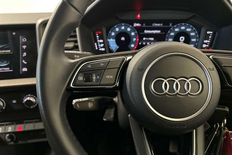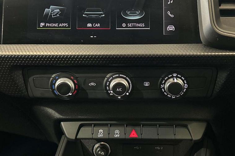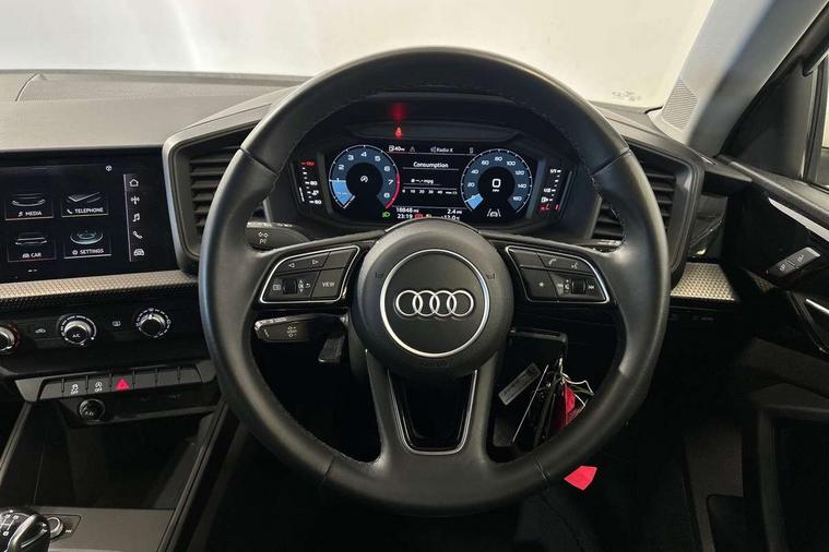 10.25" Digital instrument cluster display classis style instrument dials + speed, odometer, time, outside temperature, telephone menu + fuel level warning, Audi smartphone interface with connect compatible smartphone via USB directly MMI display + Nav, music, third party apps controlled via MMI controller, Automatic start/stop system, Bluetooth interface, Driver's information system, Electromechanical power steering, Emergency e-call, Emergency services call system, Lane departure warning system, Service interval indicator, Speed limiter, Voice control system, Washer fluid level indicator, Dynamic suspension, 1 x SDXC card reader, 2 x USB type C connection points, 6 passive loudspeakers, DAB Digital radio, MMI radio plus with 8.8" colour MMI display screen and MMI touch, Auto dimming rear view mirror, Body coloured bumpers, Body coloured door mirrors, Electric front and rear windows, Electrically adjustable, heated, folding door mirrors with integrated LED side indicator, Front side air inlets with front spoiler lip and rear diffuser in matt black grained, Heat insulating glass windscreen and side windows, Heated rear windscreen, High level LED brake light, LED headlights with LED rear lights + dynamic rear indicators + headlight adjustment and high beam, turning light + LED daytime running lights, Radiator grille in matt black, Rain and light sensors, Rear fog lights, Rear side wing doors, Rear wing door, Rear wiper, 12V socket in centre console with two cup holders, 3 rear seats with headrests, 3 seat bench in 2nd row, 3 spoke leather multifunction plus steering wheel, 40:60 Split folding rear seat or folded fully, Air vents, door handle recesses and centre console in black, Delta cloth upholstery, Driver and passenger seat with manual height adjust with forward and backwards adjustment, Front head restraints, Front passenger seat, Front/rear floor mats, Height and reach adjustable steering wheel, ISOFIX child seat mounting for front passenger and outer rear seats including top tether attachment point of outer rear seats, Leather gear knob with aluminium trim, Leatherette handbrake grip, Luggage compartment light with front and rear reading lights, Manual air conditioning, Titanium grey cloth headlining, Luggage compartment pack - A1, 3x3 point rear seatbelts, Audi pre-sense front with pedestrain and cyclist recognition, Brake assist function, Driver and front passenger airbag with front side and head airbags, Electronic Stability Control including ABS, EBD, ASR and EDL, Front passenger airbag deactivation switch, Hill hold assist, Manual rear child locks, Seatbelt height adjustment for front seats, Seatbelt monitoring, Tyre pressure warning light, Warning triangle and first aid kit, Anti theft alarm, Anti theft wheel bolts and loose wheel warning, Immobiliser, Remote central locking with 2 foldaway keys, Black inlays polygon structure, 15" 5 arm design alloy wheels,