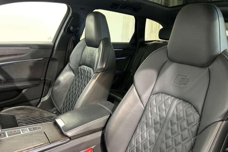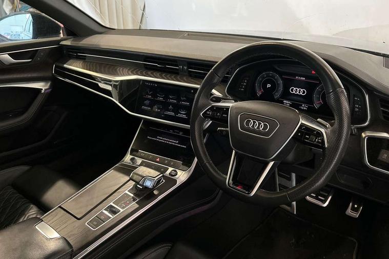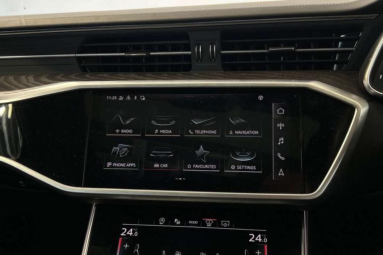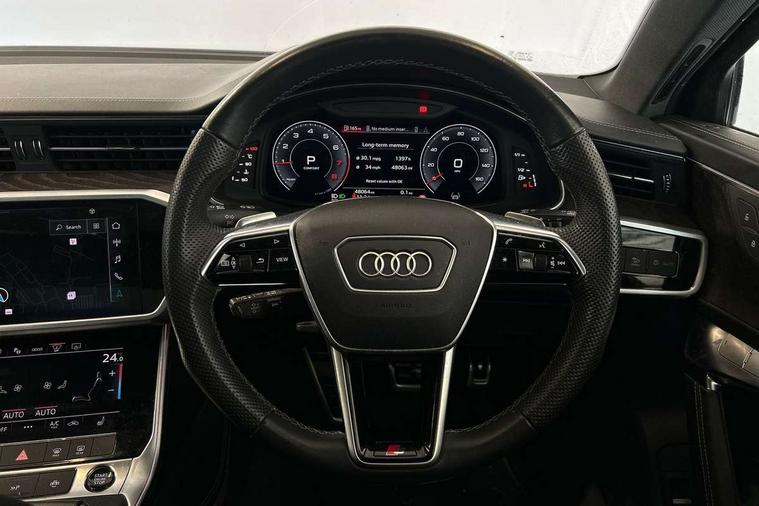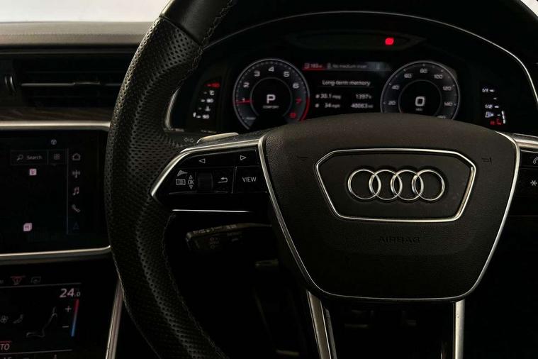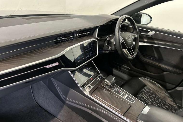 7" high resolution colour driver information display system, Audi connect safety and service (e-call), Audi connect with Amazon Alexa Integration, Audi drive select, Automatic start/stop system with coasting functionality, Bluetooth interface, Dynamic all wheel steering, Head up Display, Lane departure warning system, Power door closure, Power operated tailgate, Service interval indicator, Smartphone interface includes wireless Apple carplay/Android Auto, Voice control system, 12V Mild hybrid, Quattro on demand, Suspension with damping control, 2 USB-C ports with charging functionality in the rear, Audi front music interface, Auxiliary input socket, DAB Digital radio, USB connection, Adaptive windscreen wipers with integrated washer jets, All weather LED headlights, Aluminium roof rails, Audi beam projecting the word Vorsprung onto the floor from the driver and front passenger doors, Electric front/rear windows, Frameless auto dimming interior rear view mirror, Front intermittent wipers, Gloss black finish for the exterior audi rings without model and engine badging, Gloss black highlights on the front and rear bumpers, Headlight washers, Heat insulating darkened glass in side and rear windows, Heat insulating glass in windshield, Integrated LED indicators in door mirrors, LED rear lights, LED signature front daytime running light, LED third brake light, Matt black rear diffuser with diffuser strip and tailpipes in chrome, Matt black side air intake grille with inlay in matt aluminium, Panoramic opening glass sunroof, Privacy glass, Radiator grille in titanium black matt, single frame in chrome and horizontal struts in matt aluminium silver, Rain and light sensors, Rear roof spoiler, Rear side wing doors, Rear wiper, 3 spoke sport leather steering wheel with multifunction, shift paddles and steering wheel heating, 4 way electric lumbar support for driver and front passenger, 4 zone deluxe automatic climate control, 40/20/40 split folding 3 rear seat bench in 3 parts with rear centre armrest, Black cloth headlining, Black front and rear carpet floor mat, Black steering wheel insert, Electric adjustable steering column, Electrically adjustable front seats with driver memory, Front centre armrest, Front head restraints, Heated front and rear seats, Height/reach adjust steering wheel, Illuminated door sill trims with S logo, Illuminated sun visors with vanity mirrors, ISOFIX child seat mounting and Top Tether with front passenger airbag deactivation, Leather gear knob, Luggage compartment system, Rear headrests, Single front passenger seat, Stainless steel pedals and foot rest, Valcona Leather with S embossing + front super sport seat + dinamica door insert, City assist pack - A6, Comfort and sound pack - A6, Full leather pack - A6, Non smoking pack - A6, Technology pack - A6, Tour pack - A6, 3 point seatbelts on all seats, Airbags - Front side, front and rear including head, Audi pre-sense front, EBD - Electronic brakeforce distribution, Electromechanical parking brake, Electronic Stability Control (ESC) including ABS, ASR and EDL, Extended pedestrian protection measures, Manual child proof rear door locks, Seatbelt monitoring, Tyre pressure warning light, Warning triangle and first aid kit, Anti theft alarm with tow away protection, Anti-theft wheel bolts and wheel loosening detection, Immobiliser, Remote central locking, Black seatbelts, Fine grain ash natural grey brown upper inlay,