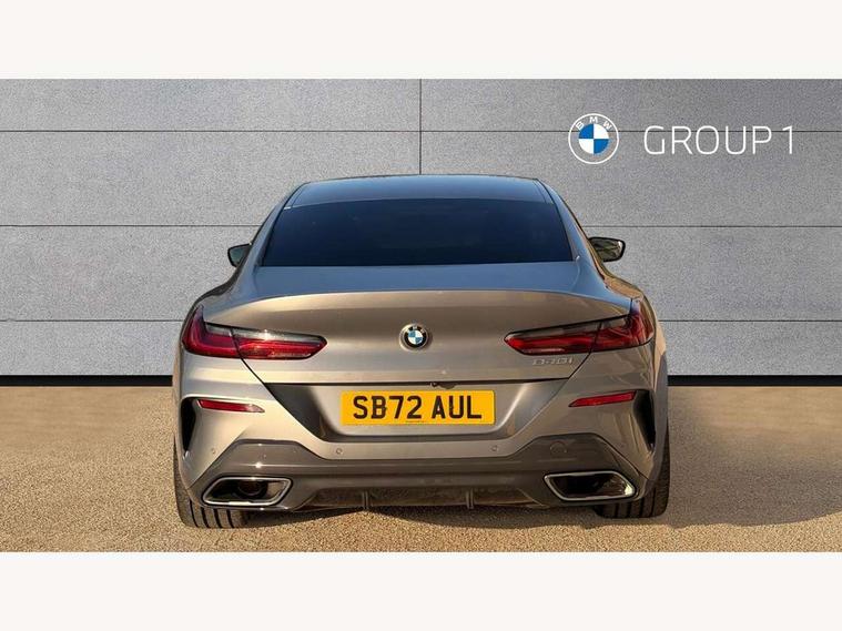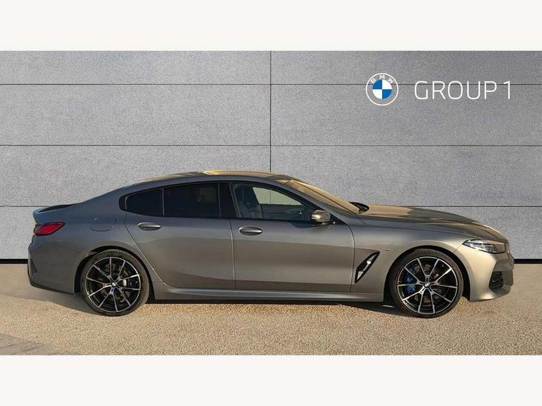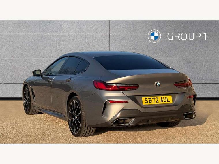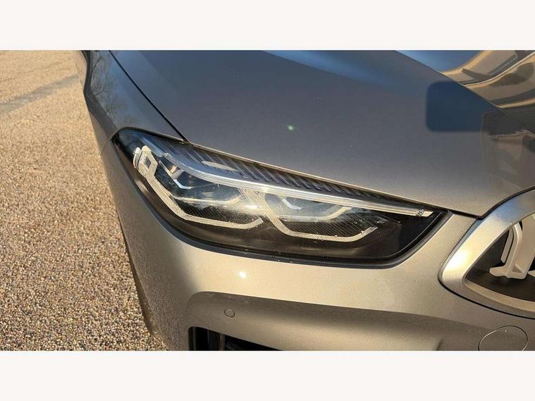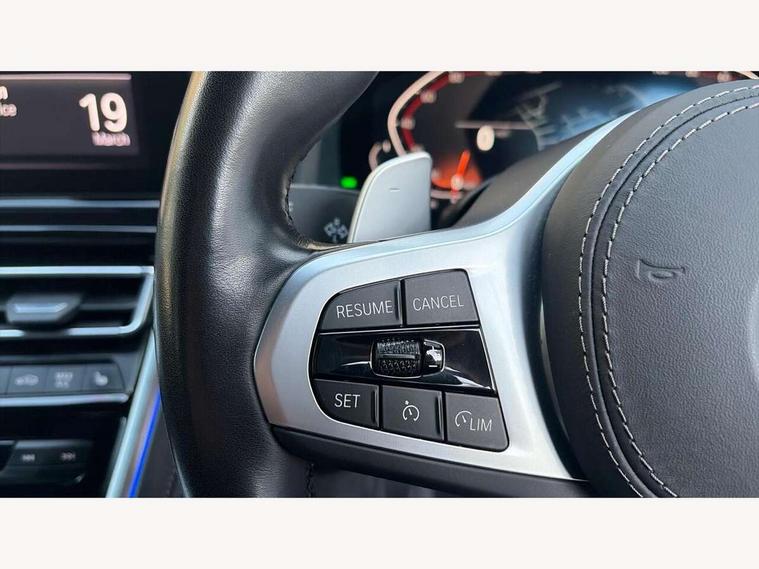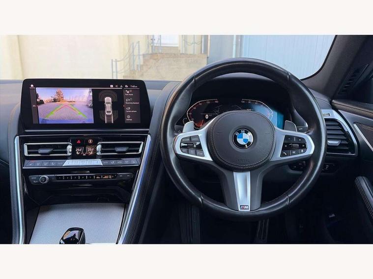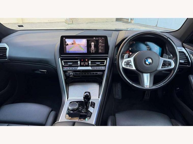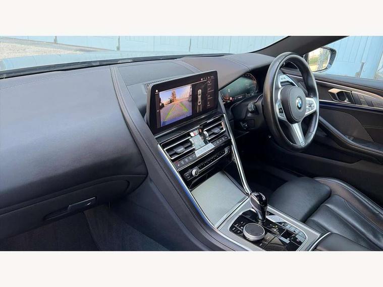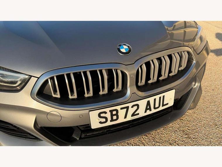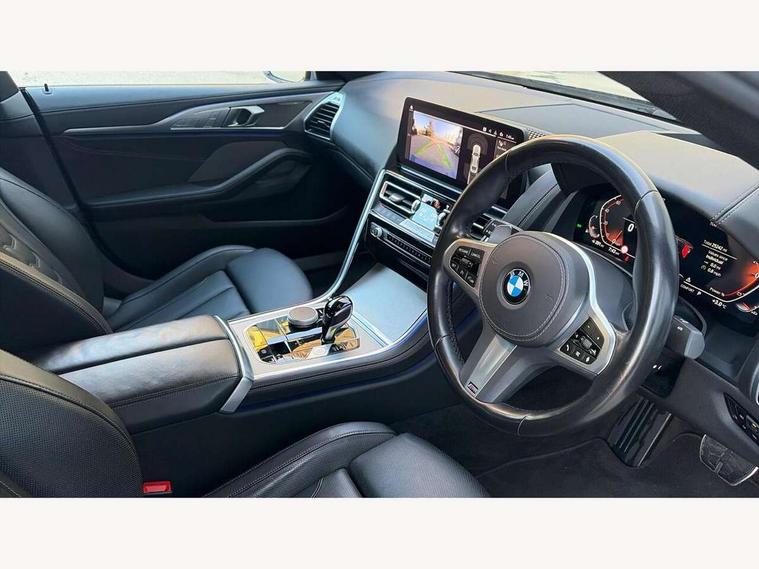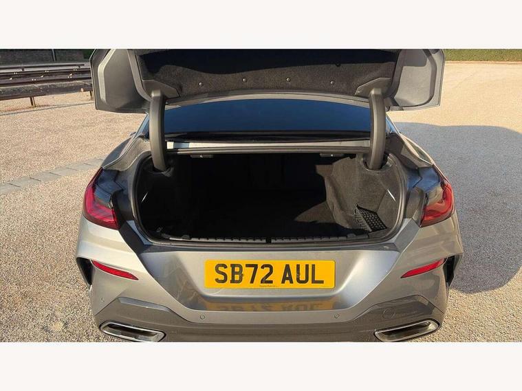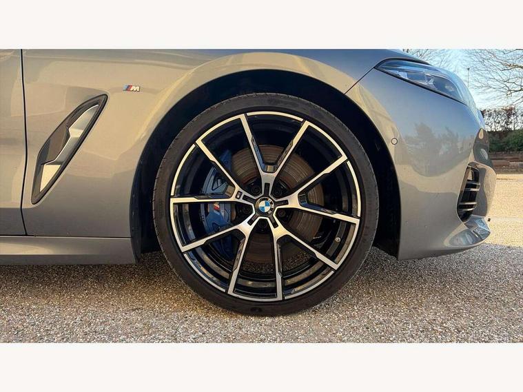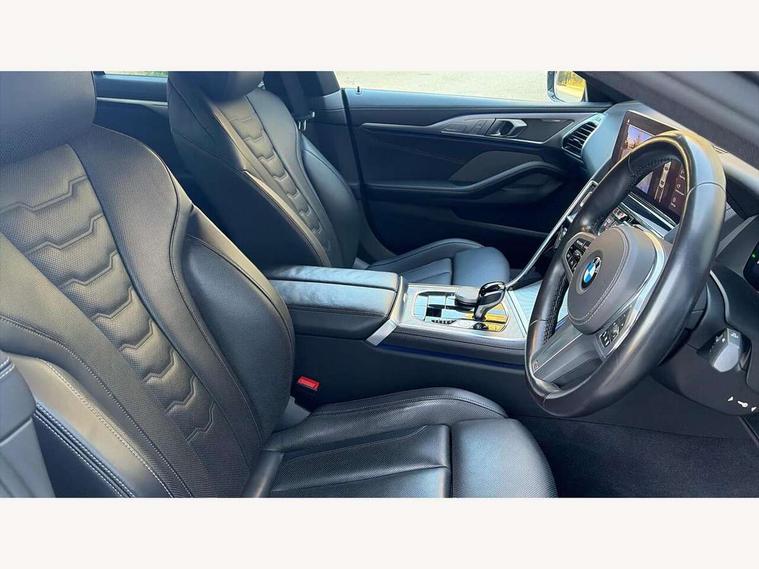 Automatic tailgate operation, remote opening with key, closing by tailgate button or remote control including tailgate in LED technology, Bluetooth hands free facility with USB audio interface, voice control and enhanced bluetooth + Wireless charging, BMW ConnectedDrive online services, BMW legal emergency call, BMW Teleservices, Brake pad wear indicator, Check control system, Condition based service, Drive experience control with Sport, Comfort, Eco Pro and Adaptive modes, Electric bootlid, Head up Display, iDrive controller with shortcut buttons, Instrument and upper door panel in walknappa leather, Integrated owners handbook, Light on warning, Oil sensor for level and grade, On board computer, Outside temperature display, Run flat indicator, Service interval indicator, Servotronic system, Speed limiter, Wi-Fi hotspot, Adaptive M suspension, Double wishbone front axle, Dynamic Damper Control, Eight speed sport automatic transmission, M Sport differential, Petrol Particulate Filter, Sport exhaust system, DAB Digital radio, Favourite buttons, Air breather inlay in pearl chrome, frame in black high gloss, Automatic windscreen wipers and automatic headlight, Carbon core, Climate comfort windscreen, Daytime driving lights front and rear active, Dynamic brake lights, Exterior mirrors - Floating design mirror, electric adjust/heated/folding, aspherical, Follow me home headlight function, Frameless interior mirror, Front and rear bumper system with replaceable deformation elements, Front electric windows, Front ornamental grille with kidney grille bars, Heat protection, sun protection glazing, Heated rear window, glass, Heated windscreen washer jets, High beam assistant, Illuminated door handles, Illuminated radiator grille iconic glow, LED rear lights, M emblem on front side panel in light chrome, Model logo on right tailgate, Radiator grille frame in pearl chrome, Radiator grille struts in aluminium matt, Rain sensor and automatic driving lights control, Rear boot, Rear side wing doors, sDrive designation on left tailgate, Sun protection glass, Thermally insulated windscreen, Third LED technology brake light in rear window, Welcome lights in interior and door handle area, Window frame and mirror base in black high gloss, 2 cup holders in front, 2 rear head restraints, 2 X front 12v power sockets, 3 spoke M sport leather multifunction steering wheel with shift paddle, 4 zone control automatic air conditioning, 5 seats, 50/50 split folding rear seat, Ambient light with dynamic interior light, BMW ID, Front and rear seat heating, Front centre armrest with light, 12V socket and USB and storage compartment, Front door pockets, Front entry lights doors, Front reading lights, Front sun visors with ticket holder and illuminated mirror, Interior lighting - Interior light front centre above interior mirror, luggage compartment light, automatic interior light system soft on/soft off, Lashing eyelets, Lockable glove compartment with light, Microfilter and active carbon filter, Steering column with adjustable height and length and activation via control on the steering column, Through loading function, BMW Live cockpit professional pack - 8 Series, Connected professional pack - 8 Series, Exterior items pack - 8 Series, M sport exterior styling aerodynamics pack - 8 Series, 18" M Sport braking system with blue painted brake calipers, 3x3 point rear seatbelts, ABS/EBD, Active protection, Airbags - Driver and front passenger airbag with seat occupancy detection, knee, side and front passenger seat airbag deactivation, Brake discs, compound structure, Child locks on rear doors, Cornering brake control (CBC), Crash sensor activating central locking release, hazard warning lights, fuel cut off, interior lighting, safety battery terminal clamp and airbags, DSC - Dynamic Stability Control, Dynamic brake control, Dynamic Traction Control - DTC, Electromechanical parking brake with automatic drive away release and auto hold function, Front three point with pyrotechnical belt latch tensioner seat belts, belt force limiter and belt stopper, Head airbags for 1st and 2nd seat row, Hill start assist, Integrated brake system, ISOFIX child seat mounting for the two outer rear seats, Rear three point with pyrotechnical belt latch tensioner seat belts and belt force limiter, Side impact protection, Tyre pressure monitoring system (TPMS), Warning triangle and first aid kit, Alarm system (Thatcham 1) with electronic engine immobiliser, Centre lock switch, Closing system with central locking, Comfort access system, Keyless entry with start/stop button, Locking wheel bolts, Vehicle key with exclusive M designation,