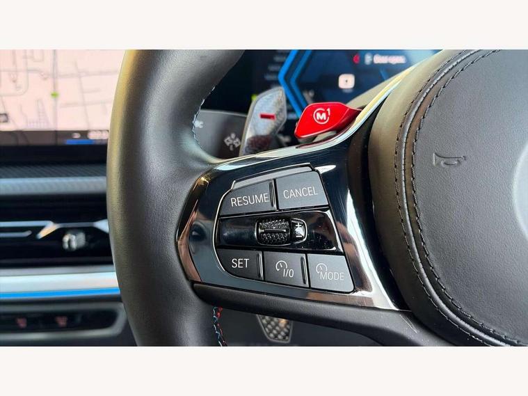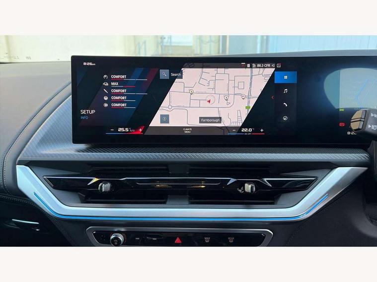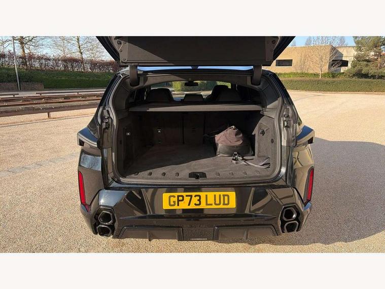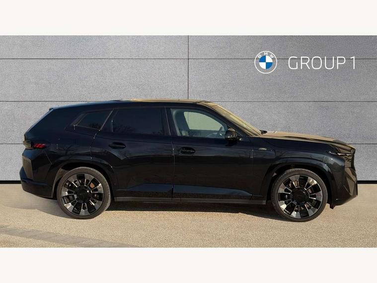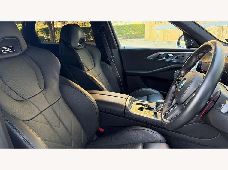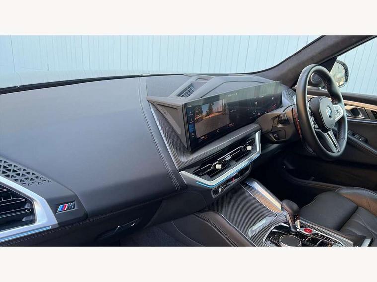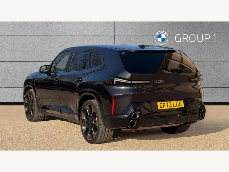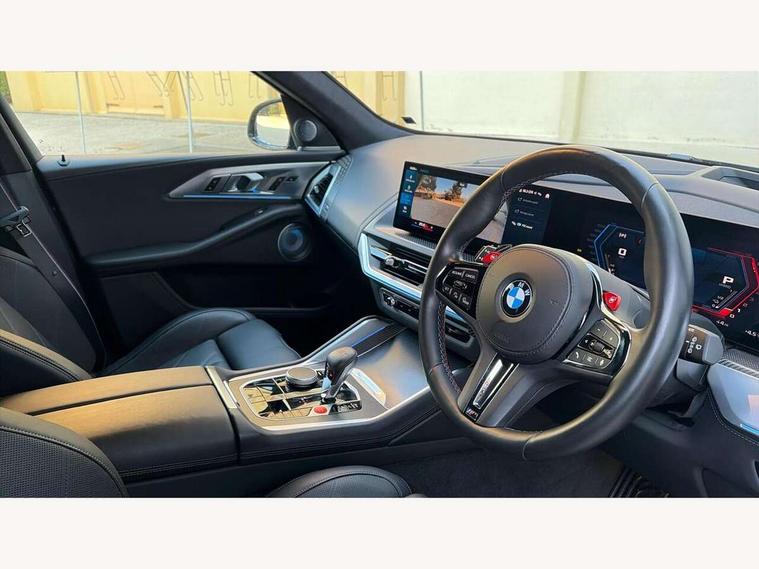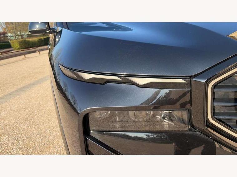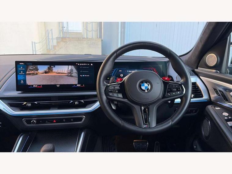 Attentiveness assist, Automatic tailgate operation, BMW gesture control, BMW legal emergency call, BMW Live Cockpit Pro with headup display, Navi, voice control, 12.3" instrument cluster, 14.9" control display, 3rd party app, bluetooth, Wi-Fi, BMW Teleservices, Brake pad wear indicator, Concealed underneath bonnet, Condition based service, Connected eDrive Services, Front/rear Parking distance control, Integrated owners handbook, Parking assistant plus with 360 degree surround view camera, remote 3D view, driver recorder and remote theft recorder, PAS, Speed dependent regulation with variable steering gear ratio, Stop/start button, 7.4 kW onboard charger, AC/DC charging, Adaptive M suspension professional, Electric drive unit, Fast charging cable professional mode 3 for public charging, High voltage battery, M Sport differential, M xDrive system, Sport exhaust system, Steptronic transmission with gearshift paddles on steering wheel, BMW iconic sound electric, DAB Digital radio, Personal eSim, Adaptive LED Headlights with Low beam and high beam headlight function, Auto dimming driver's door mirror, Automatic cornering lights, Automatic windscreen wipers and automatic headlight, BMW kidney Iconic Glow, Charging flap, Door locking - after driving off to secure vehicle, Electric windows - front and rear, with open/close fingertip control and trap release, Exterior centre air inlets in front bumper in black high gloss, Exterior mirror housings in black, Exterior mirrors with automatic parking function, Frameless interior mirror, Green tinted windows, Headlight range control, Heated windscreen washer jets, High beam assistant, High gloss black rear diffuser, LED daytime running lights, LED side lights, LED third brake light in rear spoiler, Light staging (welcome and goodbye), M specific electrically adjustable/foldable/heated exterior mirrors with integrated direction indicators, Mirror triangle with mirror base in black, Prism optics door handle insert in black high gloss, Radiator grille struts in black high gloss, Rain sensor, Rear reflector (left and right) integrated into bumper, Rear side wing doors, Rear window single layer safety glass, Rear wiper, Roof trim strips in black high gloss, Side window graphic including black band in night gold with XM badge, Sun protection glazing, Tailgate without BMW logo, Trailer stabilisation logic, Two lasered BMW logos in upper left and right of rear window, Two part led rear light with brake light and turn indicator in both parts, Two part radiator grille frame in night gold, Two rear design trim element in night gold, Wheel well cover and cladding in black high gloss, Windscreen and side window laminated safety glass, XM badge in left side radiator grille, 12V power socket in front centre console, 12V power socket in luggage compartment on right, 12V power socket in rear centre console, 1x USB Type A port in area of cupholder (charging with 1.5 A and data transfer), 1x USB Type C port for charging in armrest storage compartment, 2 x USB Type C ports for charging in rear centre console, 3 bench rear seats in 2nd row, 3 rear headrests, 3 spoke M leather steering wheel, 4 lashing eyes in luggage compartment, 40/20/40 split folding rear seats with backrest, 6 pre-defined selectable light designs in various colours with contour and ambient lighting, Adjustable front head restraints, Ambient centre stack lighting, Ambient door panel lighting and unlocking, Ambient door pocket lighting, Ambient headliner lighting, Ambient instrument panel lighting, Anthracite Velour front and rear floormats, Armrest - front and rear integrated door trim, centre console includes storage compartment, rear centre includes 2 cupholders, Backrest rear panel with folding pockets, BMW ID, BMW XM exclusive charging cable pocket in luggage compartment, Brushed/polished aluminium inserts in entry sills, Child seat ISOFIX attachment for the outer seats incl upper retaining strap, Contour instrument panel lighting, front centre console, door panel front and rear, Courtesy lights in tailgate, Cup holders (2 front and 2 rear), Door pockets with bottle holder, Driver and front passenger alcantara sun visors with illuminated vanity mirror and ticket holder, Driver and front passenger illuminated vanity mirrors, Driver/front passenger reading lights, Dynamic function of contour lighting, Four zone automatic air conditioning, Front and rear ambient footwell lighting, Front and rear door exit lighting (left / right), Front and rear Illuminated M logo in entry sills, Glove compartment lighting, Grab handle in front and rear outer seats integrated in roof lining at rear with coat hooks, Heated and cooled cupholders, Illuminated armrest handle, Illuminated M logo on headrestraints, LED ambient lighting for centre console, Lockable glove compartment, Luggage compartment lighting strips, M electric front sport seats includes electrical seat adjustment with memory, lumbar support and M embossing on headrests, Multifunction steering wheel, Nano filter, Non foldable rear headrests, Outer rear headrests height adjustable, Rear centre head restraint not adjustable, Rear reading lights, Side marker reflector in lamella look integrated into tail light, Single front passenger seat, Soft close function for doors, Stationary cooling, Storage tray and compartment with lid in centre console, Two outer side adjustable head restraints in 2nd row, Two part parcel shelf in luggage compartment, Wireless charging tray, Comfort pack - XM, Connected package professional - XM, M Aerodynamic package - XM, Travel and comfort system pack - XM, 3 point seatbelts on all 3 rear seats, Acoustic protection for pedestrians, Active protection, Airbag - Front driver and passenger, side airbags and Head airbags, Airbags activation controlled with intensity and scope, Anti-lock braking system (ABS), Cornering brake control (CBC), Crash sensor activating central locking release, hazard warning lights, fuel cut off and interior l