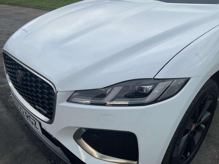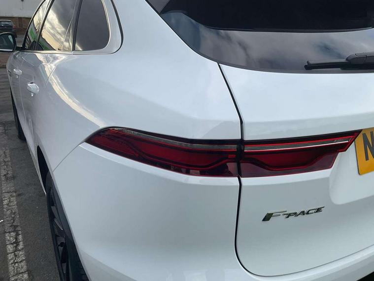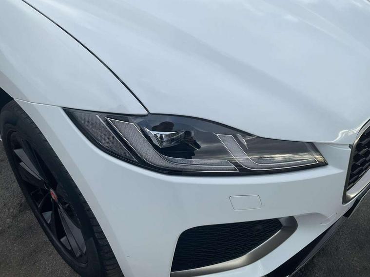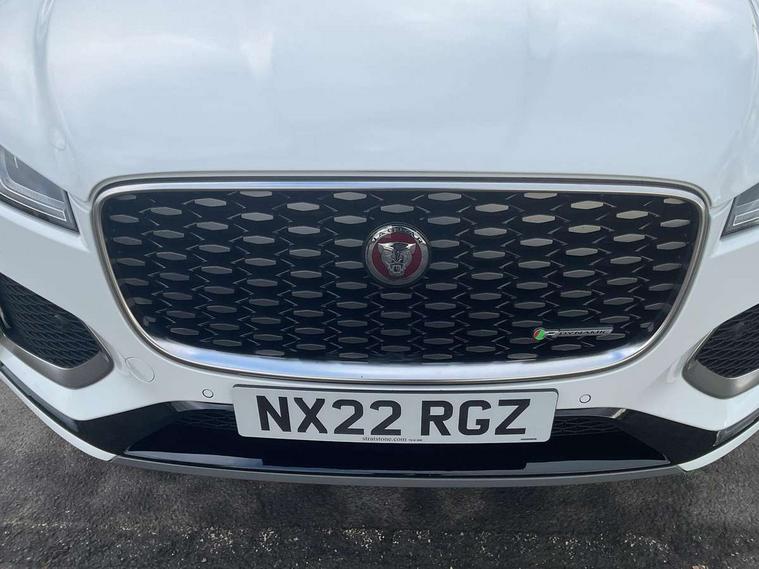 11.4" touchscreen, Android Auto, Apple car play, Blind spot assist, Bluetooth connectivity, Clear exit monitor, Driver alert system, Driver condition monitor, eCall emergency call system, Eco driving style assistant, Electric power assisted steering, InControl remote, Jaguar Toggle shift selector, Lane departure warning system, Lane keep assist, Outside temperature gauge, Personalisation profile management, Pivi pro connected navigation system with app interface and media storage, Pro services and wifi hotspot, Push button starter, Rear traffic monitor, Service interval indicator, Speed proportional steering, Start up sequence with movement in dials and lighting, Traffic sign recognition with adaptive speed limiter, Trip computer, Voice control system, 8 speed automatic transmission, All terrain progress control, All Wheel Drive (AWD), Open differential with torque vectoring by braking, AM/FM radio, Bluetooth streaming, DAB Radio (Digital Audio Broadcasting), Dynamic volume control, InControl apps, InControl protect, iPod integration, 3 flash lane change indicators, Animated directional indicators, Approach Illumination, Auto dimming rear view mirror, Automatic headlights, Body colour door mirrors, Electric heated/power fold memory door mirrors with approach lights and auto dimming driver side, Electric windows with one touch open/close and anti trap, F-Pace and R Dynamic badge, Green tinted glass, Heated front windscreen + heated washer jets, Heated rear window with timer, Jaguar script and leaper, LED High level third brake light, LED tail lights, Non acoustic front windscreen, R Dynamic badge on side door, Rain sensor windscreen wipers, Rear fog lights, Rear metal tread plates, Rear side wing doors, Rear wiper, Trailer stability assist, Variable front intermittent wipers, 12V power point front, 3 rear headrests, 3 seat bench in 2nd row, Air distribution speed, Bright metal foot pedals, Centre armrest console, Centre console with side storage, Deletion loadspace storage rails, Door sill tread plates, Fold flat front seats, Front centre armrest with storage compartment, Front door storage space, Glovebox finisher with jaguar script, Heated steering wheel, Hooks in loadspace, Illuminated glovebox, Interior front door handles with separate locking switches, ISOFIX on outer rear seats, Jaguar sense, Luggage tie downs in loadspace, Mist sensing, Multifunction steering wheel, Overhead lighting console, Overhead stowage for sunglasses, Passive front head restraints, Premium cabin lighting, Premium carpet mats, R-Dynamic branded leather steering wheel, Rear air vents, Rear armrest with twin cupholders, Rear centre headrest, Rear door storage space, Reversible boot floor, Satin chrome gearshift paddles, Shopping bag hook, Single front passenger seat, Sunvisors with illuminated vanity mirrors, Twin front cupholders with cover, Online Pack with data plan - F-Pace, 355mm front brakes and 325mm rear brakes, 3x3 point rear seatbelts, ABS, All surface progress control (ASPC), Brake pad warning light, DSC - Dynamic Stability Control, Electric parking brake (EPB), Emergency brake assist, Front airbags with passenger seat occupant detector, Front and rear seatbelt reminder, Front side airbags, Full length side window curtain airbag, Hill launch assist, Power operated child locks, Torque vectoring brake, Traction control, Tyre pressure monitoring system, Immobiliser, Keyless entry, Keyless start, Locking wheel nuts, Perimeter alarm, Remote central locking, Valet mode,
