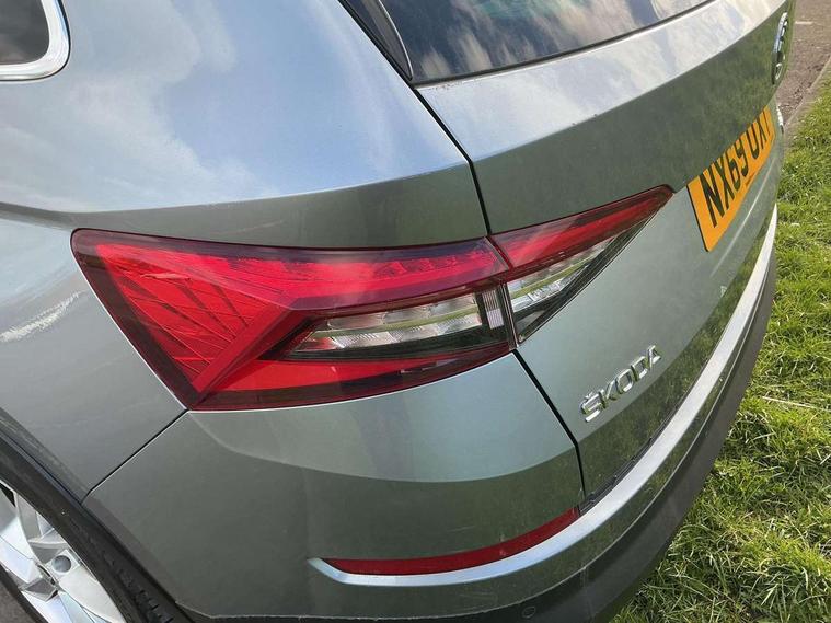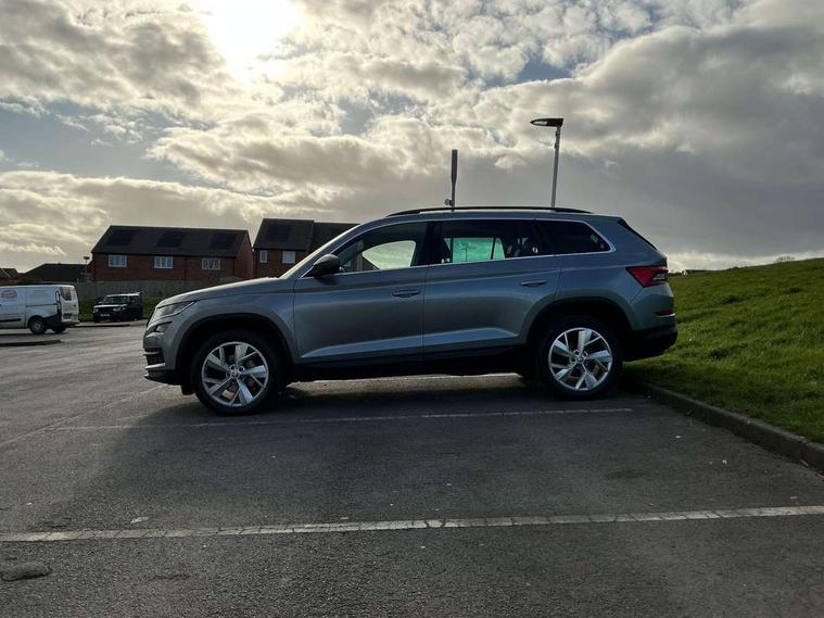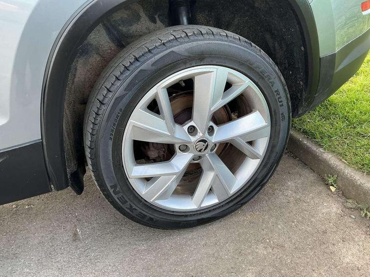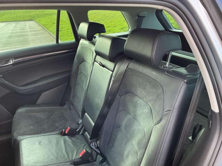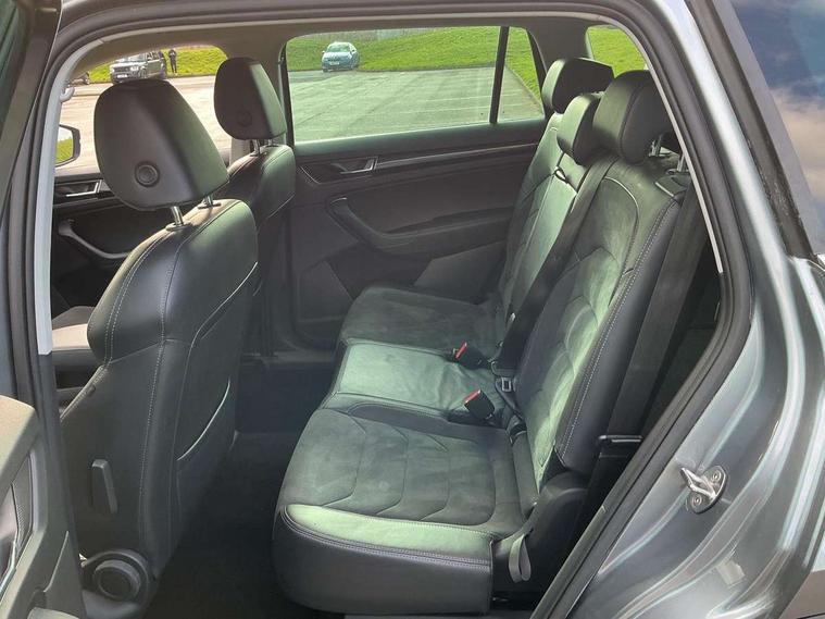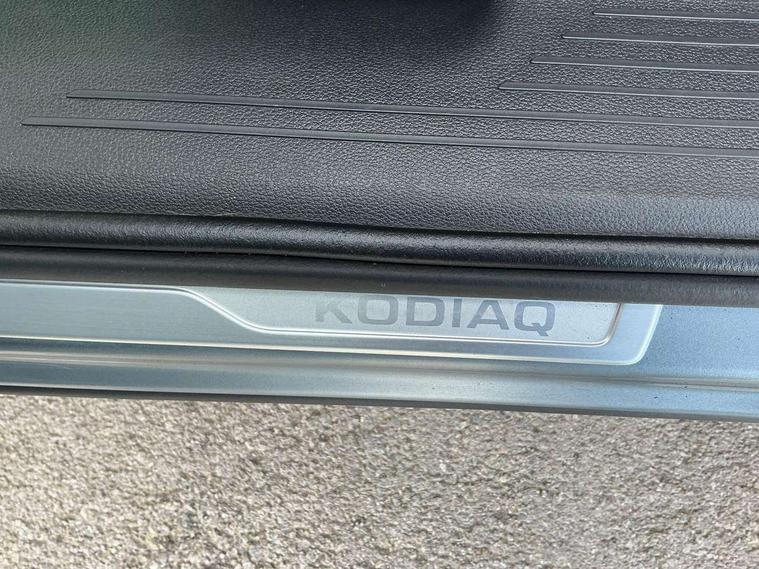 Bluetooth system, Colour multifunction trip computer, Columbus satellite navigation with 9.2" touch screen and integrated Wi-Fi + WLAN, Digital voice enhancement, ECO Stop/start function, Exterior temperature indicator, SmartLink plus, Speed limiter, Bolero Radio, DAB Digital radio, DVD System, USB and SD card connectivity, Aero front windscreen wipers with intermittent function, Aero rear window wiper, Auto dimming rear view mirror, Automatic activation of hazard warning lights, Black wheel arch surrounds, Body colour bumpers, Body colour door mirrors and handles, Electric front and rear windows, Electrically adjustable heated foldable and auto dimming door mirrors with boarding spots, Front and Rear door steps, Full LED Headlights with adaptive front light system and LED daytime running lights, Headlight washers, Heated rear window, Invisible tailpipe, LED front fog lights with static cornering light function, LED rear fog light, LED third brake light in rear spoiler, Light assistant (coming home/tunnel light), Radiator grille frame in matt black with chrome strip, Rain and light sensors, Rear spoiler, Safety reflectors on front and rear doors, Sunset privacy glass, Tinted windows, 12V socket in boot, 2 rails with 2 hooks including 4 hooks for net programme, 4 foldable roof handles with rear coat hooks, 4 lashing points on luggage floor, 60:40 foldable rear seat with sliding adjustment and backrest angle adjustment, Bottle holders in door panel in the 1.5 litre front and 1 litre rear, Cargo storage compartments, Centre console with open storage box, cup holder and 12V socket, Chrome headlight control button, Chrome interior door handles, Coat hooks on B pillar, Covered storage compartment on driver side, Drawers under driver and front passenger seats, Front centre armrest with storage compartment, Front/rear courtesy lights, Gear shift lever with chrome frame and black gloss insert, Height adjustable front headrests, Illuminated and cooled glovebox, Illuminated luggage compartment, Isofix system on outer rear seats, Manually adjustable steering column, Net programme in boot (1x horizontal Net, 2x vertical Nets), Overhead glasses storage compartment, Passenger side net compartment on centre console, Pollen filter, Rear centre armrest with cupholders, Removable lamp in luggage compartment, Roll up luggage compartment cover with intermediate position, Small Bags on the inner sides of the front backrests, Small pockets on the inner side of the front backrests, Storage compartment in lower middle Instrument panel, illuminated with closing, Three rear height adjustable headrests, Ticket holder on A Pillar, Umbrella in door panel, Chrome pack - Kodiaq, Auto door release and activation of warning lights, Driver and passenger airbags, Electronic parking brake with hill hold control, Emergency rear braking signal, ESC (incl. ABS+MSR+ASR+EDS+HBA+DSR+RBS+MKB), Front and rear three point safety belt on all seats, Front assist includes AEB city/urban, Front side airbags, Fuel cut off safety device, Head and knee airbags, Passenger airbag deactivate switch, Rear disc brakes, Safety vest holder in door, Seat belt reminder for all seats, Tailgate unlocking from outside, Two tone horn, Tyre pressure monitor, Warning lights in front doors, Alarm with interior monitoring and tilt sensor with safe function, Immobiliser, Keyless entry and start system (KESSY), Remote central locking,